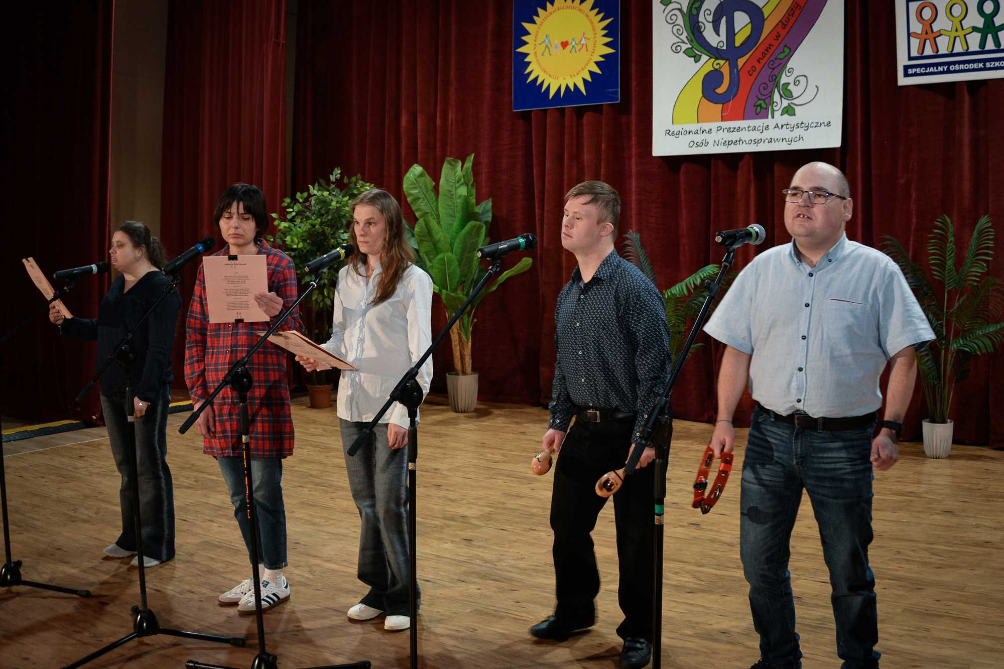 Na scenie sali widowiskowej Klubu 3 Batalionu Zmechanizowanego w Zamościu zaprezentowali się wyjątkowi artyści reprezentujący 10 placówek. Wystąpili m.in.: zespół „Archanioły” z Warsztatów Terapii Zajęciowej w Zamościu, solistka z Powiatowego Zespołu Placówek Szkolno-Wychowawczych w Hrubieszowie, zespół teatralny „Azumi” ze Specjalnego Ośrodka Szkolno-Wychowawczego w Dorohusku, zespół „Urwisy” ze Specjalnego Ośrodka Szkolno-Wychowawczego w Zamościu, zespół taneczny Jakub i Michał” z Zespołu Niepublicznych Szkół Specjalnych „Krok za krokiem”w Zamościu a także zespoły wokalne z Warsztatów Terapii Zajęciowej w Rozłopach, Lipinie Starej, Dominikanówce i w Zamościu.