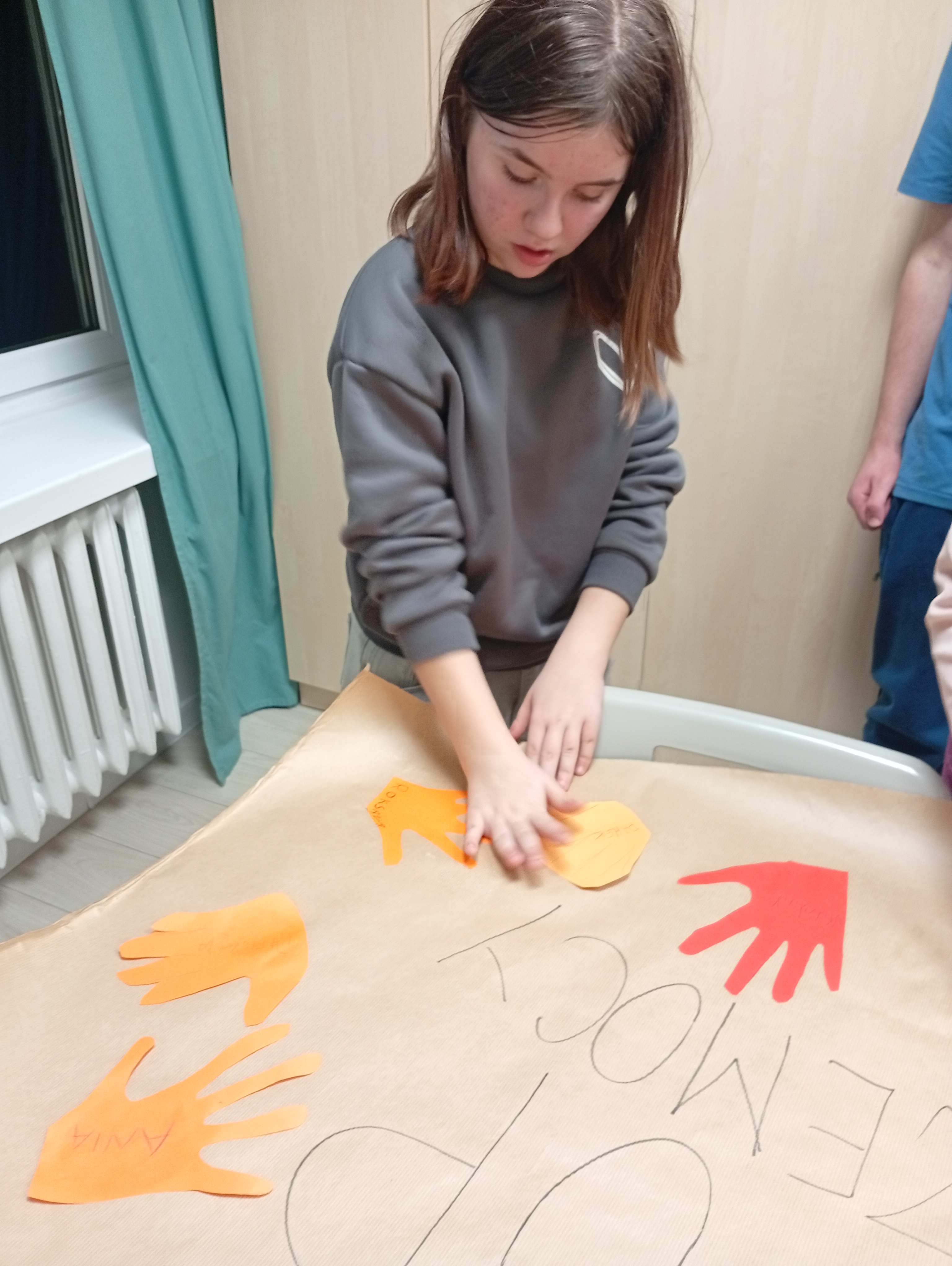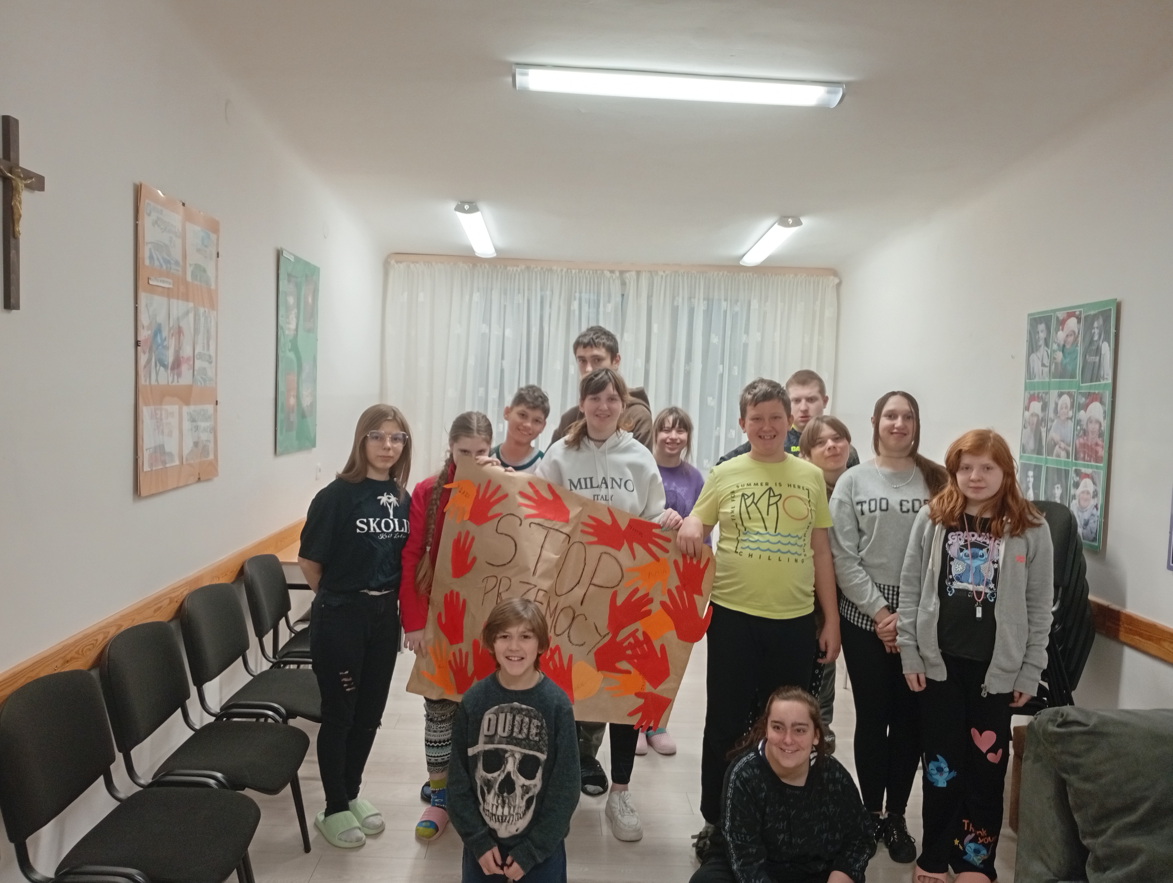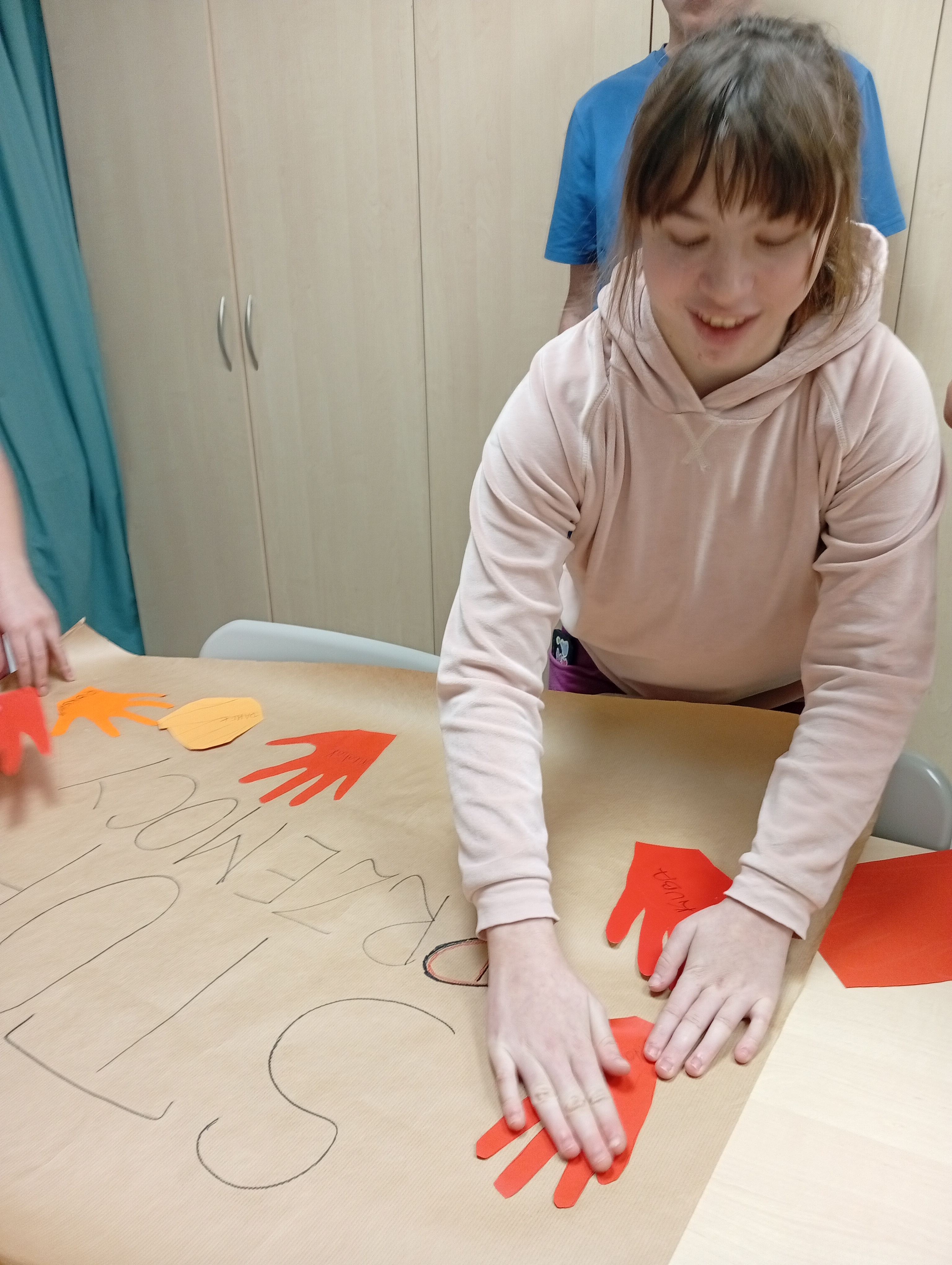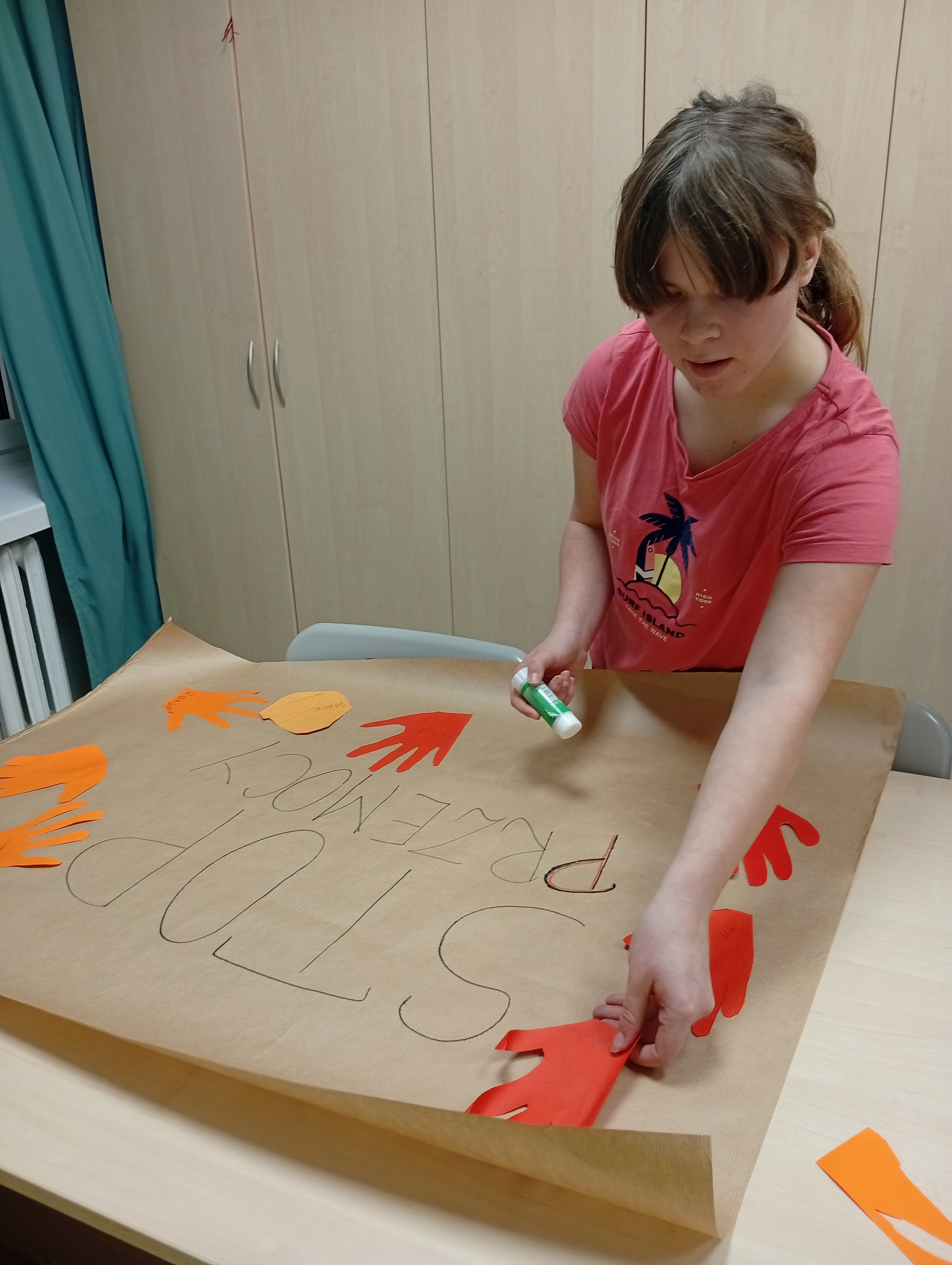 W ramach ogólnopolskiej kampanii Dzieciństwo bez Przemocy wychowankowie Internatu aktywnie włączyli się w działania promujące bezpieczeństwo i troskę. Podczas zajęć przygotowali symboliczny plakat, na którym wykorzystali własne odrysowane i wycięte dłonie. Każda podpisana dłoń miała stanowić wyraz sprzeciwu wobec przemocy.