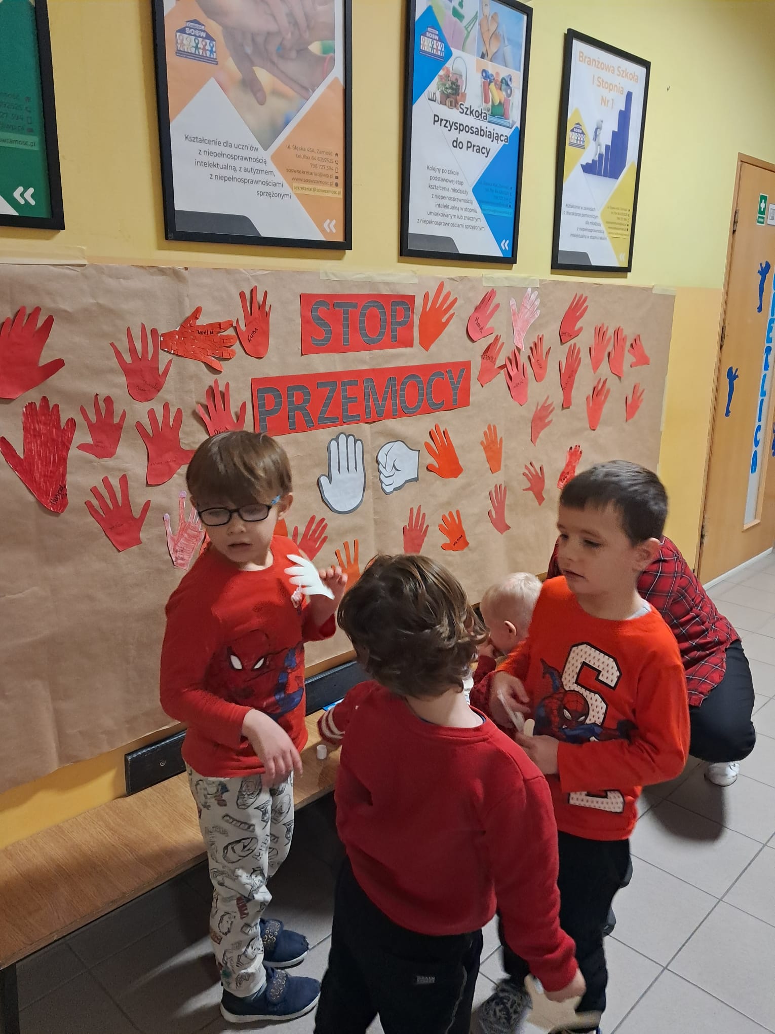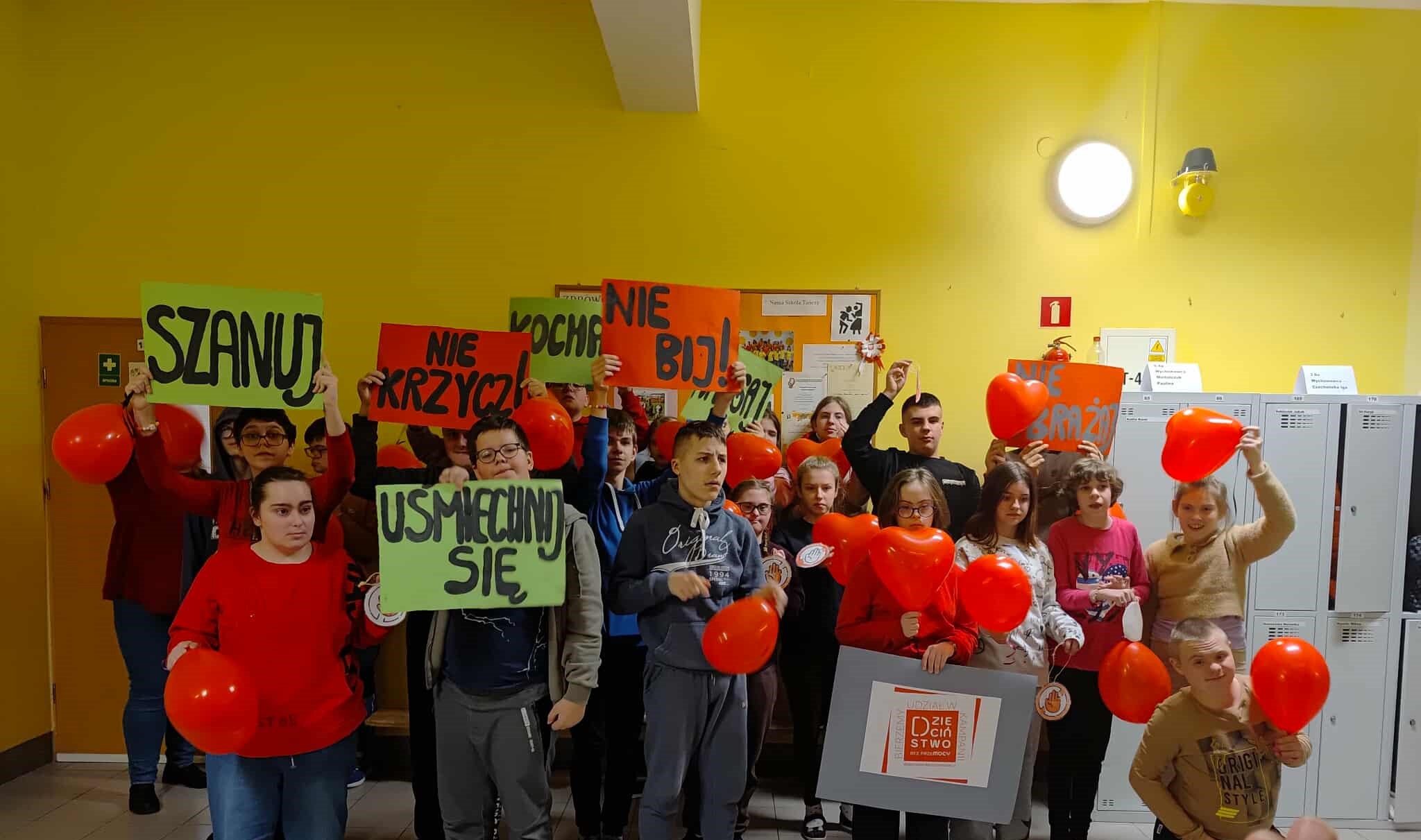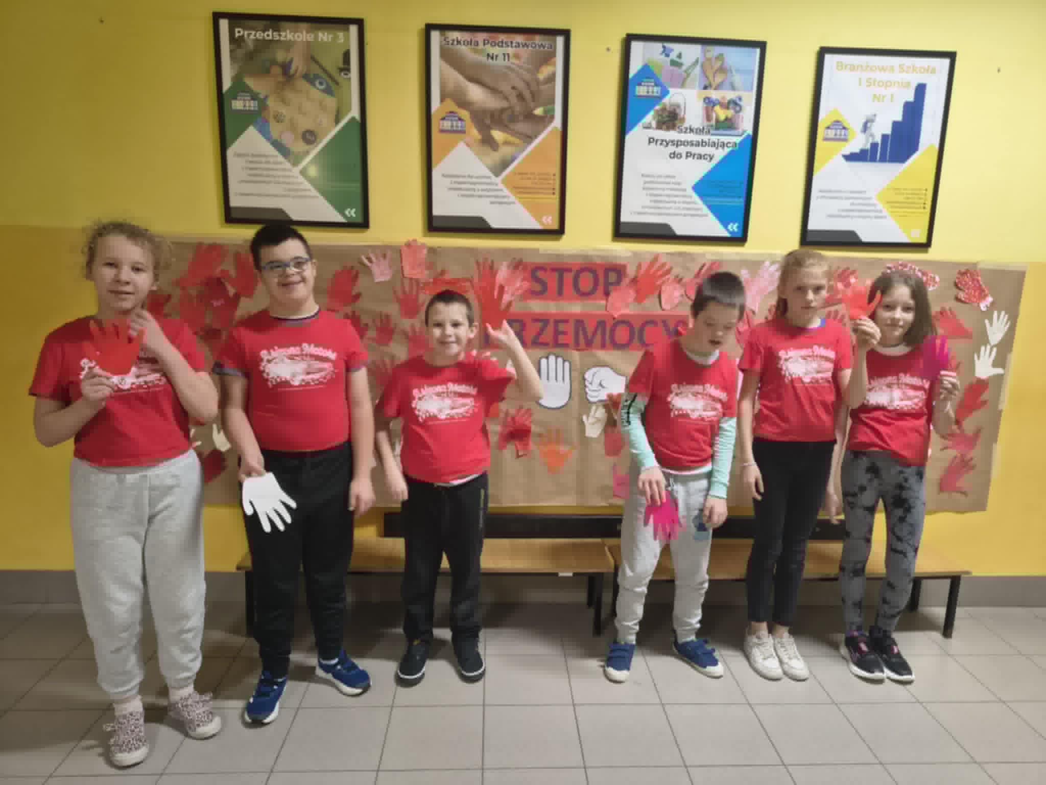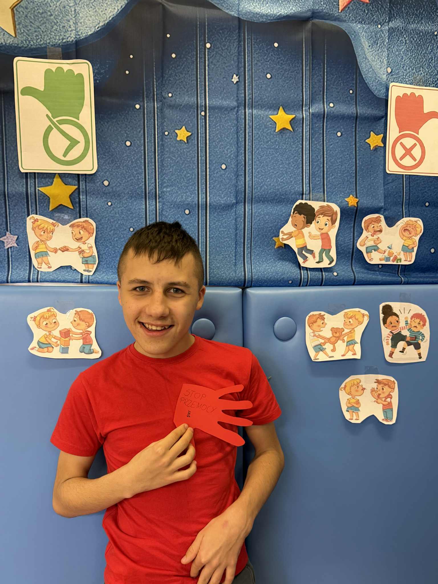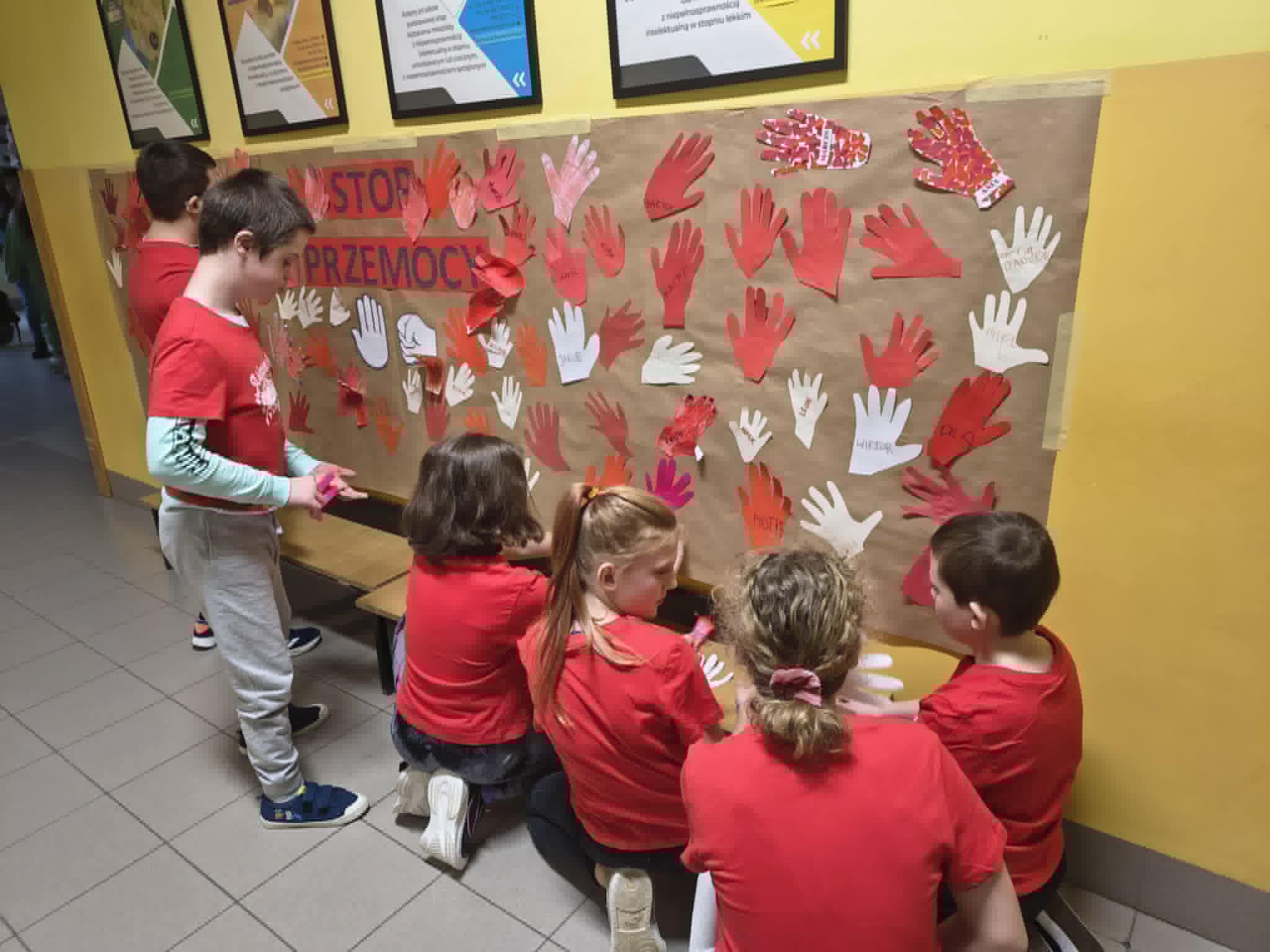 Nasza szkoła po raz kolejny aktywnie włączyła się w ogólnopolską kampanię „Dzieciństwo bez przemocy”, której celem jest podnoszenie świadomości na temat ochrony dzieci oraz promowanie wychowania opartego na szacunku i bezpieczeństwie. W ramach kampanii odbyły się działania skierowane do całej społeczności szkolnej: lekcje, pogadanki i warsztaty dla uczniów dotyczące radzenia sobie z emocjami, rozwiązywania konfliktów, budowania relacji bez agresji oraz umiejętnego proszenia o pomoc. Uczniowie wraz z nauczycielami ubrani byli na czerwono i wykonali wspólny plakat jako znak protestu przeciwko przemocy wobec dzieci. Podświetlenie budynku Internatu na czerwono podczas finału kampanii było wyrazem solidarności z najmłodszymi oraz przypomnieniem o konieczności reagowania na wszelkie formy krzywdzenia.