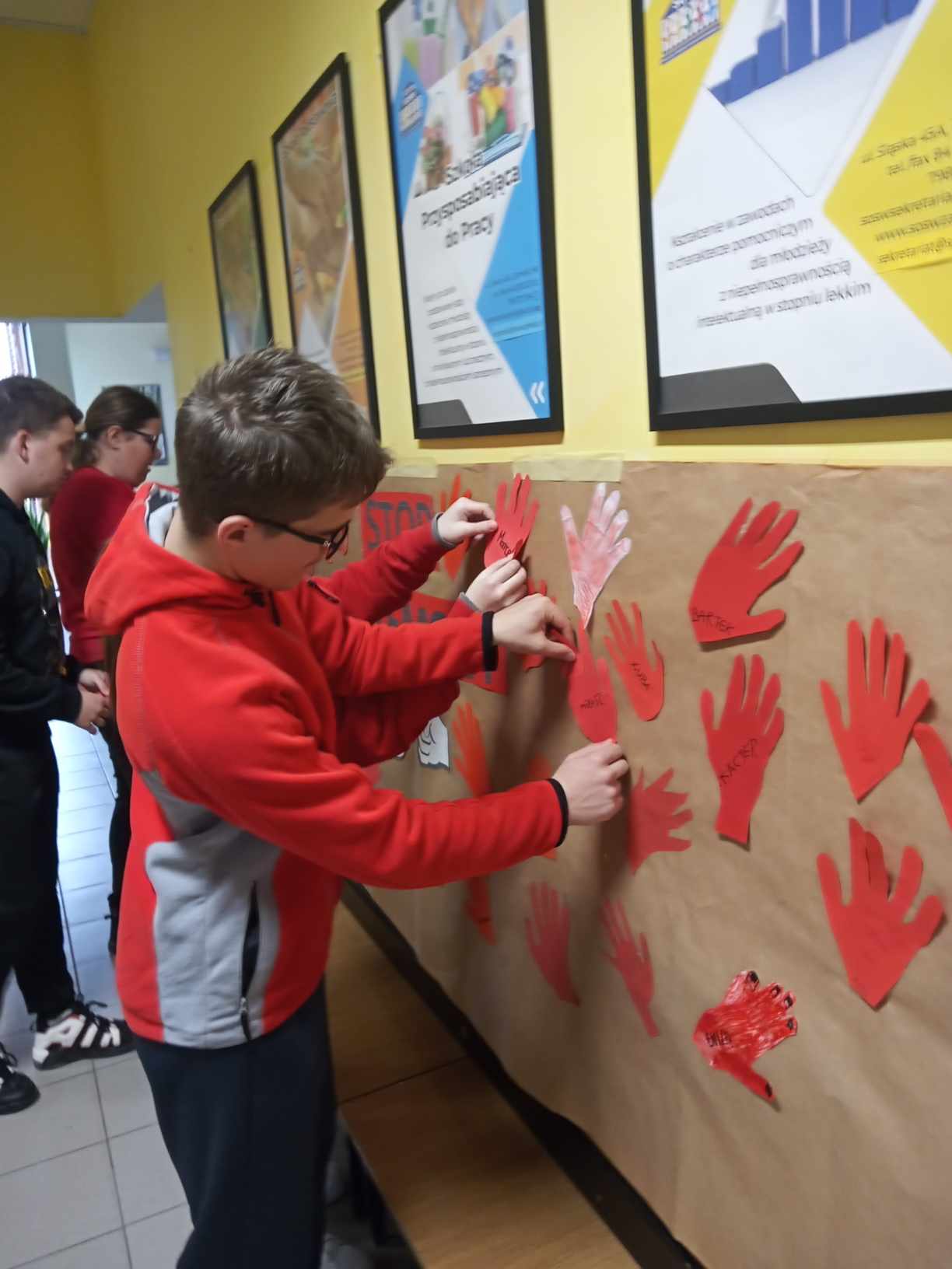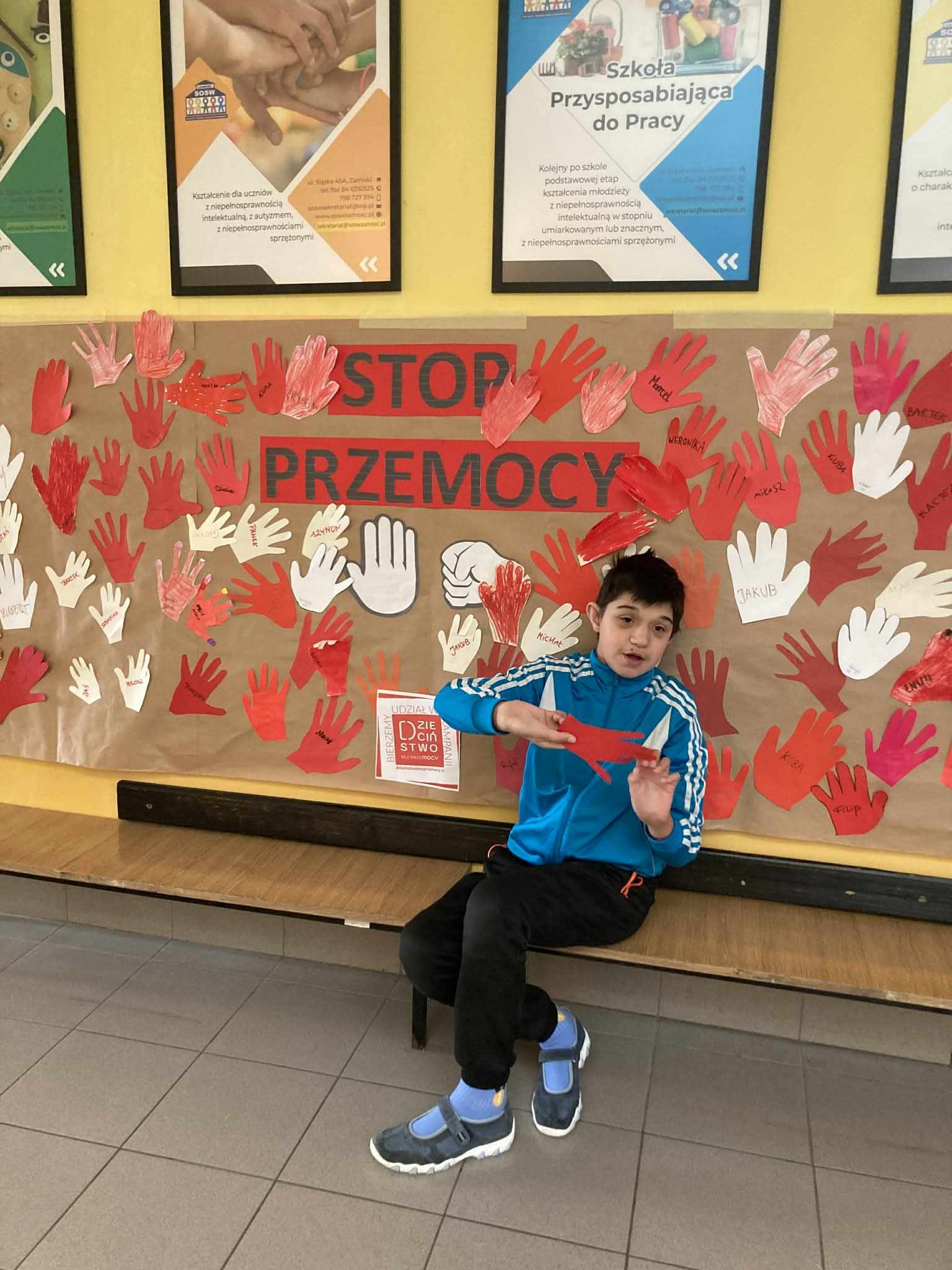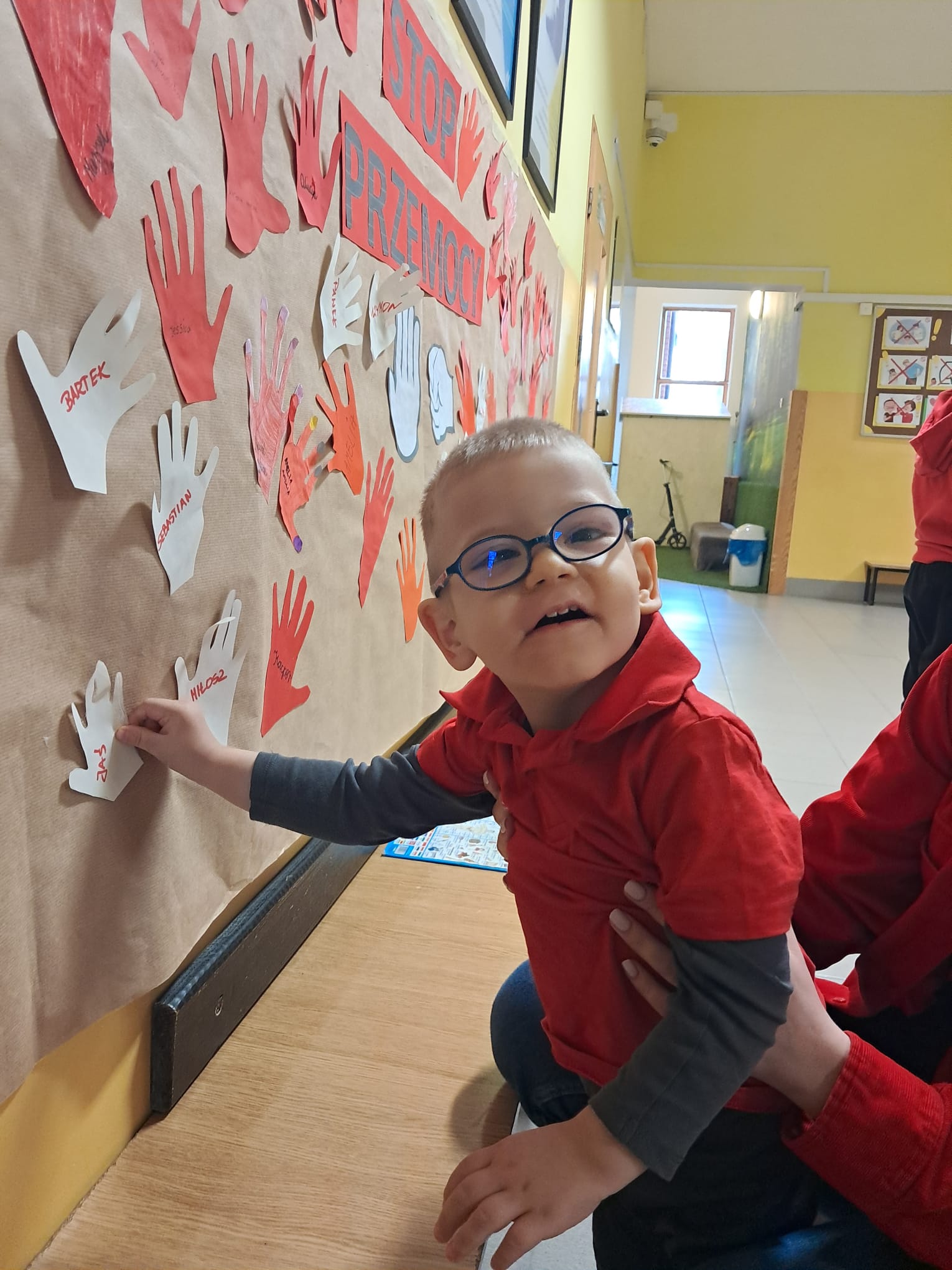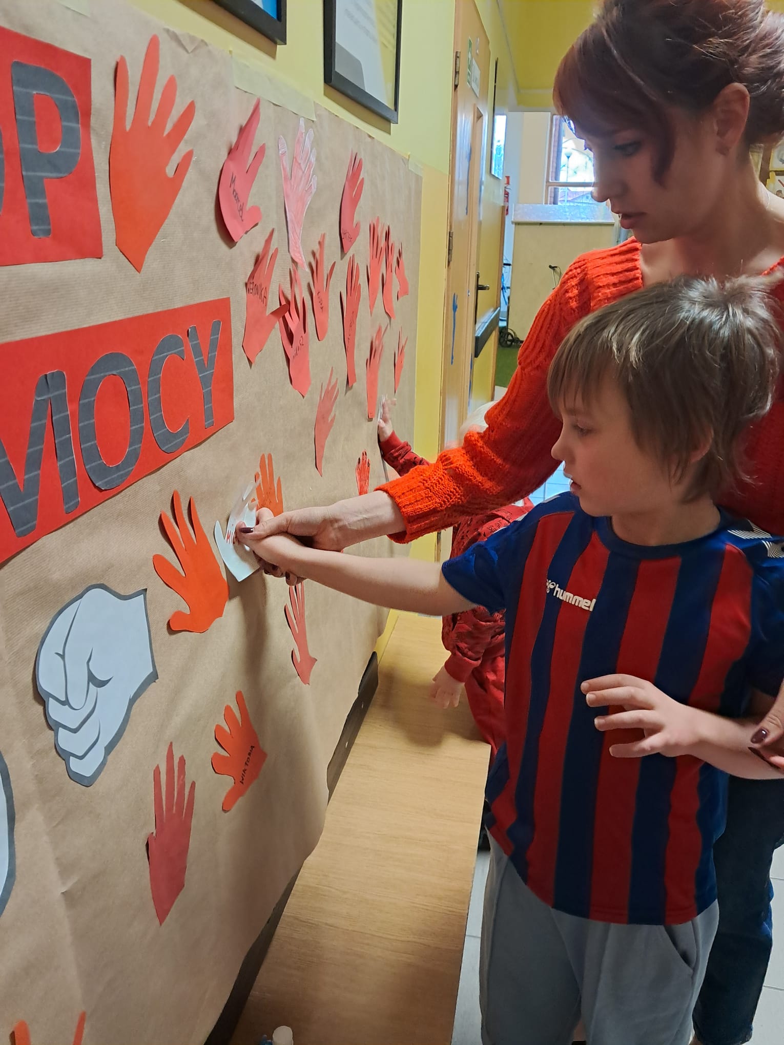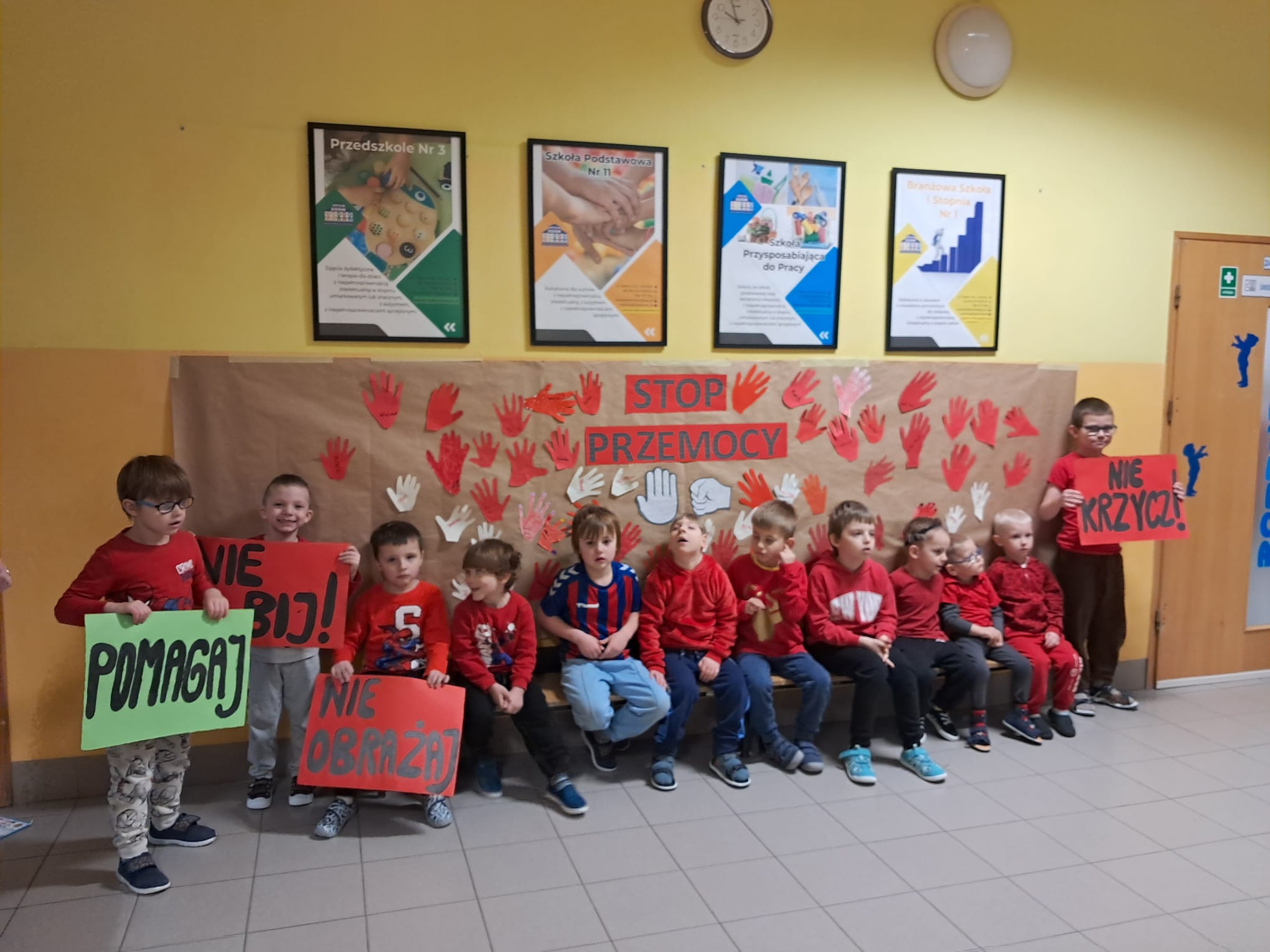 Nasza szkoła po raz kolejny aktywnie włączyła się w ogólnopolską kampanię „Dzieciństwo bez przemocy”, której celem jest podnoszenie świadomości na temat ochrony dzieci oraz promowanie wychowania opartego na szacunku i bezpieczeństwie. W ramach kampanii odbyły się działania skierowane do całej społeczności szkolnej: lekcje, pogadanki i warsztaty dla uczniów dotyczące radzenia sobie z emocjami, rozwiązywania konfliktów, budowania relacji bez agresji oraz umiejętnego proszenia o pomoc. Uczniowie wraz z nauczycielami ubrani byli na czerwono i wykonali wspólny plakat jako znak protestu przeciwko przemocy wobec dzieci. Podświetlenie budynku Internatu na czerwono podczas finału kampanii było wyrazem solidarności z najmłodszymi oraz przypomnieniem o konieczności reagowania na wszelkie formy krzywdzenia.
