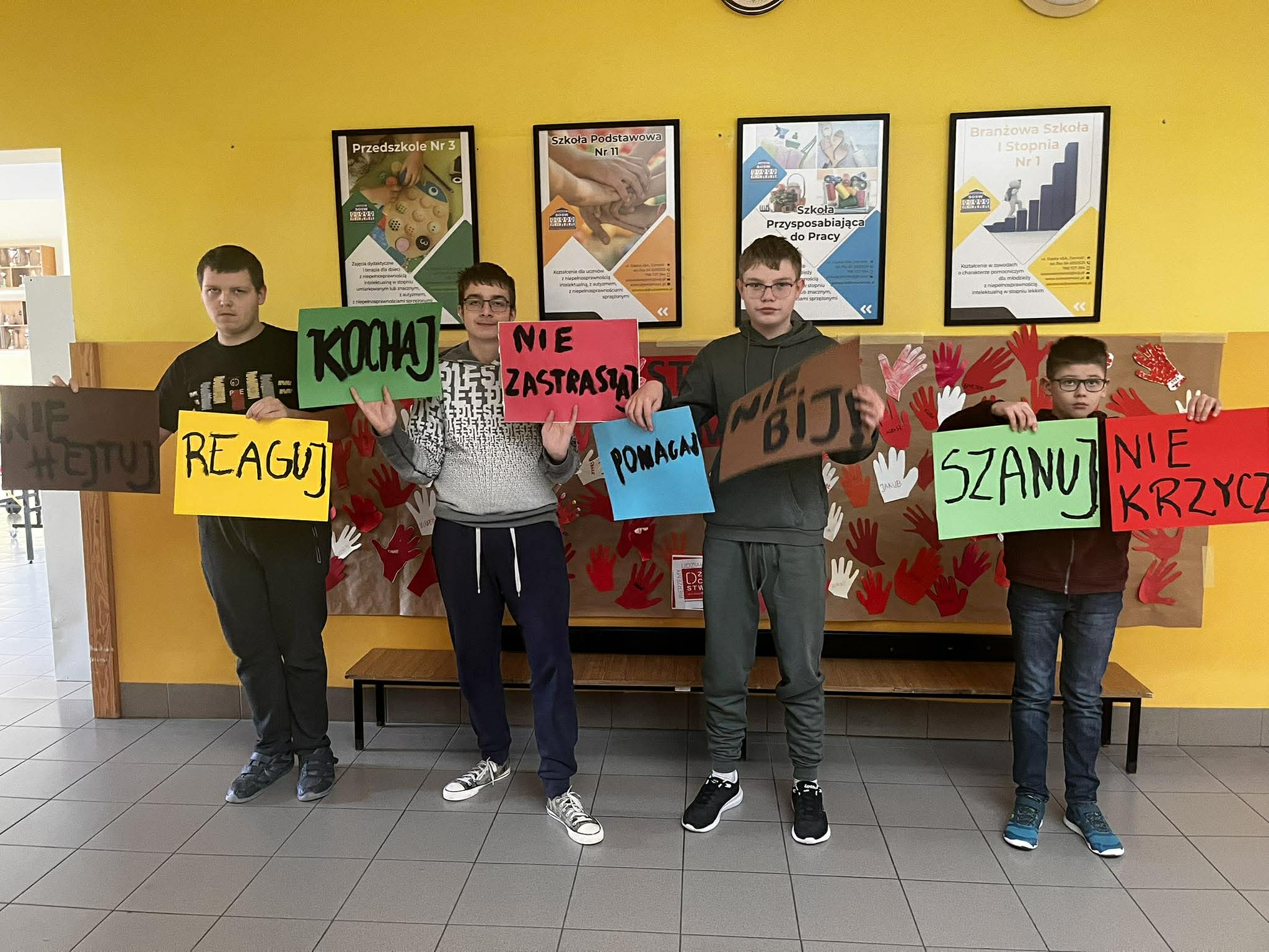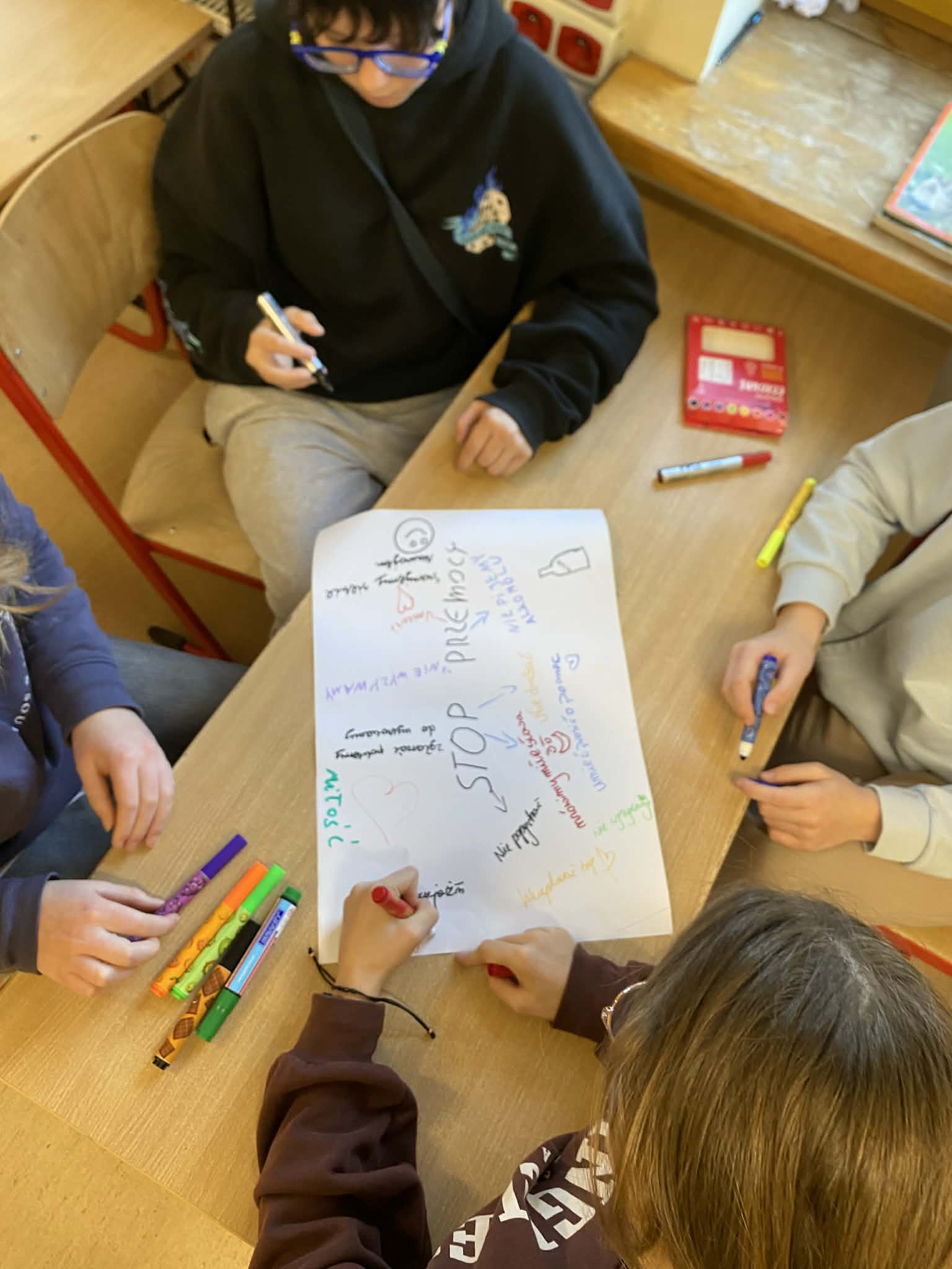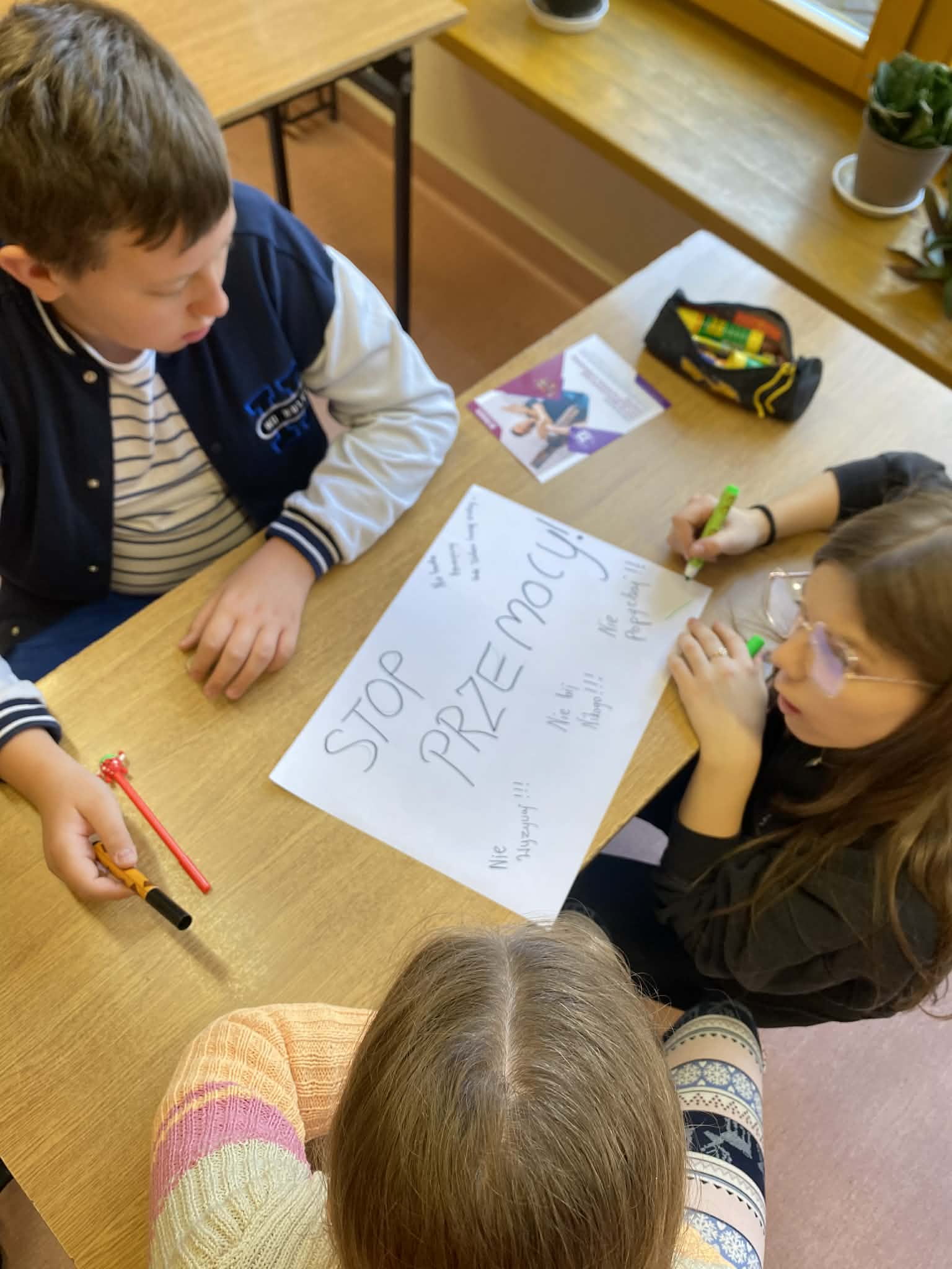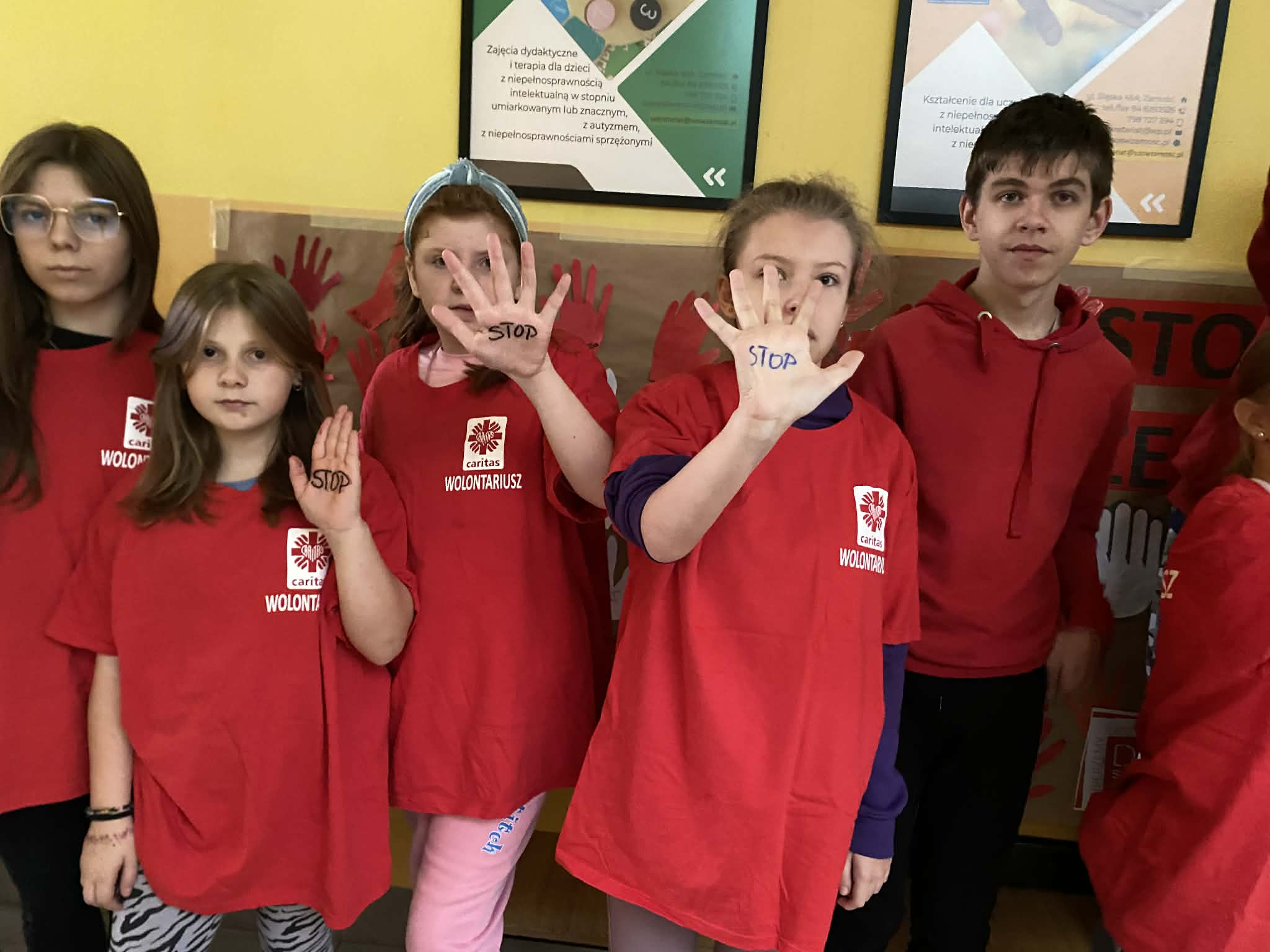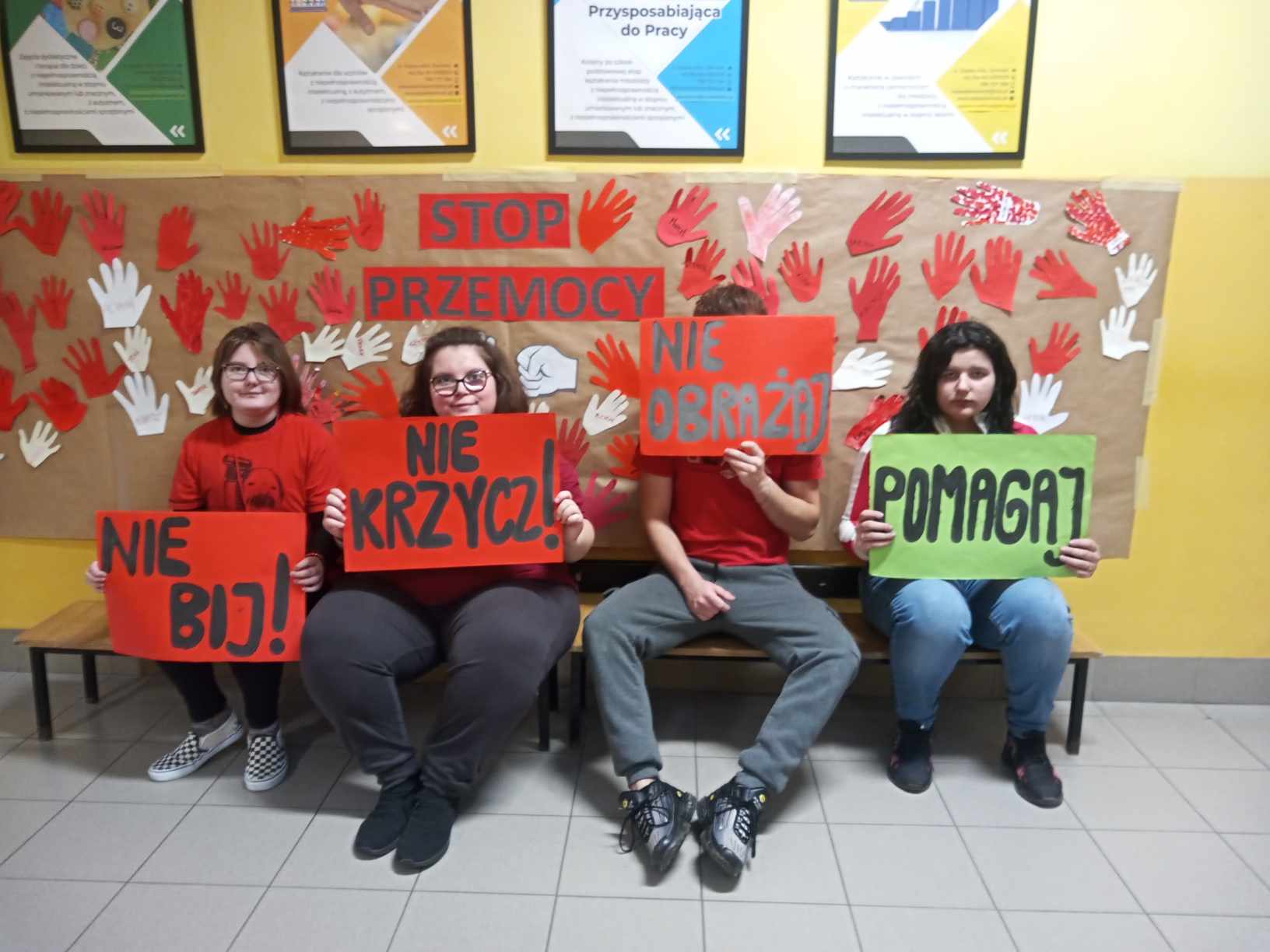 Nasza szkoła po raz kolejny aktywnie włączyła się w ogólnopolską kampanię „Dzieciństwo bez przemocy”, której celem jest podnoszenie świadomości na temat ochrony dzieci oraz promowanie wychowania opartego na szacunku i bezpieczeństwie. W ramach kampanii odbyły się działania skierowane do całej społeczności szkolnej: lekcje, pogadanki i warsztaty dla uczniów dotyczące radzenia sobie z emocjami, rozwiązywania konfliktów, budowania relacji bez agresji oraz umiejętnego proszenia o pomoc. Uczniowie wraz z nauczycielami ubrani byli na czerwono i wykonali wspólny plakat jako znak protestu przeciwko przemocy wobec dzieci. Podświetlenie budynku Internatu na czerwono podczas finału kampanii było wyrazem solidarności z najmłodszymi oraz przypomnieniem o konieczności reagowania na wszelkie formy krzywdzenia.