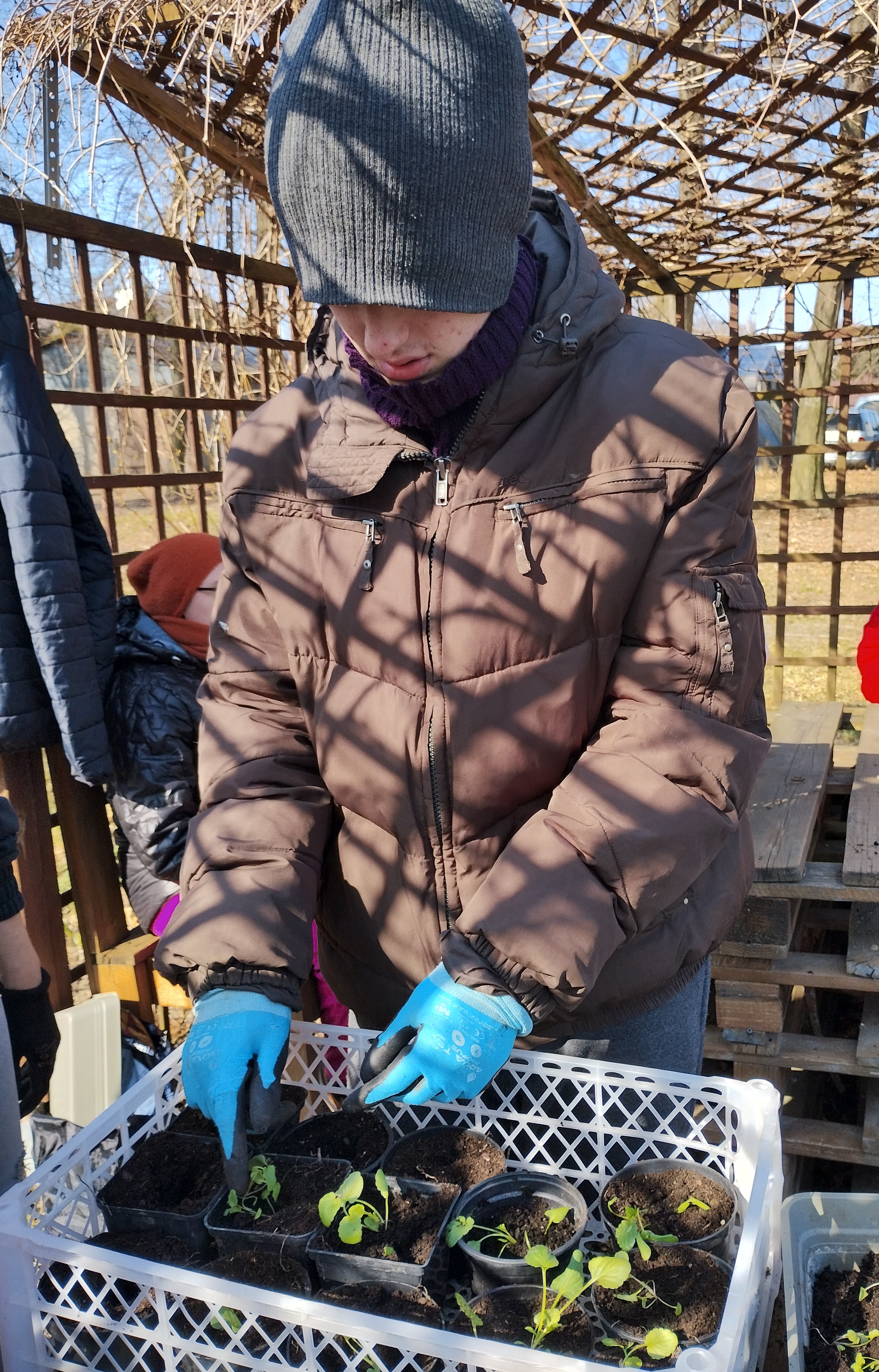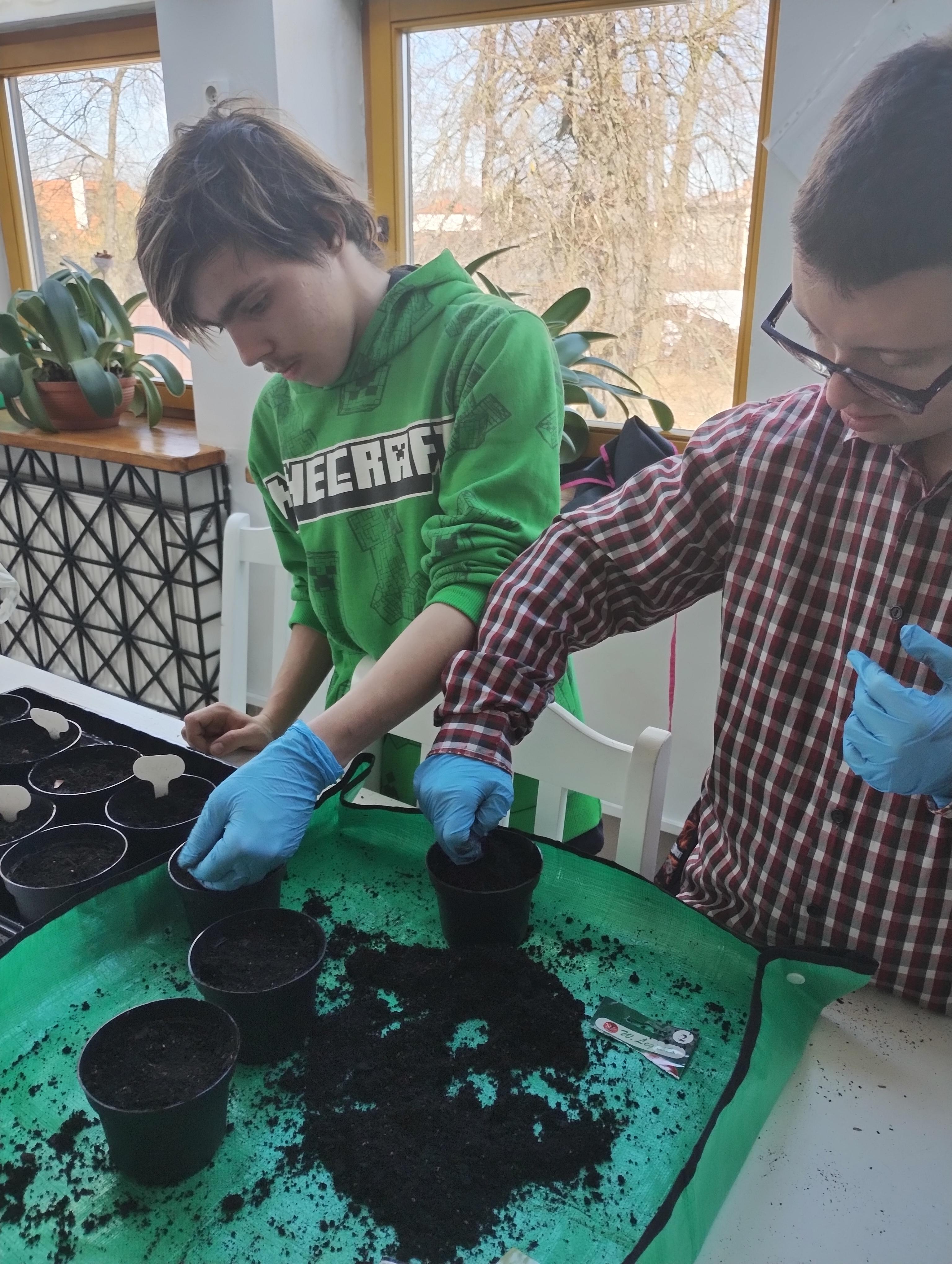 W szkole SPdP rozpoczęliśmy realizację nowego projektu ,,Florastolarnia’’. W pierwszej fazie projektu głównym zadaniem uczniów było rozsadzanie młodych sadzonek bratków do doniczek. Praca wymagała dużej precyzji delikatności i skupienia. Obecnie uczniowie z dużym zaangażowaniem dbają o ich codzienną pielęgnację. Kolejnym krokiem naszego projektu będzie przygotowanie donic z drewnianych skrzynek.