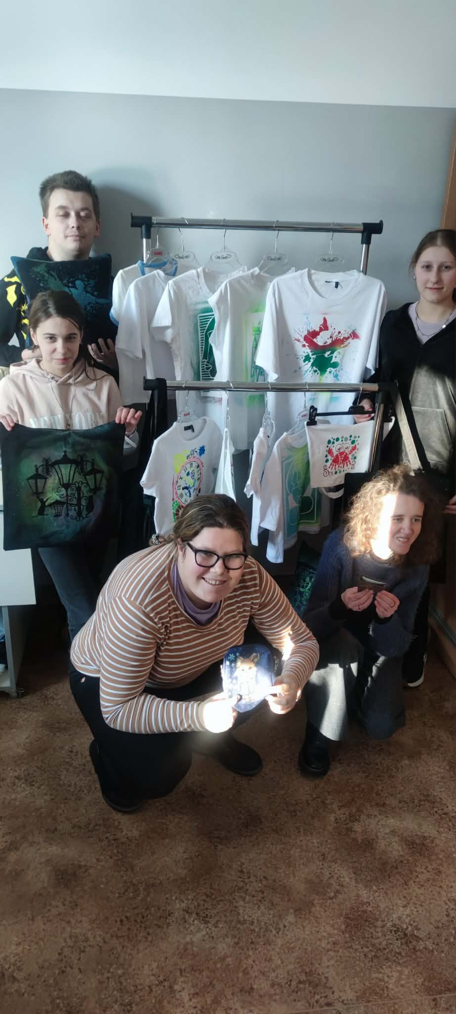 Uczestnicy poznają techniki pracy z materiałem, barwnikami i pigmentami, ucząc się planowania projektu, wyrażania emocji oraz pracy twórczej. Działania te wspierają samodzielność, kreatywność, poczucie sprawczości oraz mogą stanowić wstęp do rozwoju ścieżki zawodowej w obszarze rękodzieła i sztuk użytkowych.