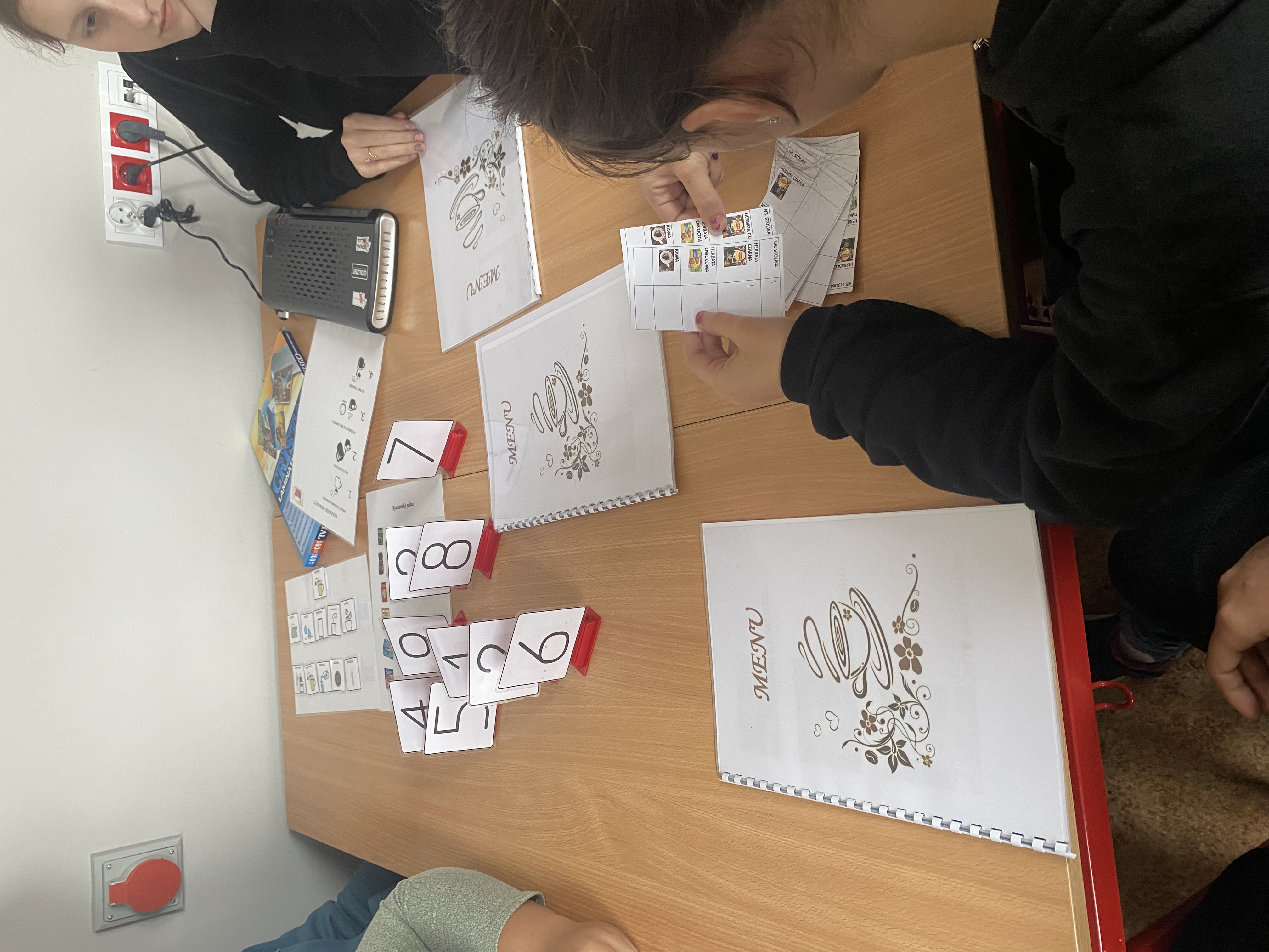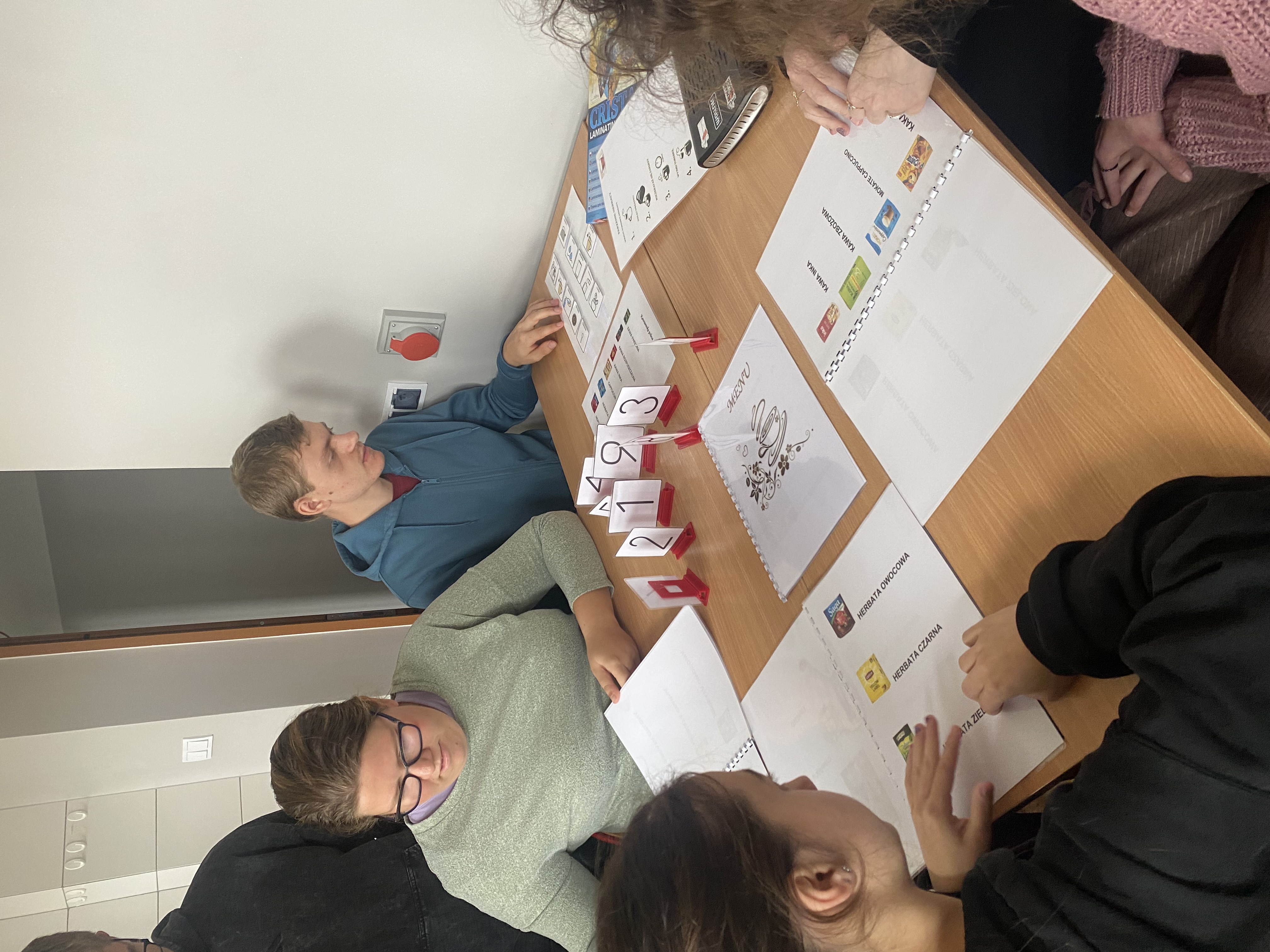 Uczniowie poznali ważne zagadnienia związane z prowadzeniem kawiarenki, oraz ćwiczyli potrzebne umiejętności niezbędne na stanowisku pracy kelnera.