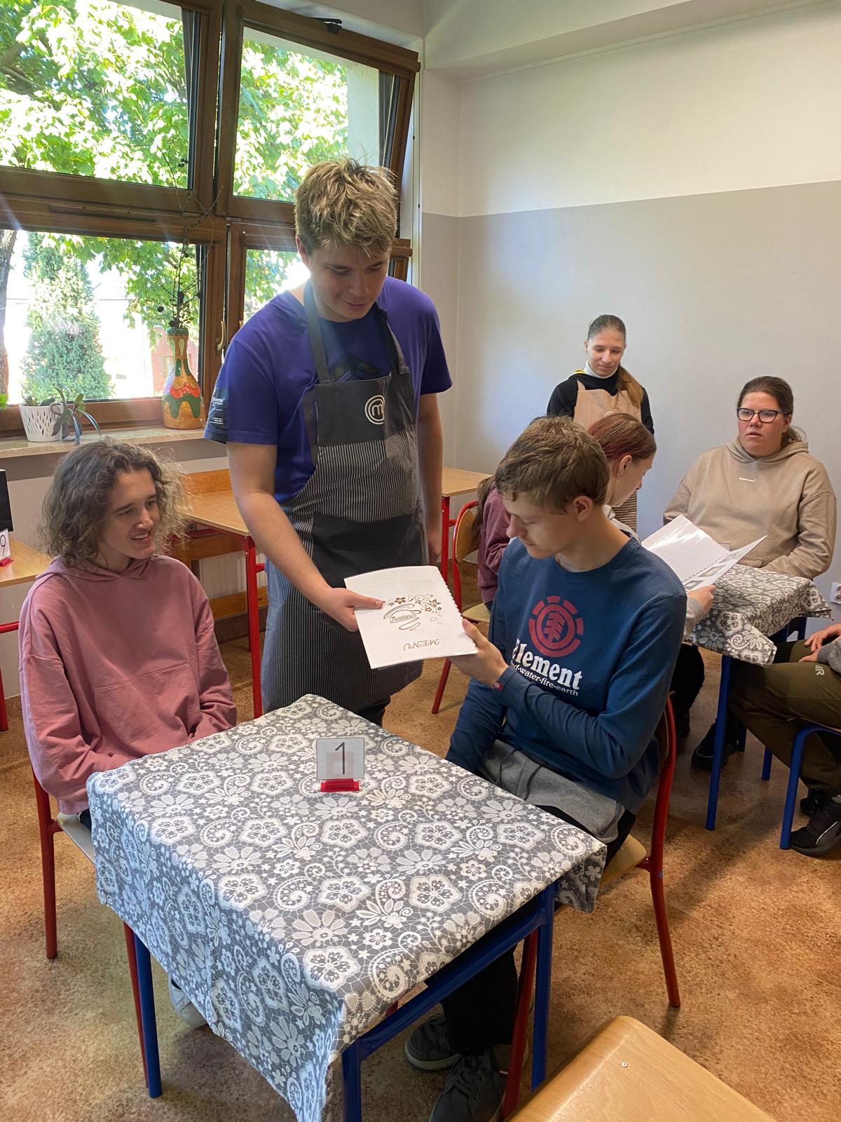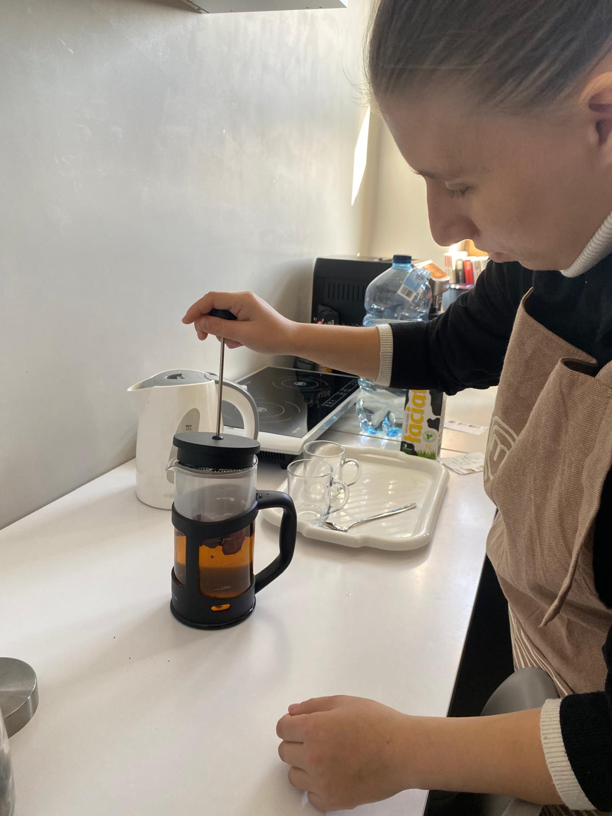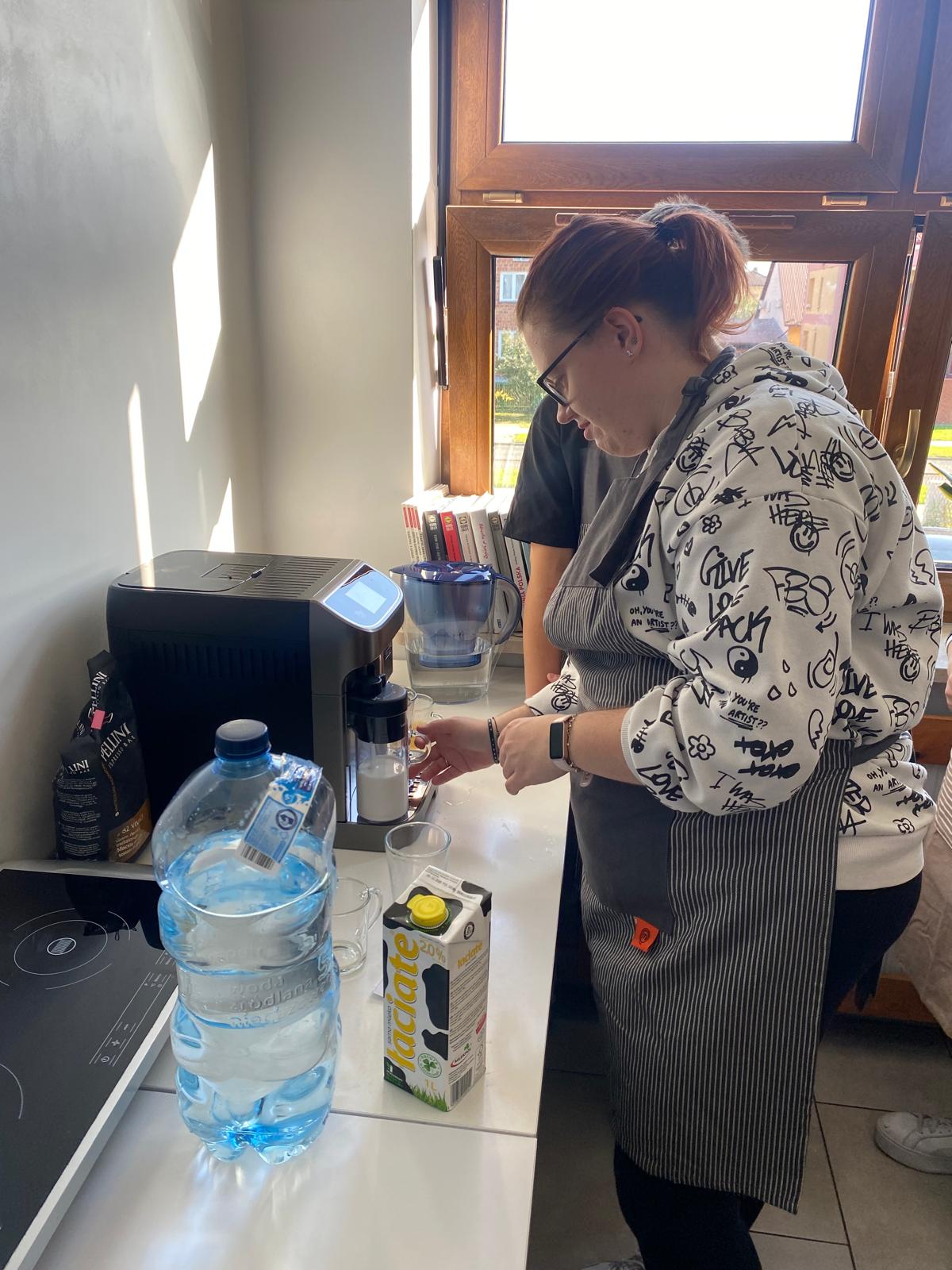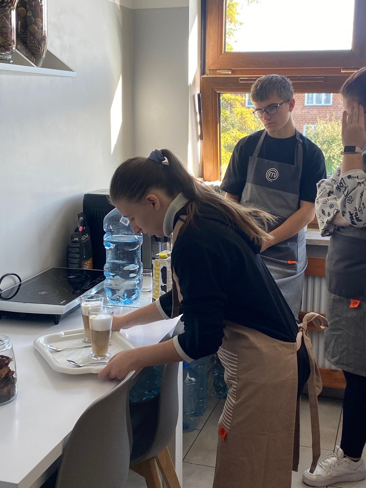 Na potrzeby projektu uczniowskiego „Kawiarenka dobry klimat - uczymy się przez działanie” został zakupiony między innymi ekspres do kawy oraz sprzęt AGD, z którego korzystają uczniowie klas 3As i 3Cs-1Cs doskonaląc swoje umiejętności zawodowe i kompetencje społeczne. Uczniowie świetnie sprawdzają się w roli kelnerów, parzą aromatyczną kawę, wypiekają przepyszne ciastka wzbogacając swój warsztat pracy.