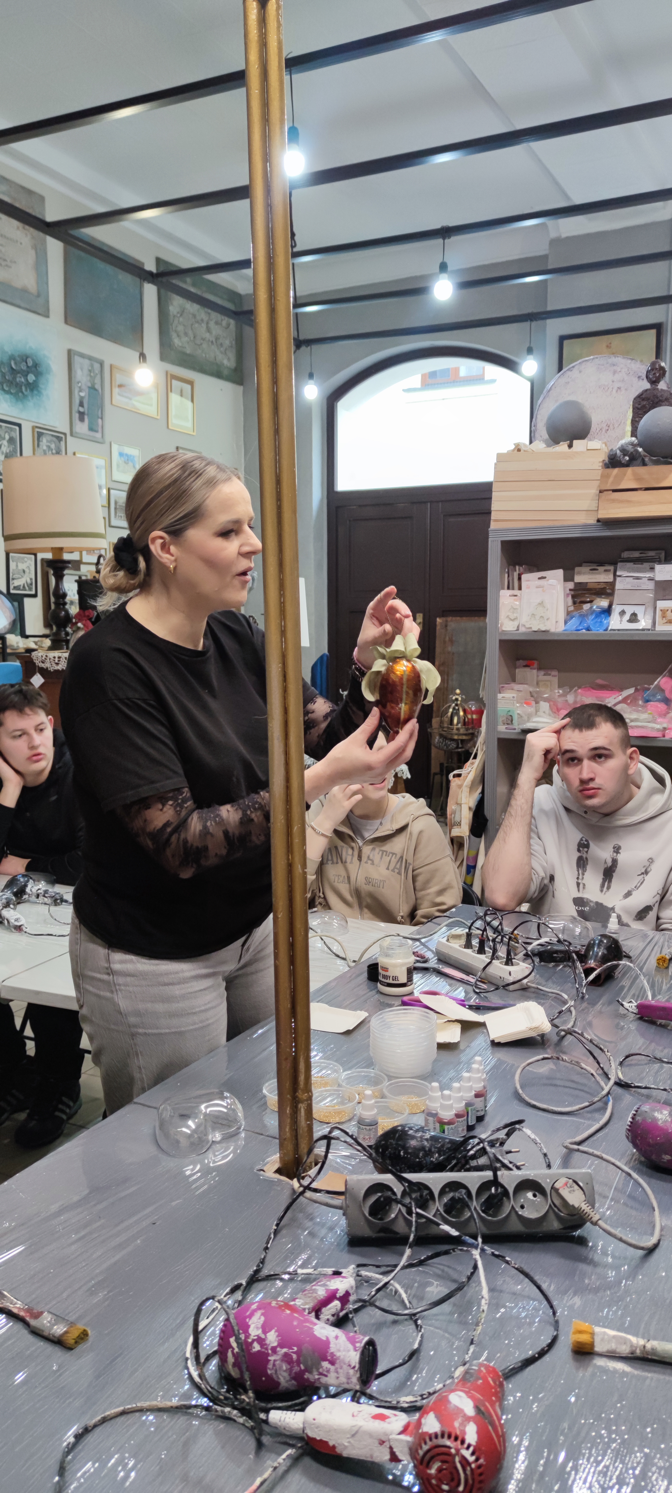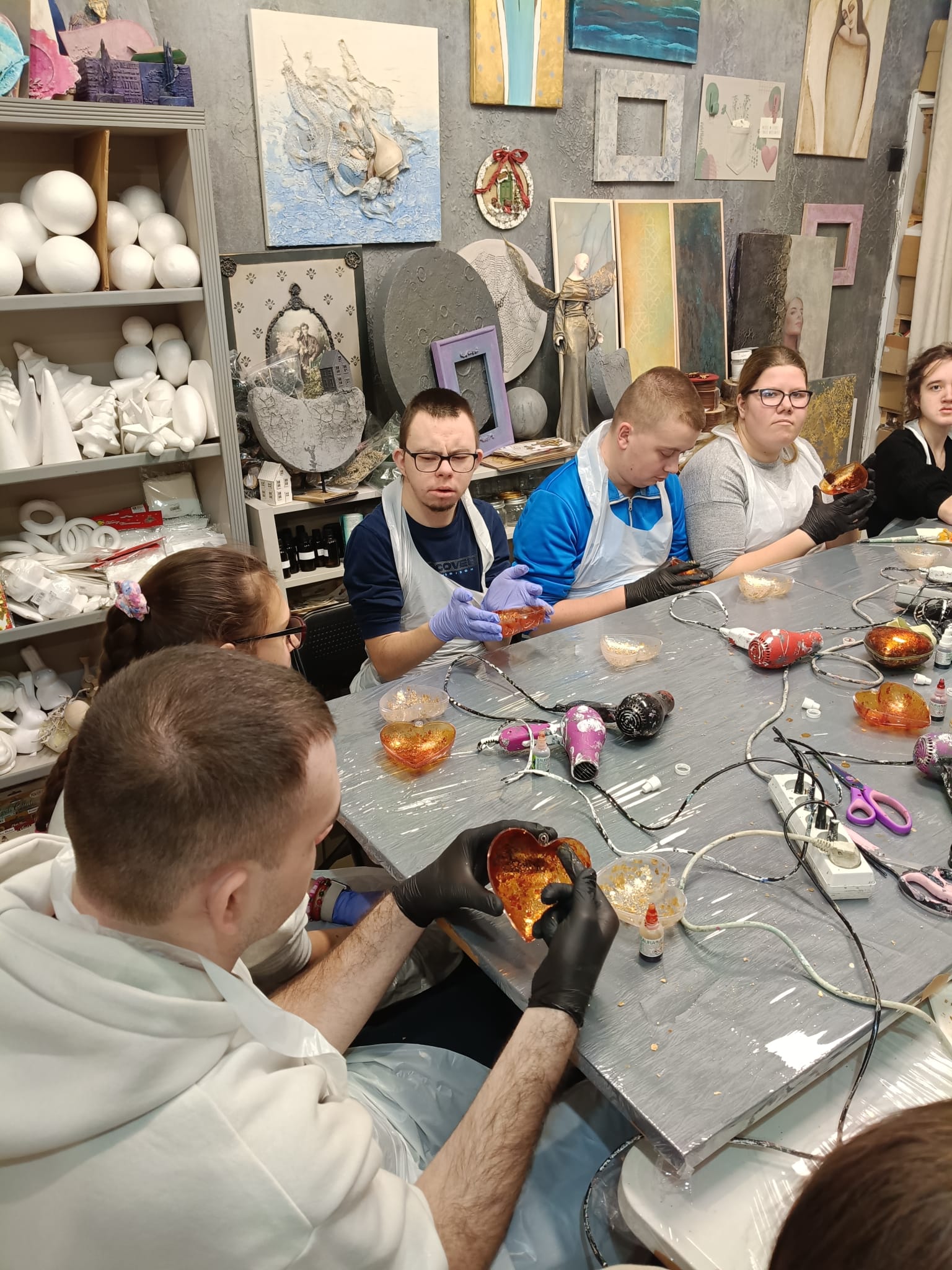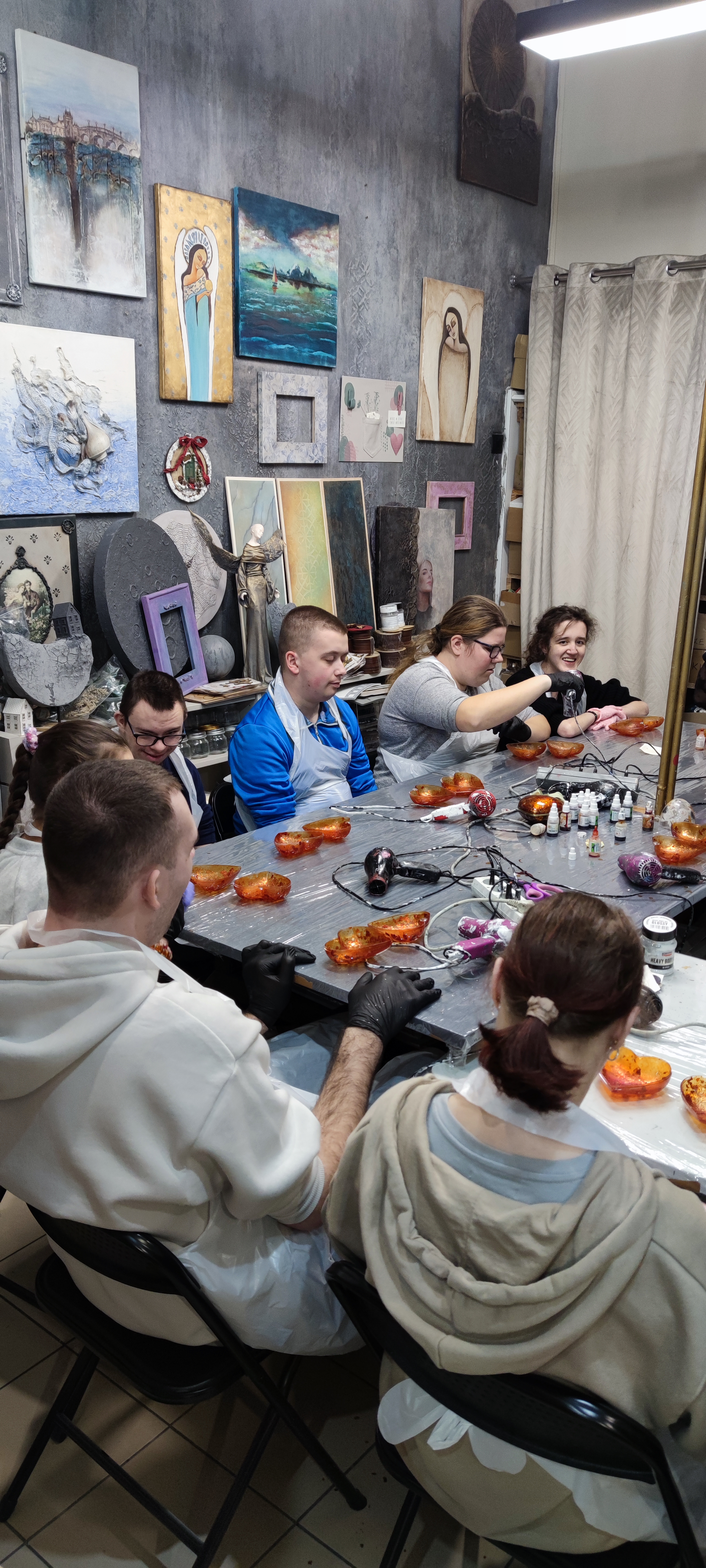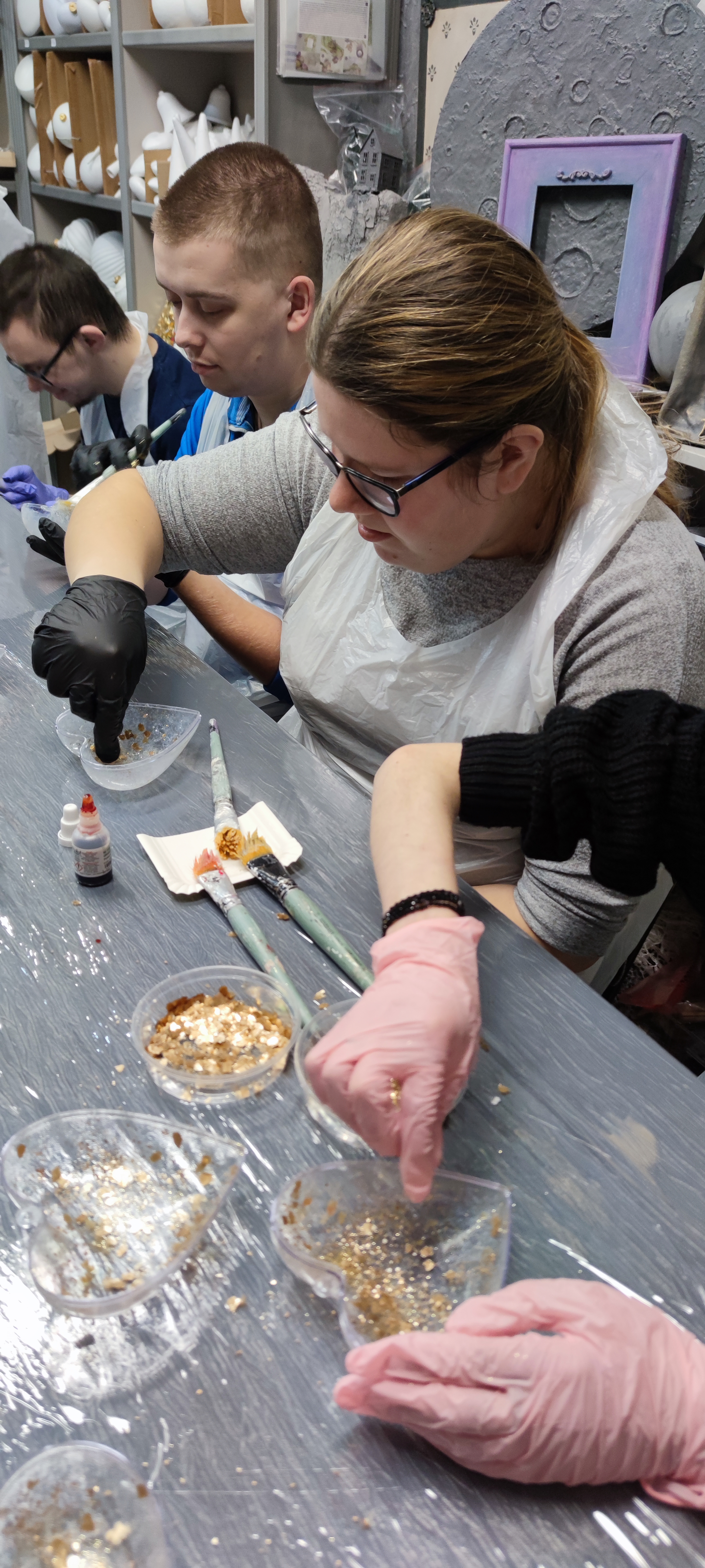 28 stycznia, grupa uczniów ze Szkoły Przysposabiającej do Pracy uczestniczyła w zajęciach wyjazdowych zorganizowanych w ramach innowacji pedagogicznej „Między nicią a pigmentem – odkrywanie sztuki przez malowanie”. Podczas warsztatów w Zamojskim Centrum Rękodzieła „W Ramach Sztuki” pod czujnym okiem instruktorki, Pani Joanny Patron, uczniowie zamienili akrylowe formy, brokat i mikę w unikatowe, przestrzenne dzieła sztuki. Zajęcia przebiegały w twórczej, przyjaznej atmosferze, a uczestnicy chętnie angażowali się w kolejne etapy pracy. Wyjście było nie tylko treningiem precyzji, ale przede wszystkim świetną okazją do integracji i artystycznych eksperymentów. Warsztaty zakończyły się powstaniem efektownych form przestrzennych, dając uczniom ogromne poczucie satysfakcji. Radość z własnoręcznie wykonanych prac – bezcenna!