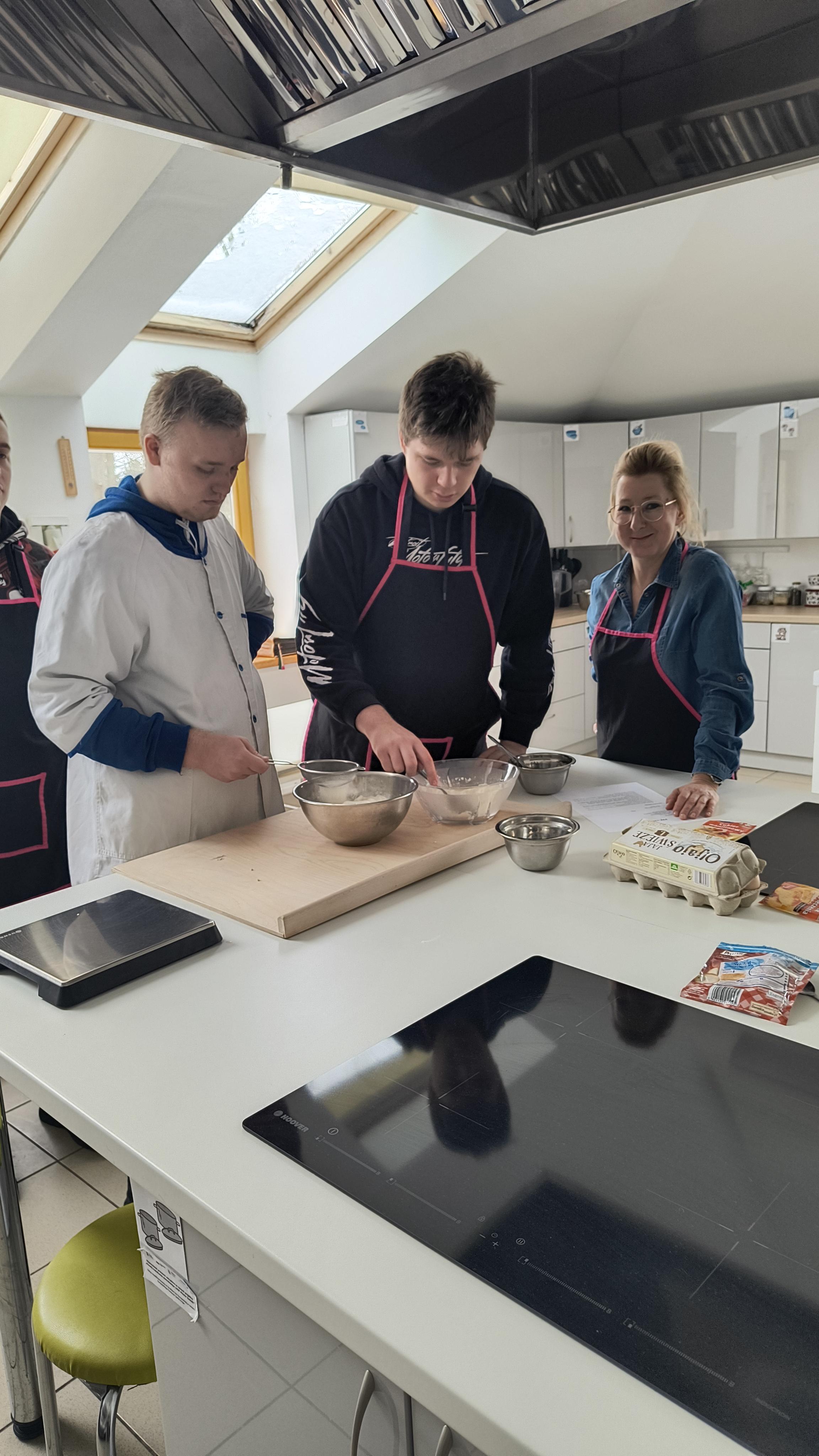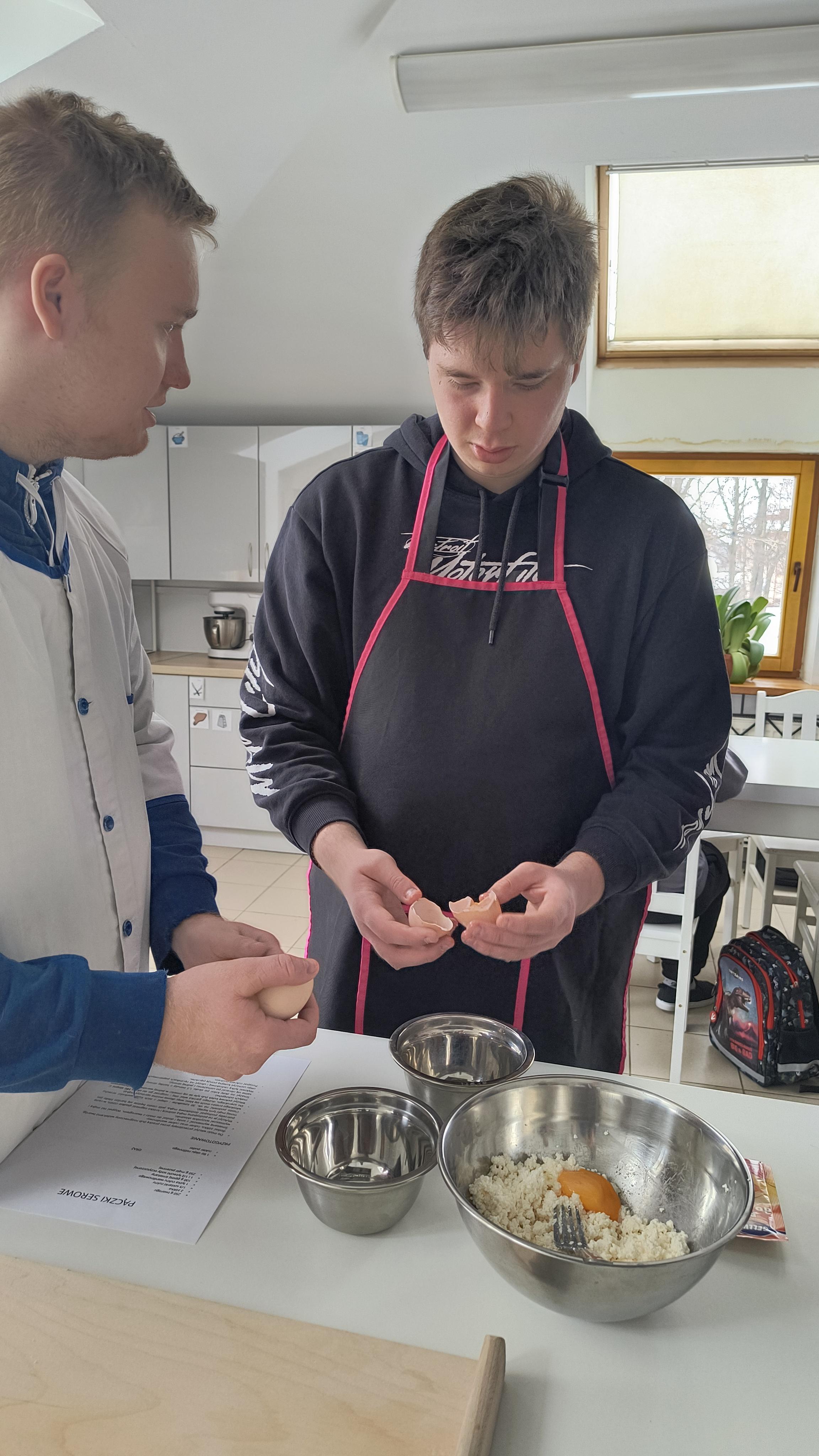 W lutym uczniowie klas 1C-3C oraz 3A Szkoły Przysposabiającej do Pracy rozpoczęli zajęcia w pracowni kulinarnej. Młodzież pod czujnym okiem nauczyciela wykonała mini pączki serowe zakończone degustacją wspólnie sporządzonego deseru.