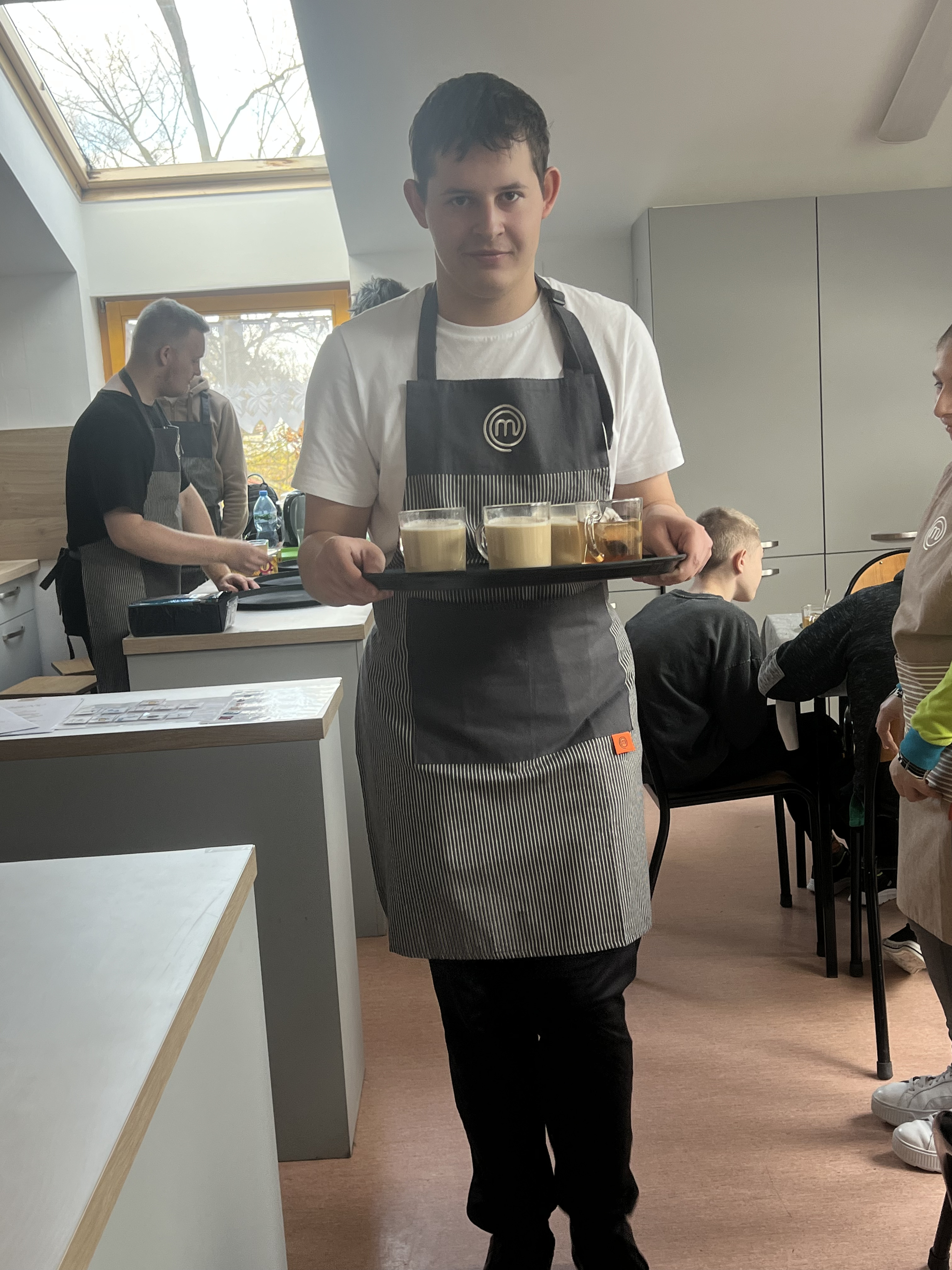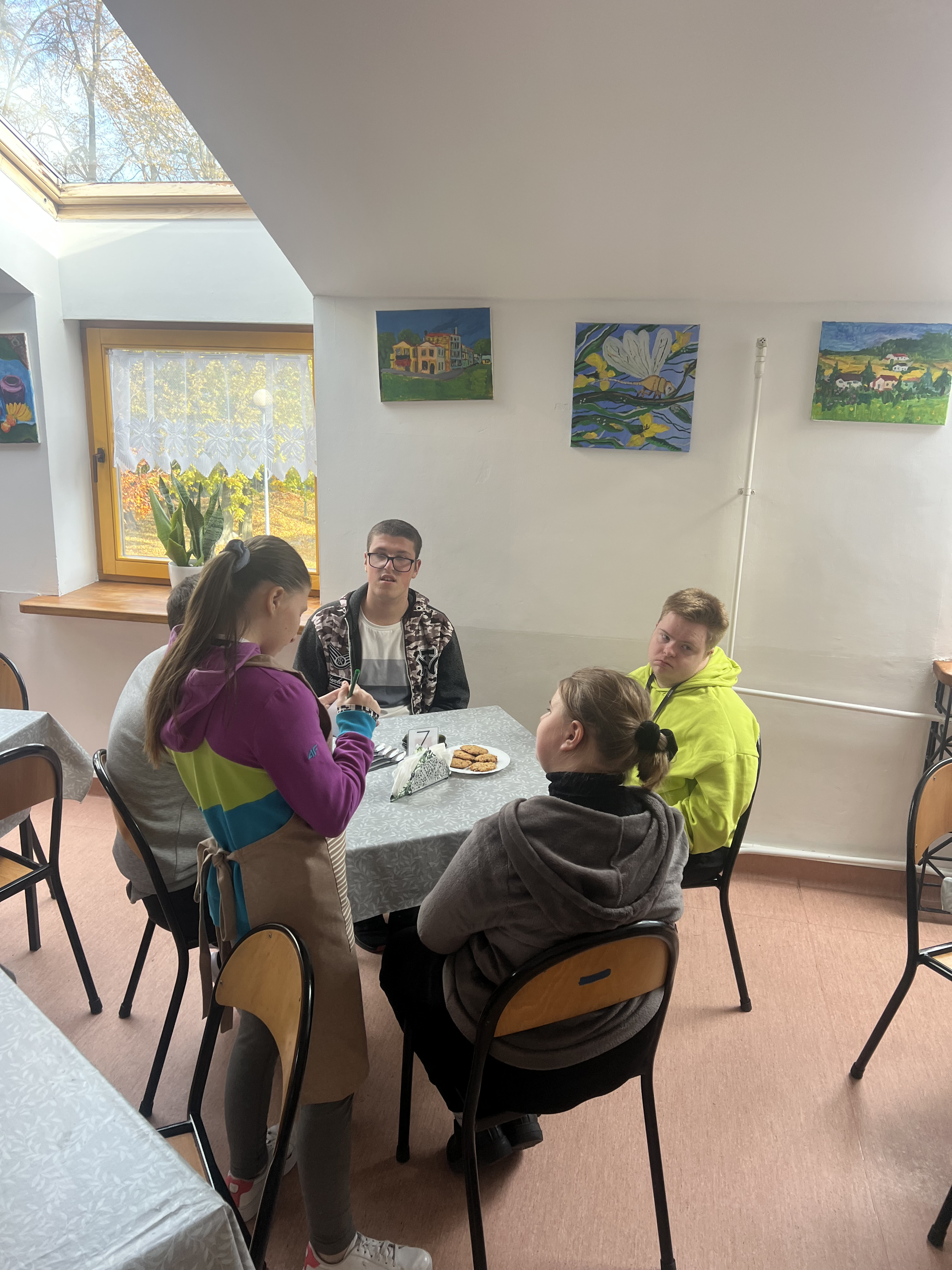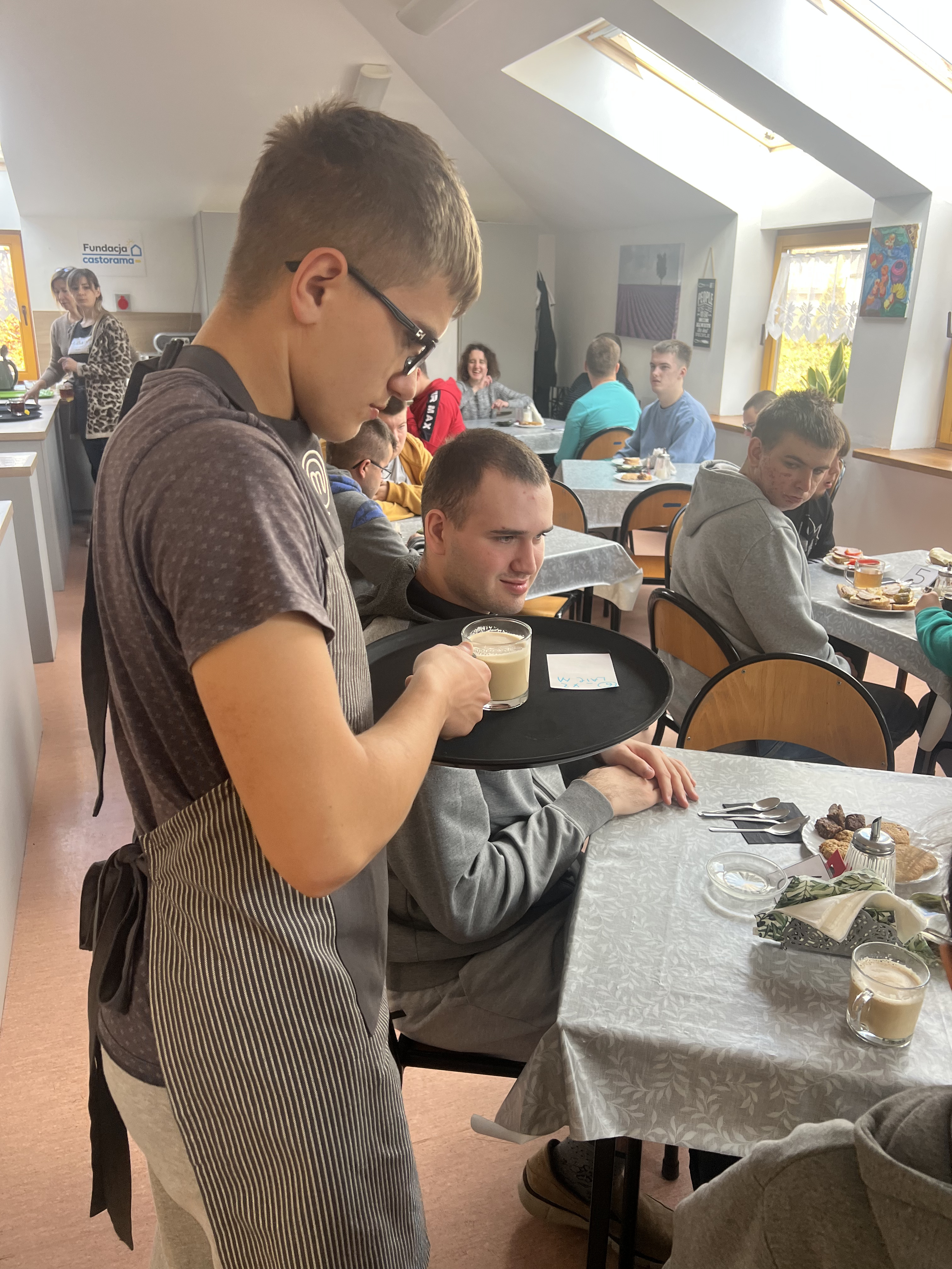 Kawiarenka dla zaproszonych gości była podsumowaniem projektu, a nasi uczniowie, jak widać, z uśmiechami na twarzach, dumnie pełnili swoje role.