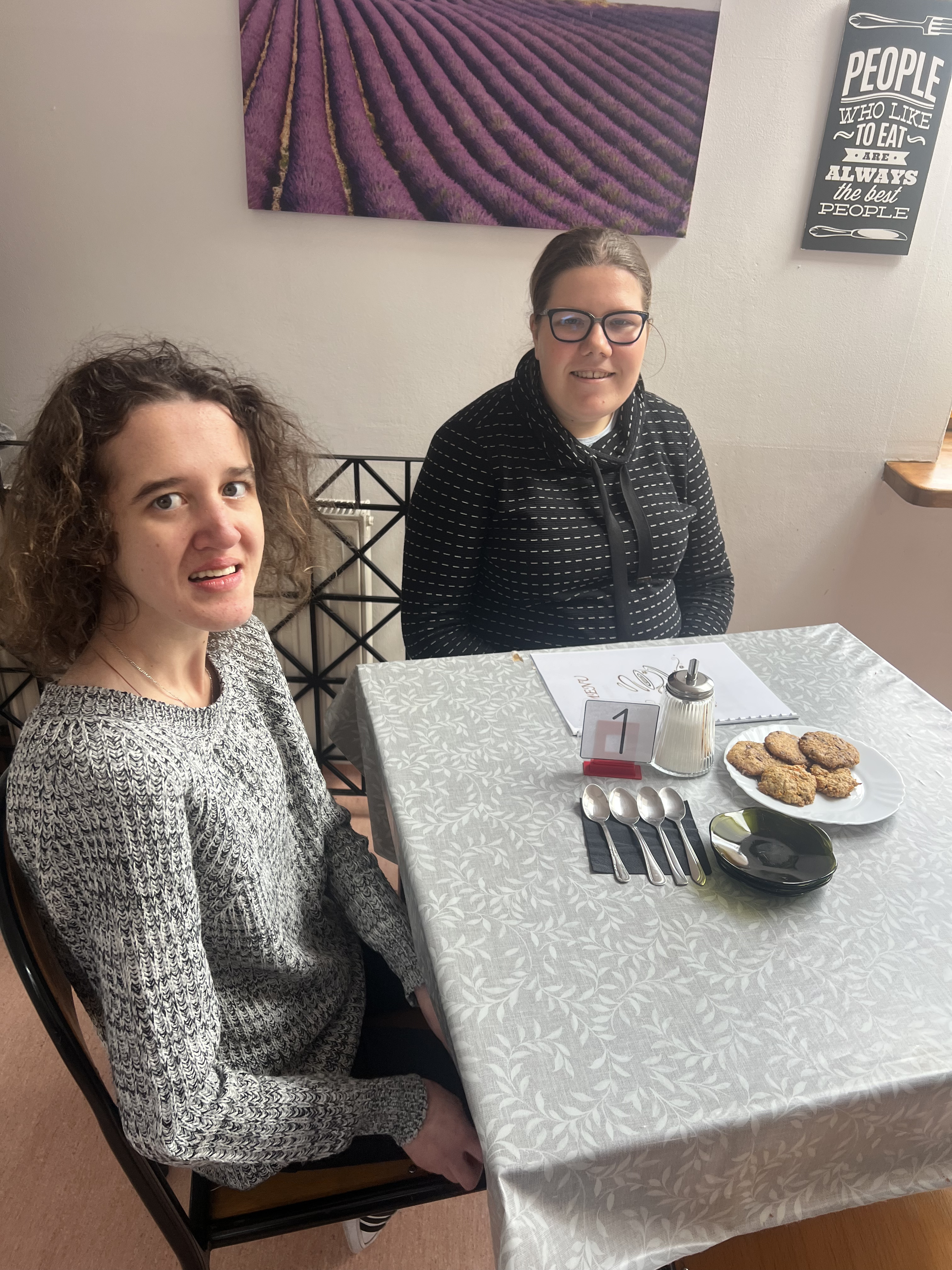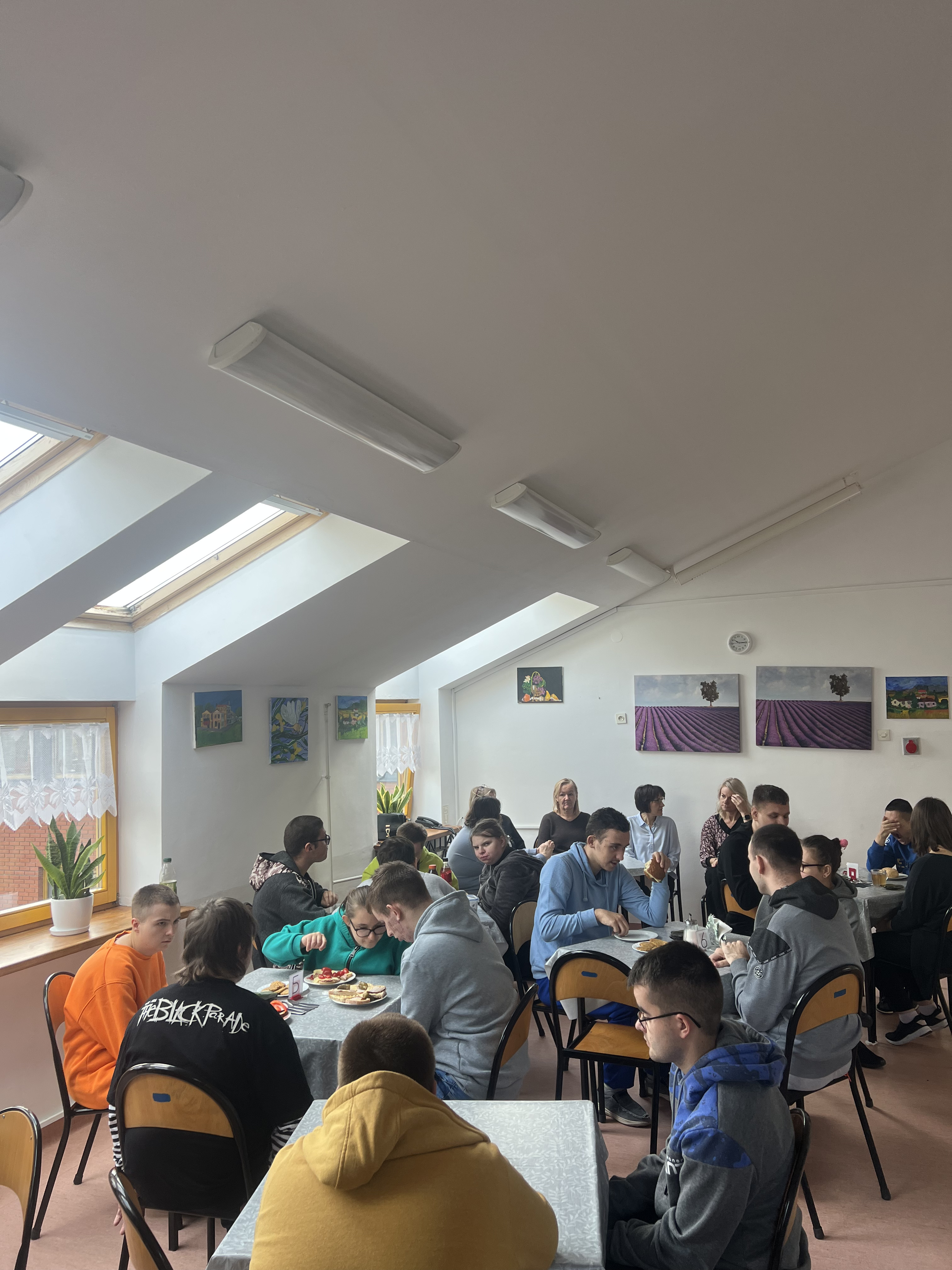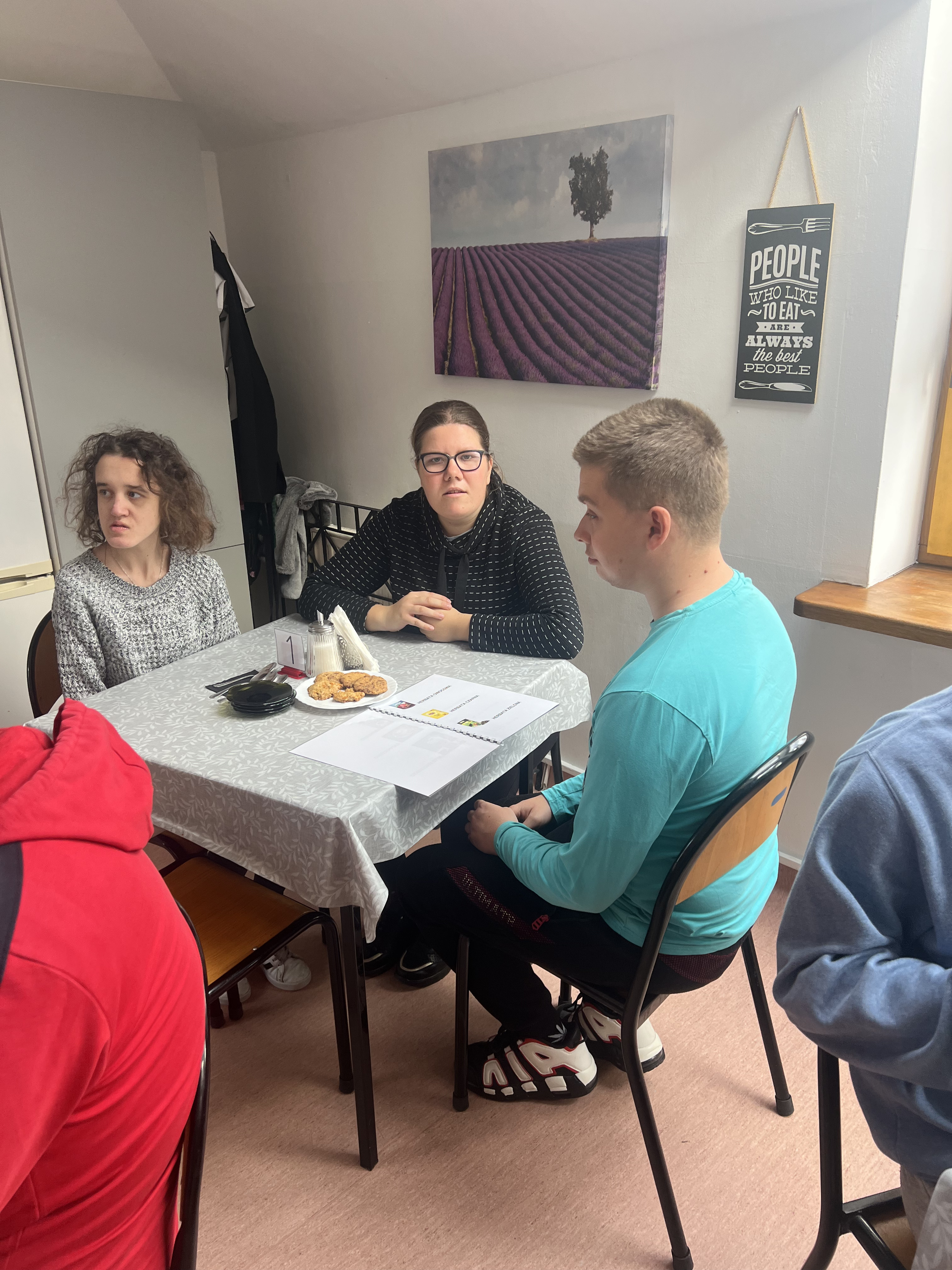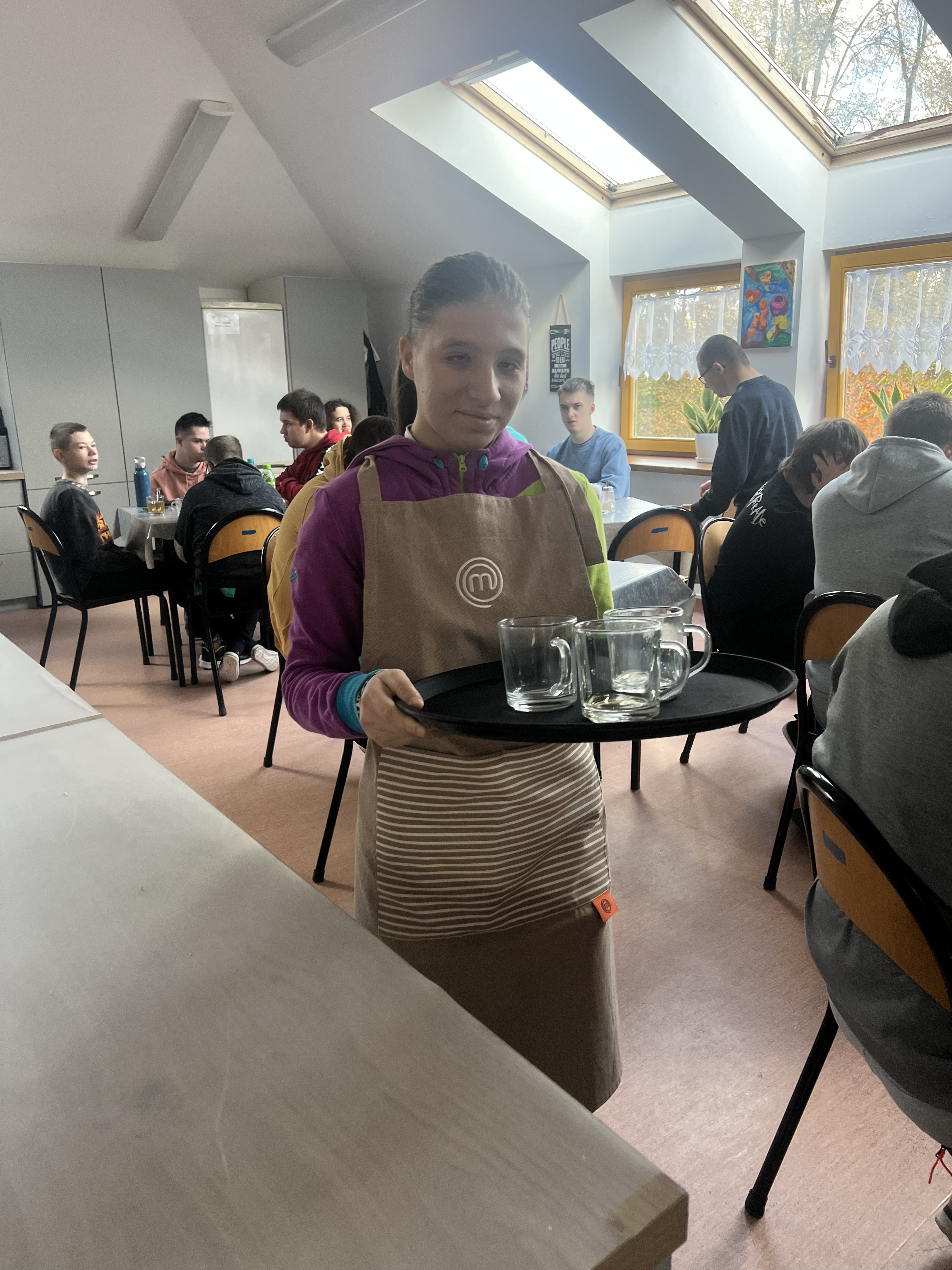 Kawiarenka dla zaproszonych gości była podsumowaniem projektu, a nasi uczniowie, jak widać, z uśmiechami na twarzach, dumnie pełnili swoje role.