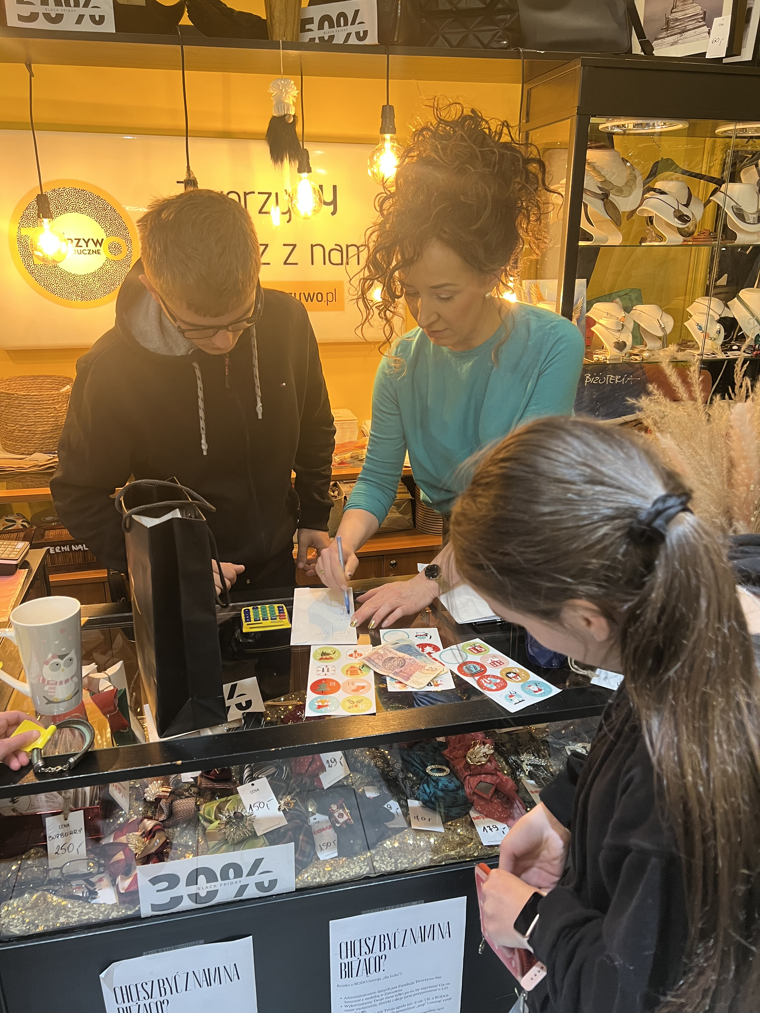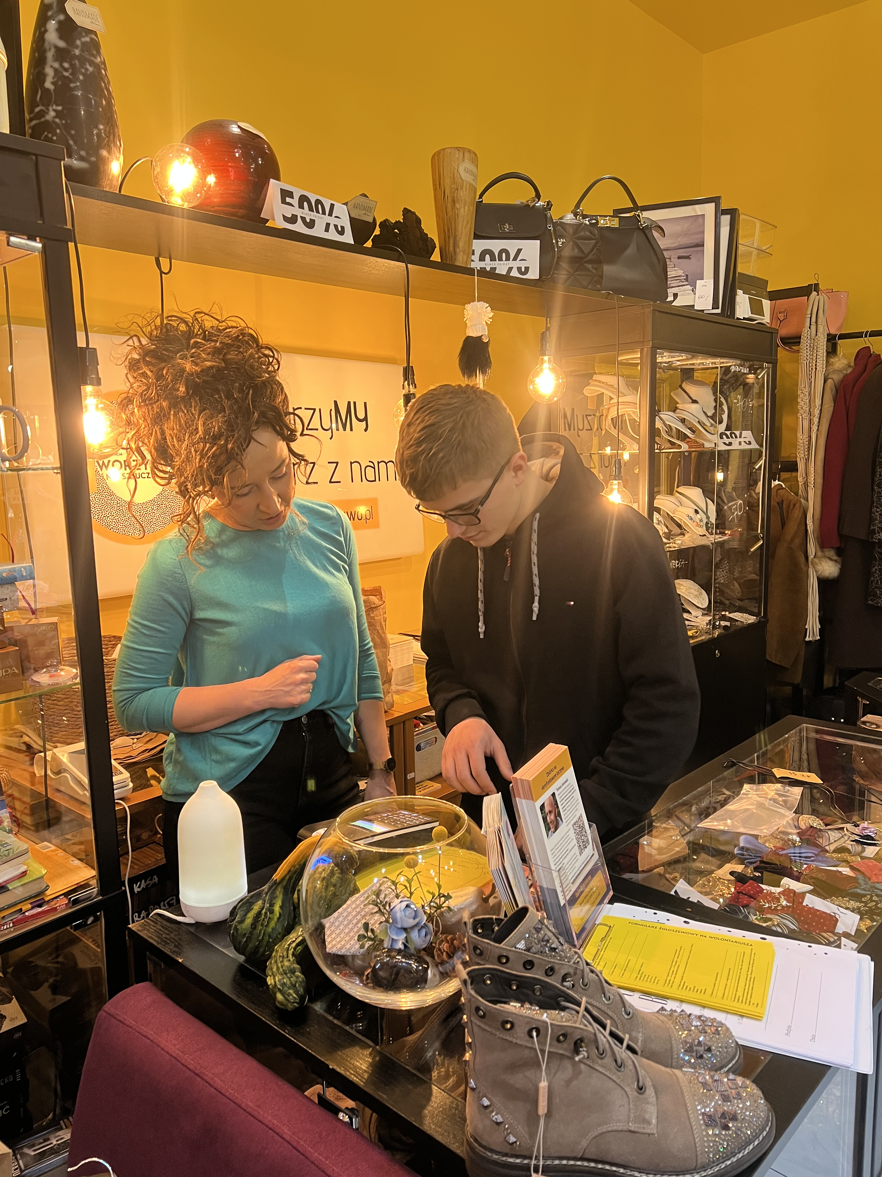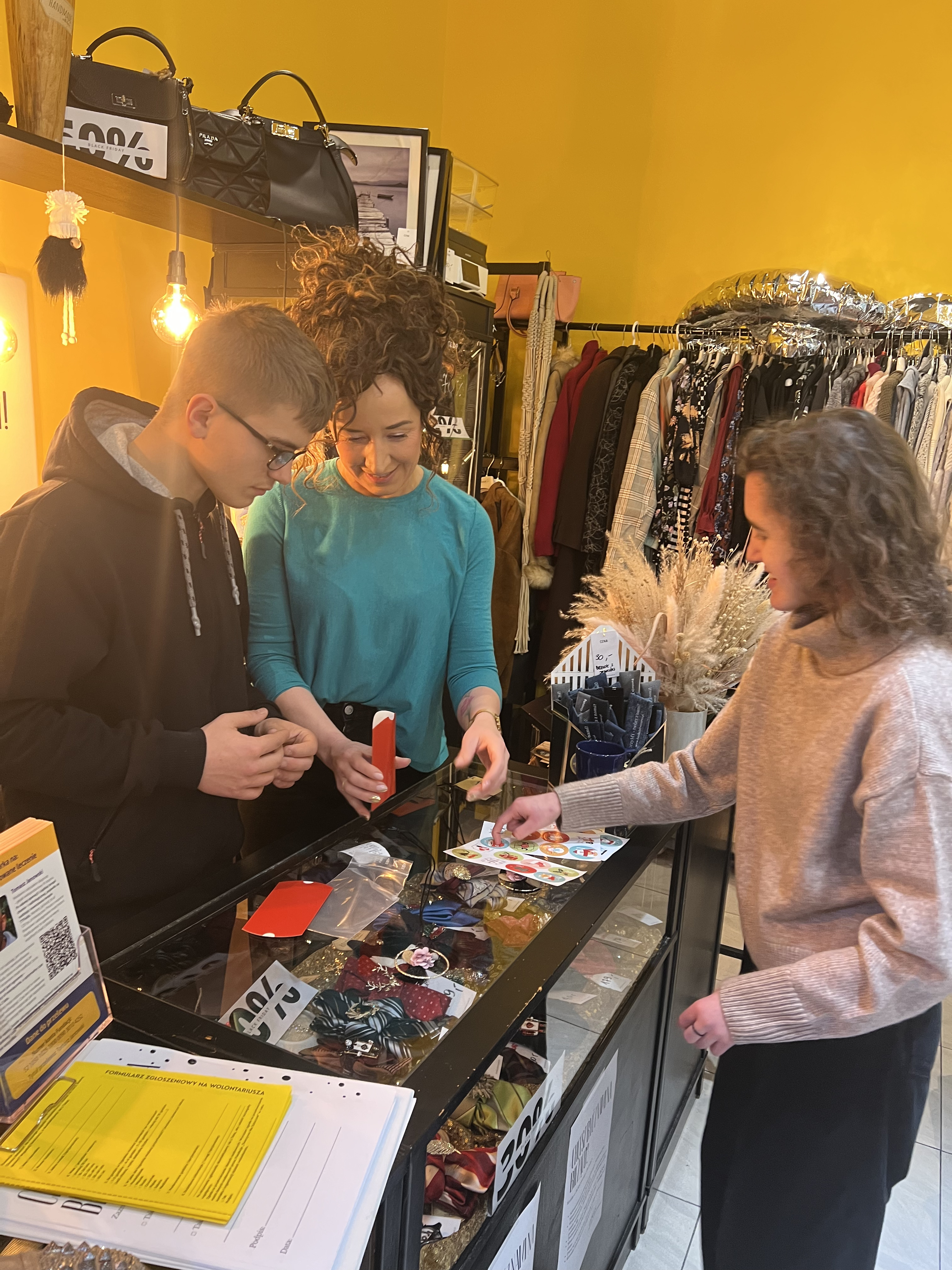 Praktyki wspomagane to świetna okazja do nauki nowych czynności pracy. Uczniowie klasy 3As SPdP odwiedzając sklep charytatywny w Galerii Revia Park uczą się m.in. segregowania i sortowania towaru, układania asortymentu według kategorii i obsługi klienta. Wcielają się w rolę sprzedawców i klientów, rozwijają umiejętność pracy zespołowej i organizację pracy własnej.