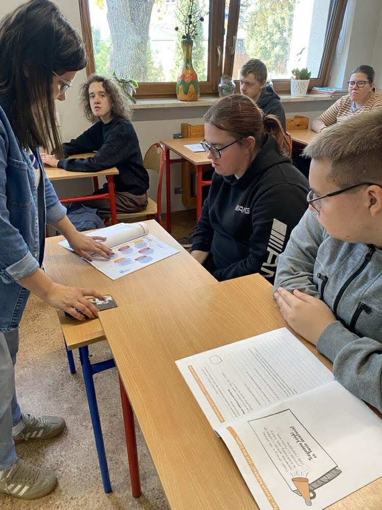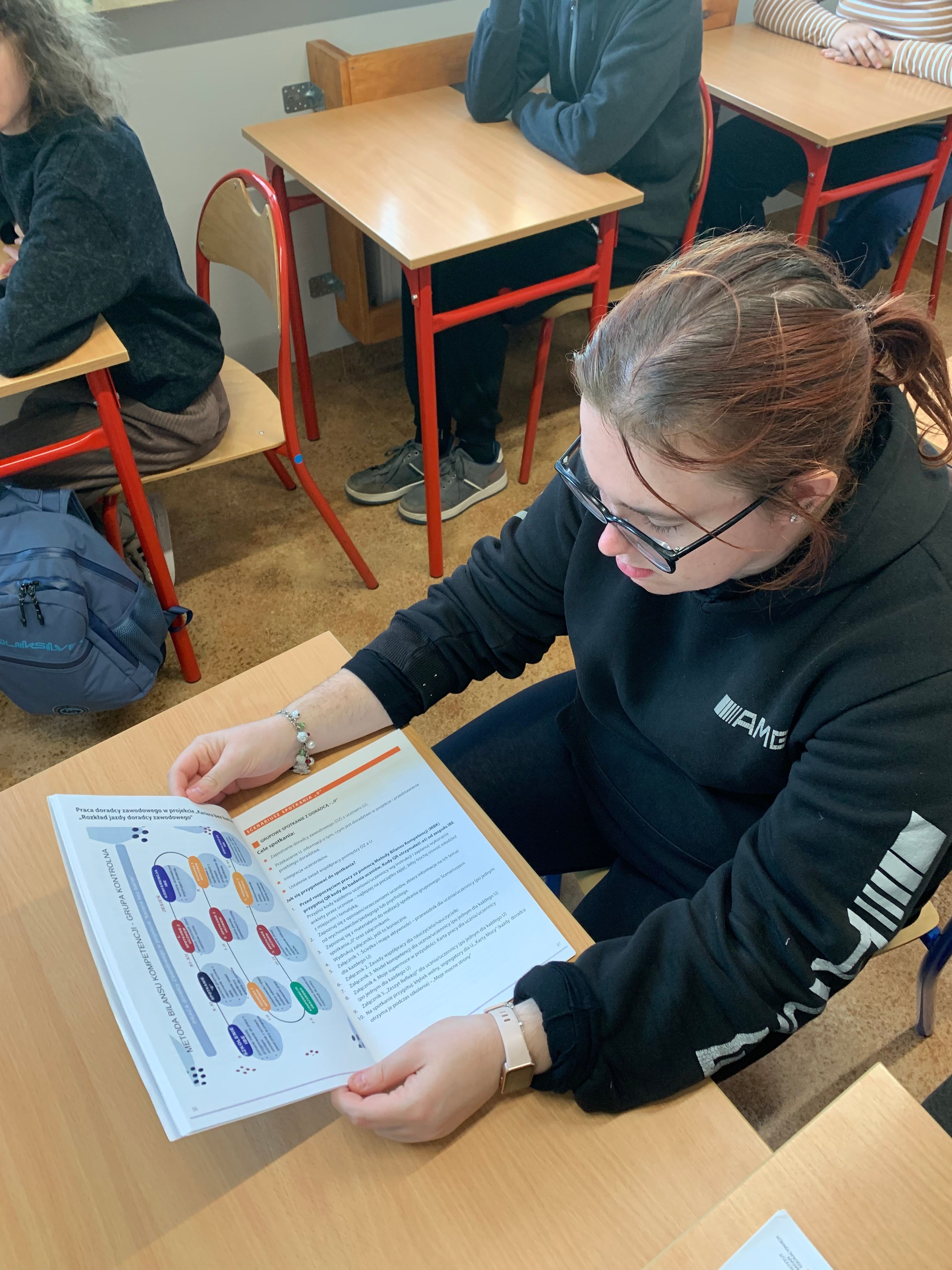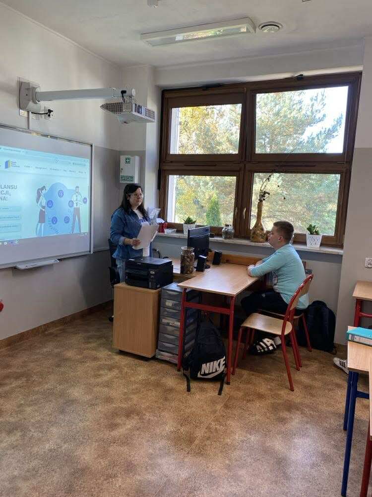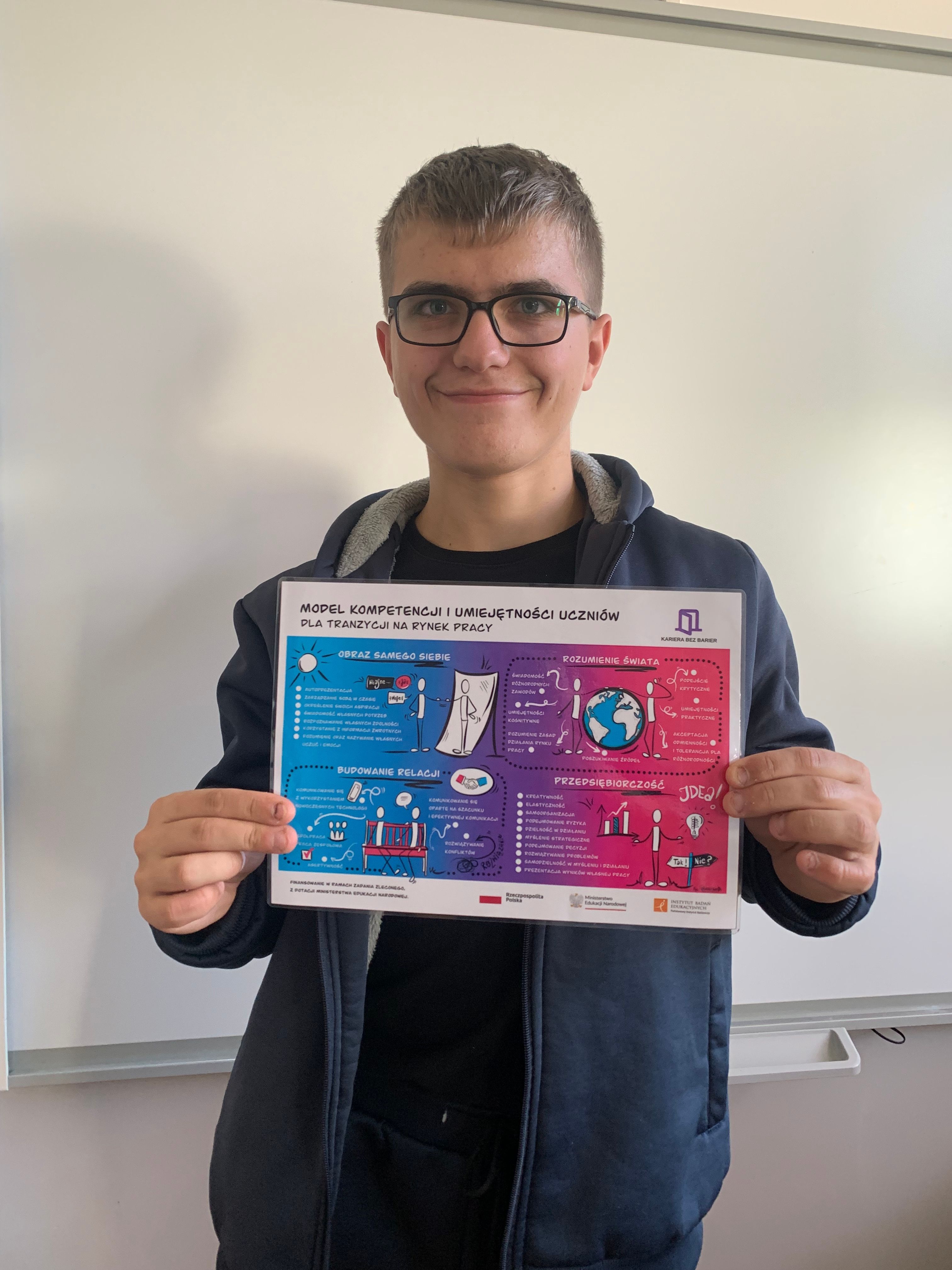 W ramach projektu #KarieraBezBarier uczniowie klas 3As, 3Cs-1Cs uczestniczyli w spotkaniu z doradcą zawodowym Magdaleną Gontarz. Doradca zawodowy zapoznał uczniów z założeniami Metody Bilansu Kompetencji oraz przedstawił plan spotkań i konsultacji z uczniami. Młodzież dowiedziała się jak będzie wyglądała ich współpraca z doradcą zawodowym i jaka jest jej rola w procesie doradczym. W trakcie spotkania uczniowie podjęli próbę analizy swoich mocnych i słabych stron, zainteresowań i predyspozycji, zadawali także na pytania dotyczące ich przyszłości edukacyjno-zawodowej.