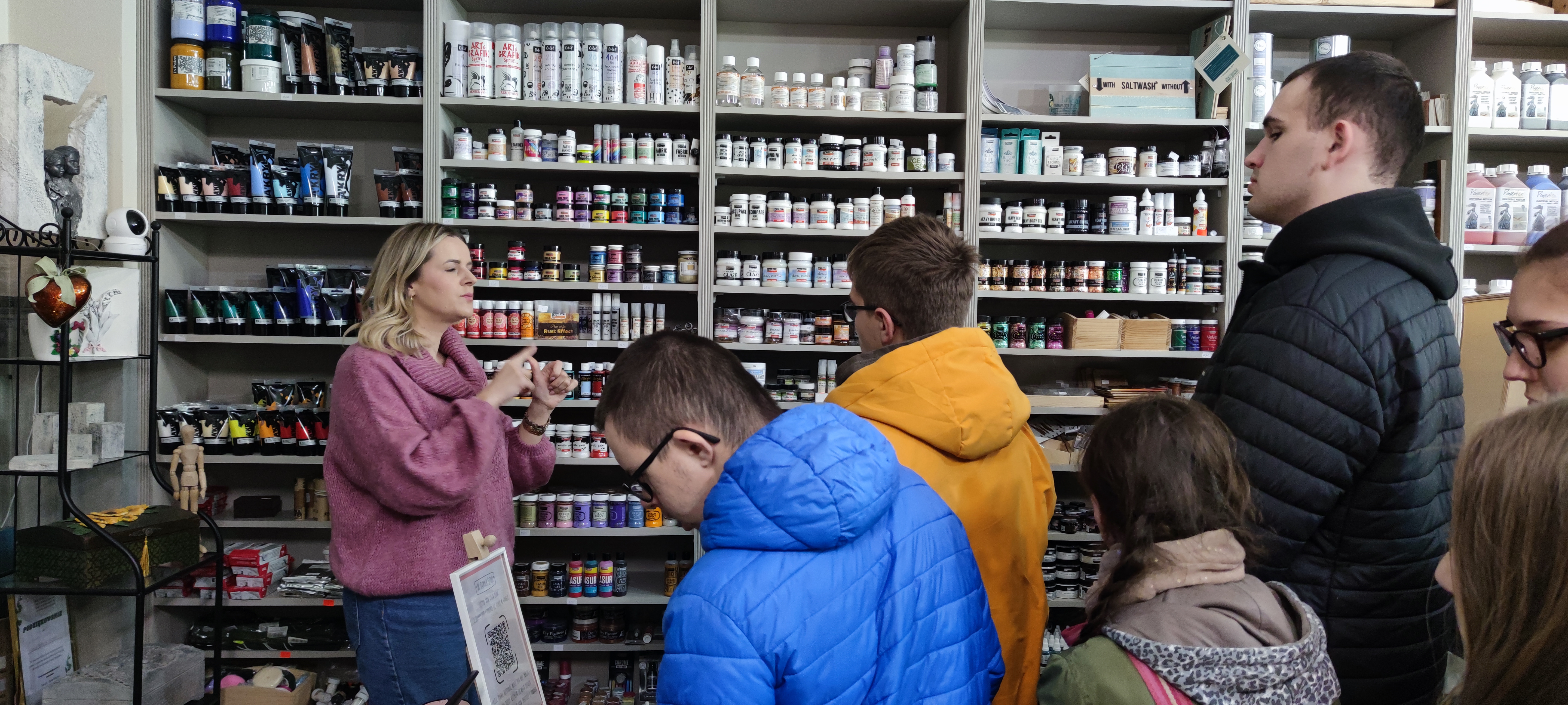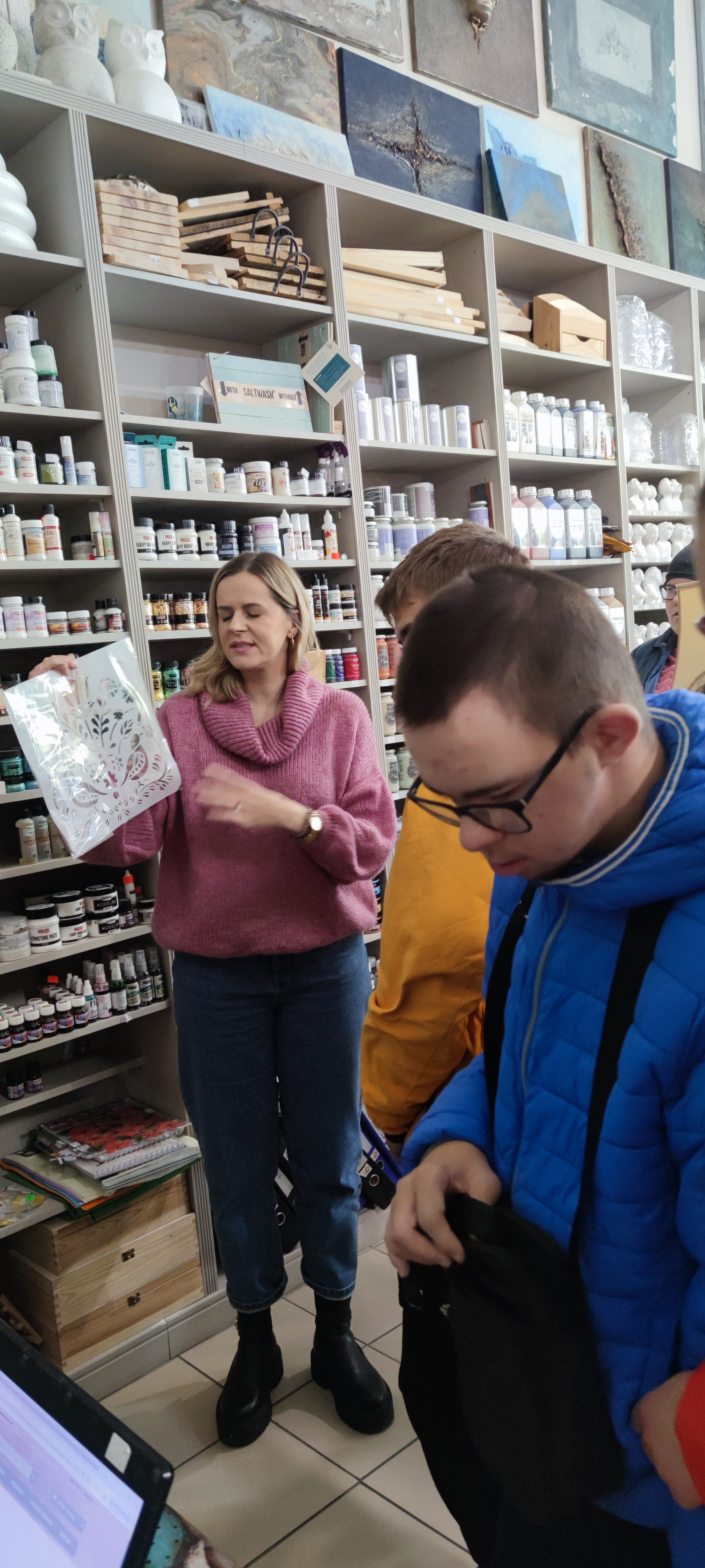 Uczniowie klas 3As i 2As SPDP wybrali się do Zamojskiego Centrum Rękodzieł „W Ramach Sztuki” . To sklep i pracownia w jednym. Właścicielka, Pani Joanna pokazała nam różne rodzaje farb oraz szablony do malowania na tkaninach. Zaprezentowała nam jak wykorzystać akcesoria do decoupage na różnych fakturach. Zakupiliśmy niezbędne materiały, które pozwolą nam rozwijać umiejętności rękodzielnicze.