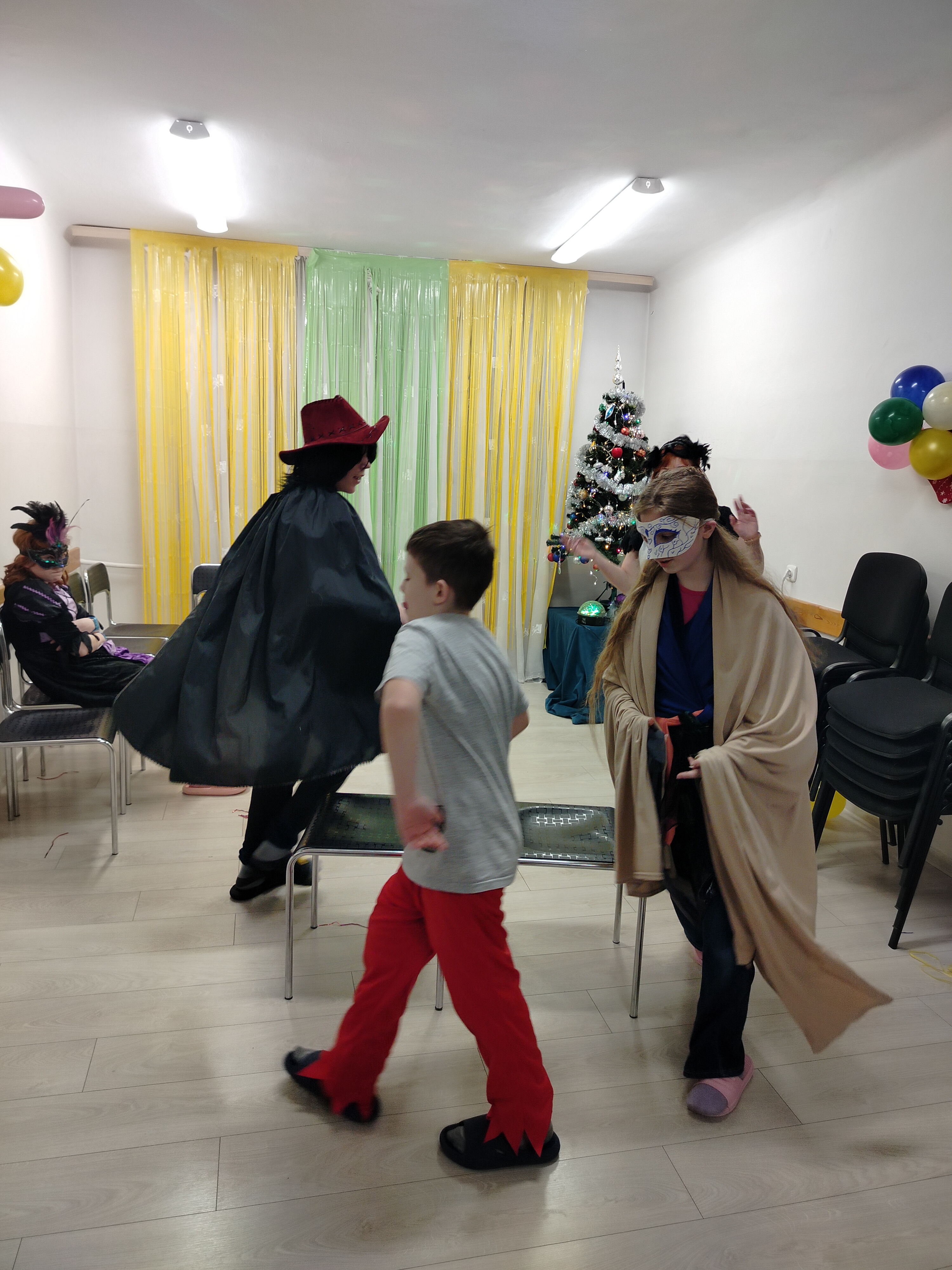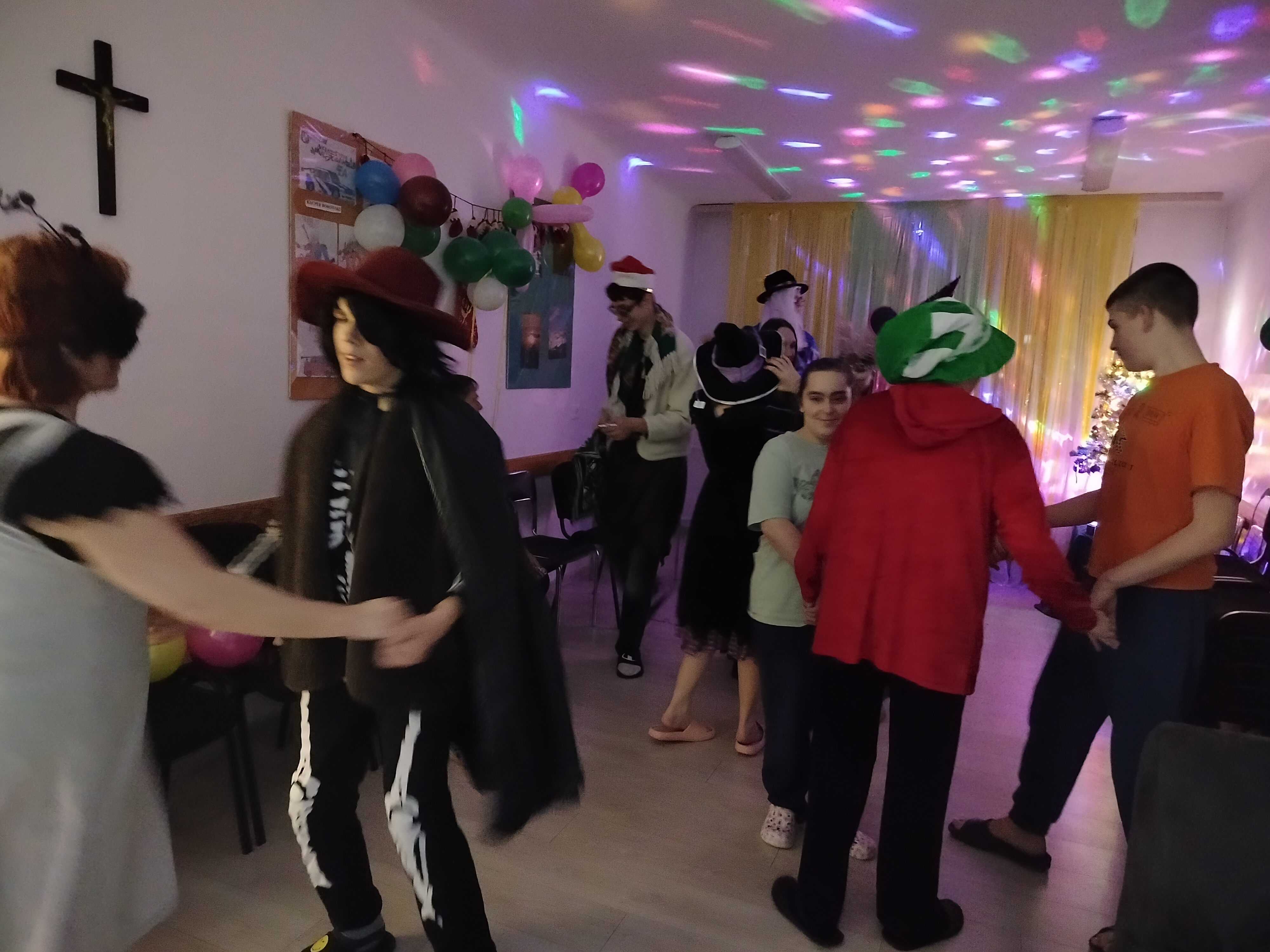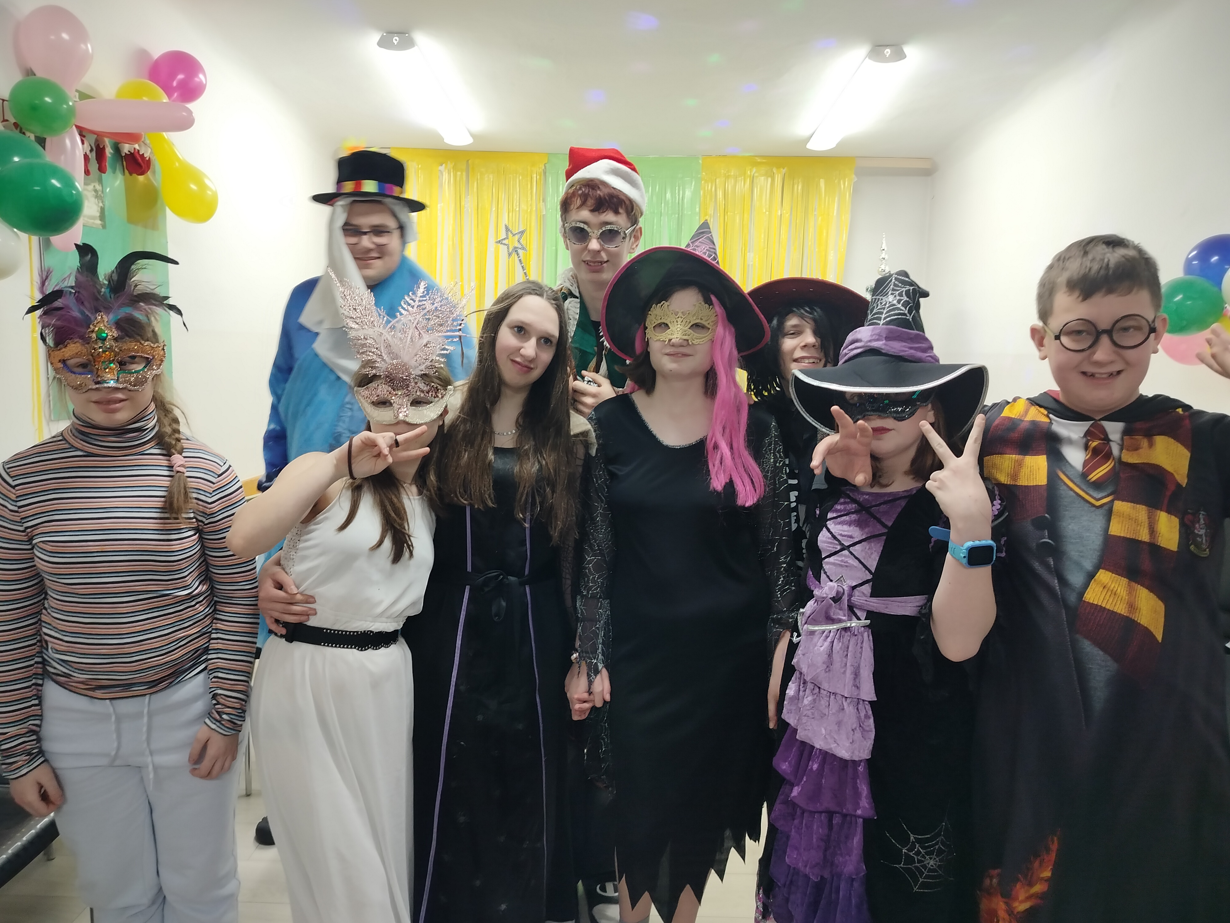 Świetlica zamieniła się w krainę magii, pełną kolorowych balonów, serpentyn i świateł. Wychowankowie zadbali o wystrzałowe przebrania – na parkiecie wirowały tańczące wróżki, superbohaterowie, czarownice, a nawet postacie z odległych krain.