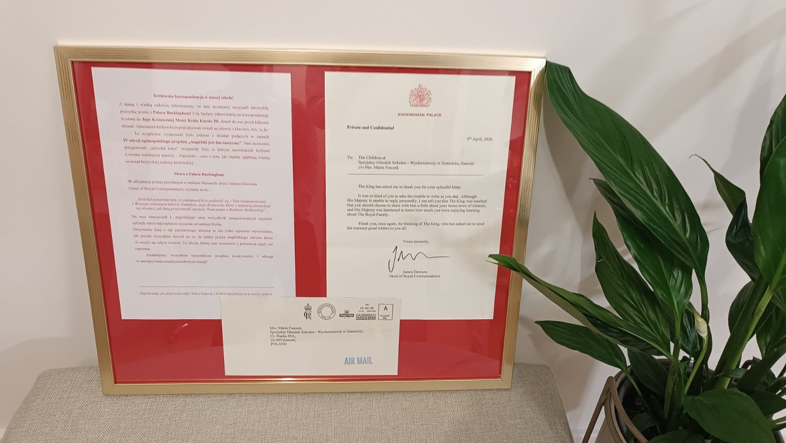 Z dumą i wielką radością informujemy, że nasi uczniowie otrzymali niezwykłą przesyłkę prosto z Pałacu Buckingham! List, będący odpowiedzią na korespondencję wysłaną do Jego Królewskiej Mości Króla Karola III, dotarł do nas przed kilkoma dniami. Adresatami królewskich podziękowań zostali uczniowie z klas:6bA, 7bA, 7a, 8a.