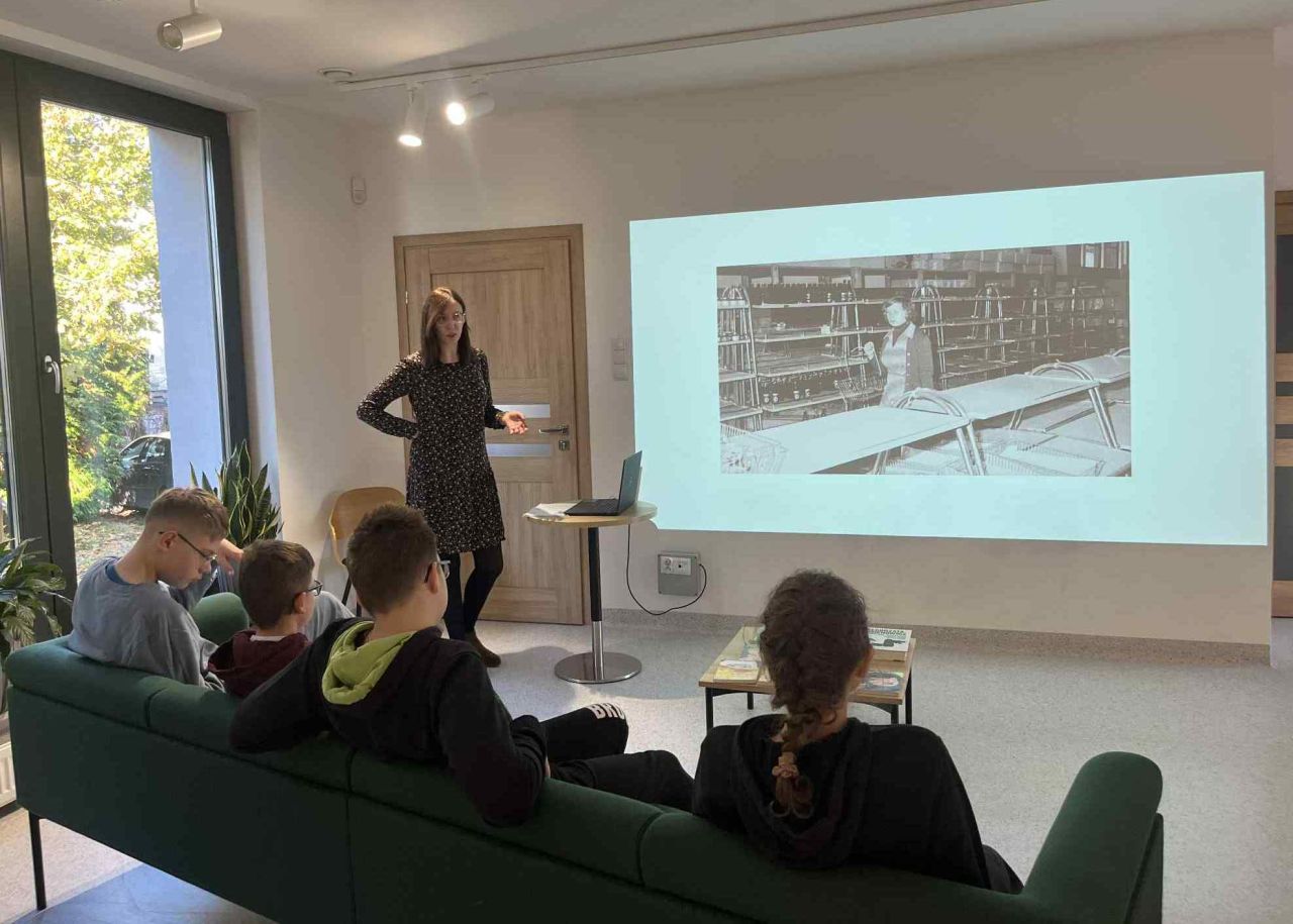 W październiku br. uczniowie klas 6bA-7bA, 7a-8a szkoły podstawowej oraz klas 2az i 3az szkoły branżowej, wzięli udział w zajęciach bibliotecznych zorganizowanych przez Filię Biblioteczną nr 6 Książnicy Zamojskiej pt. „Ty tego nie pamiętasz… – Życie codzienne w czasie stanu wojennego”. Podczas spotkania młodzież poznała realia życia w Polsce lat 80. XX w., dowiedziała się, jak wyglądała codzienność w czasie stanu wojennego oraz jakie ograniczenia spotykały ludzi w tamtym czasie. Uczniowie wysłuchali ciekawych historii, oglądali archiwalne zdjęcia i materiały. Zajęcia spotkały się z dużym zainteresowaniem i były wartościową lekcją historii najnowszej.