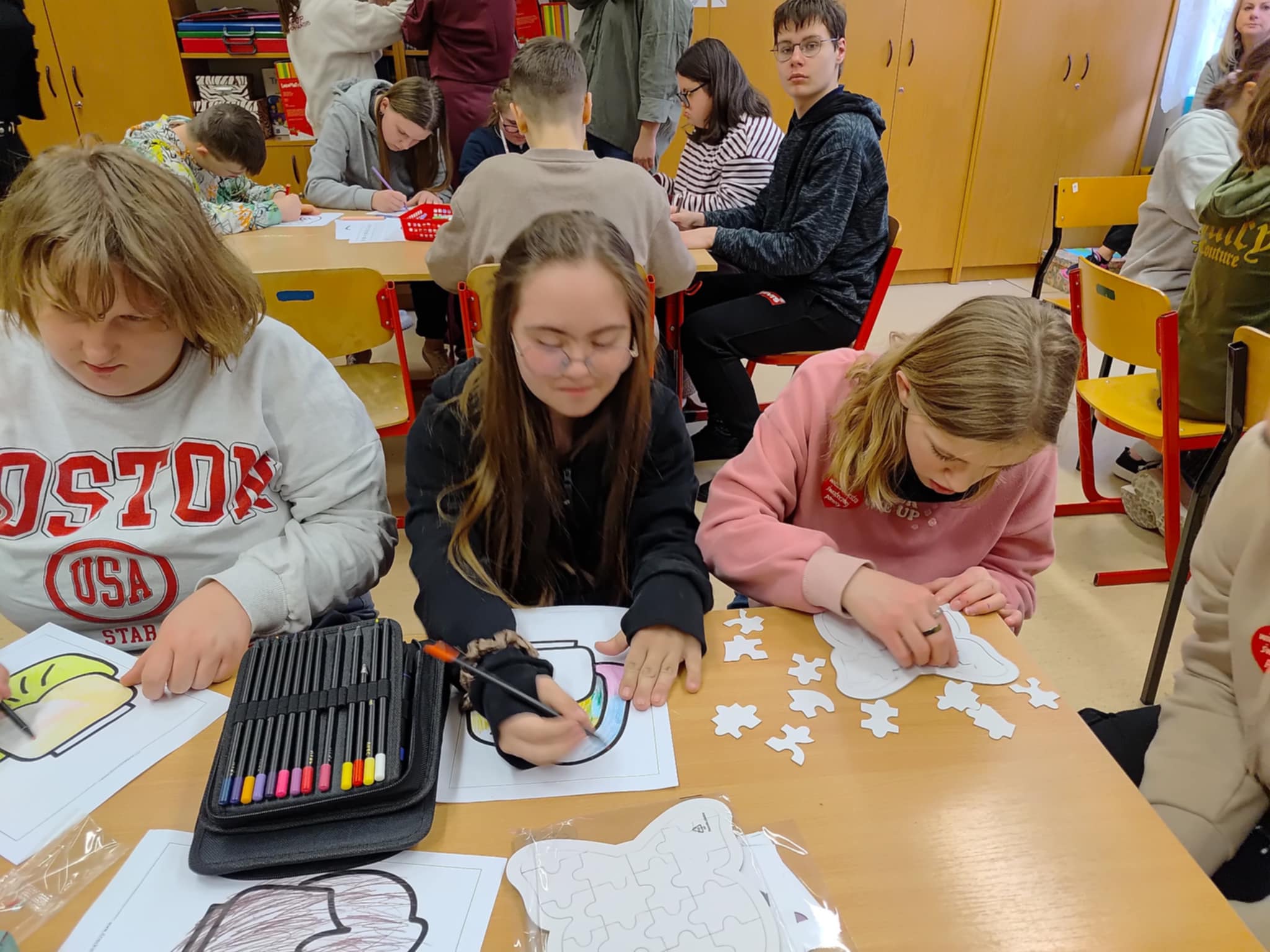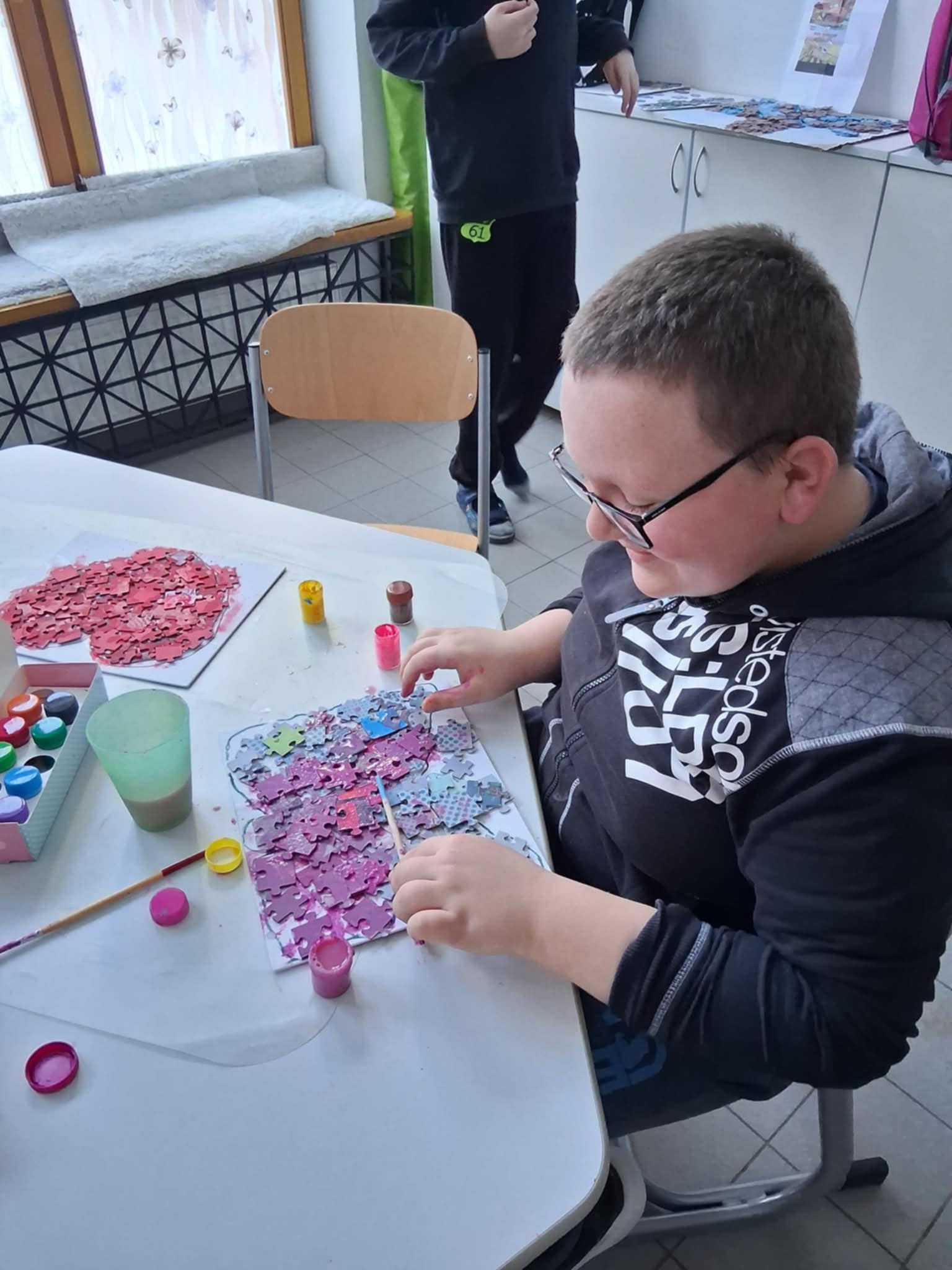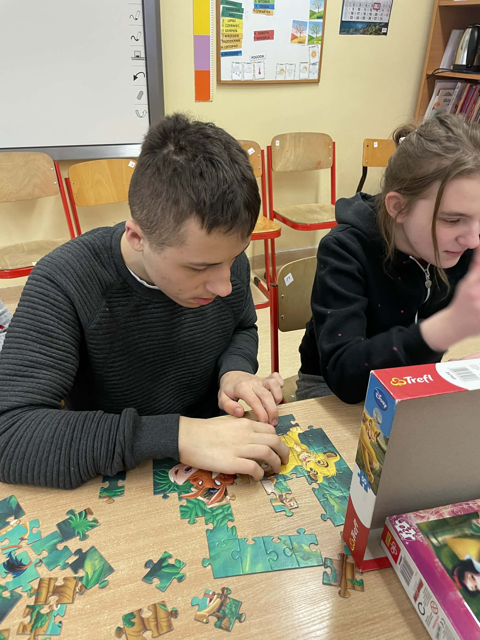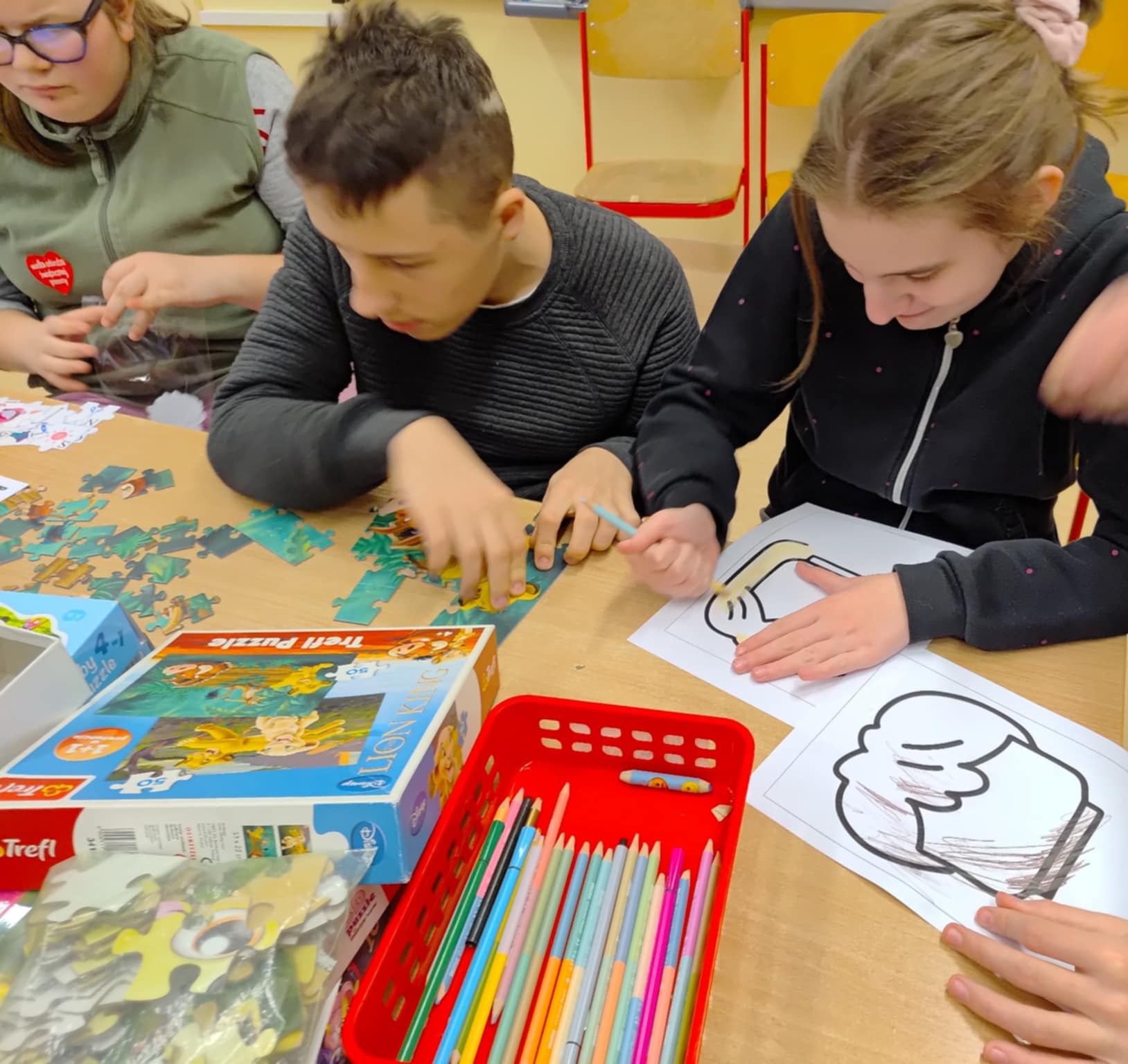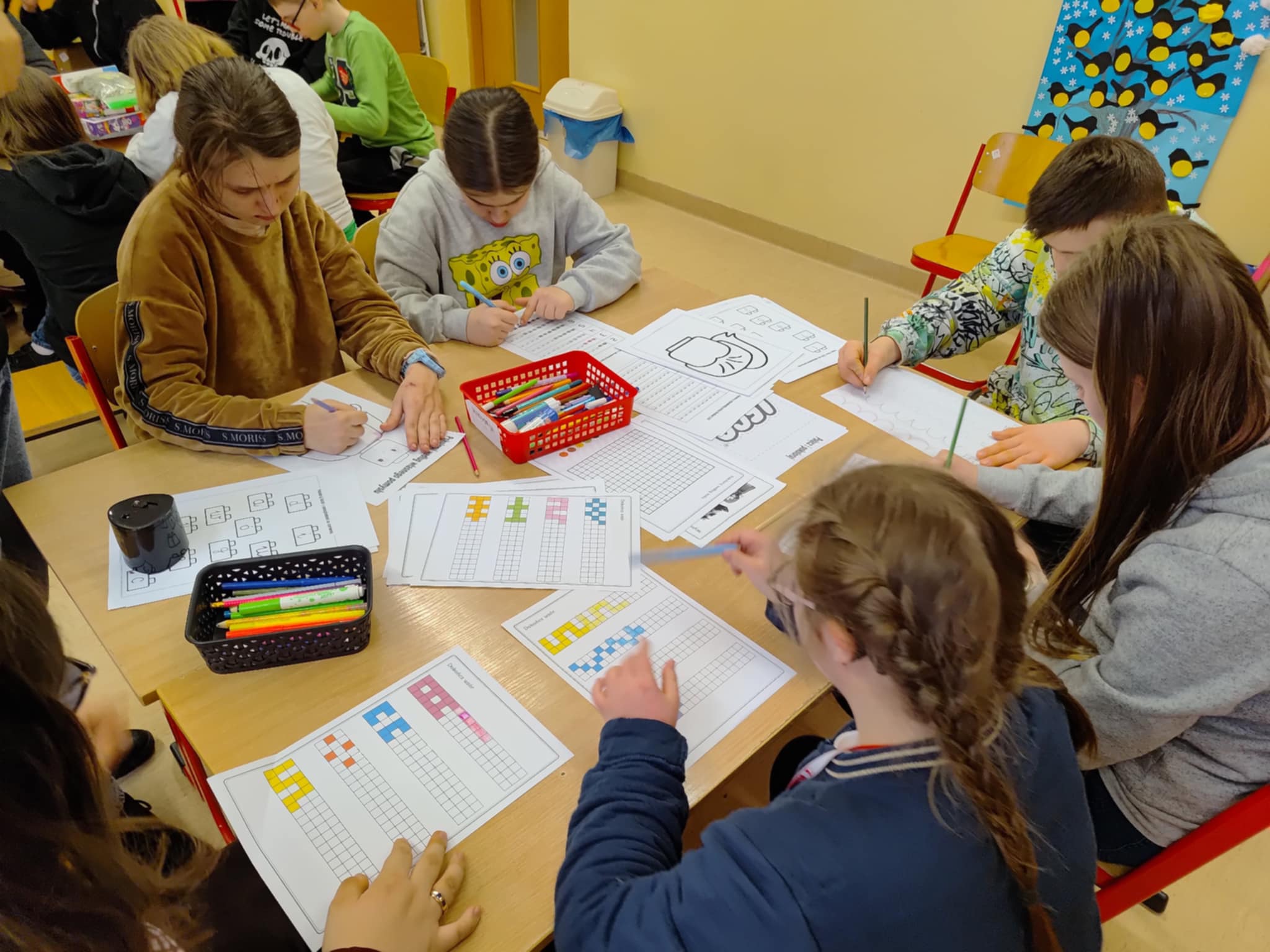 W ubiegłym tygodniu odbyły się kreatywne warsztaty zorganizowane z okazji Międzynarodowego Dnia Lego i Dnia Puzzli. Na uczniów czekał cały szereg zadań, m.in.: układanie budowli i przedmiotów z klocków według instrukcji lub własnego pomysłu, kolorowanie kredkami w konturze, wzorując się na figurkach LEGO, układanie puzzli. Uczestnicy rozwiązywali także łamigłówki, przeliczali i kodowali oraz stworzyli piękne prace plastyczne ze starych puzzli. Zwieńczeniem zajęć była słodka degustacja galaretek w kształcie klocków i puzzli. Warsztaty odbyły się także na Świetlicy Szkolnej.