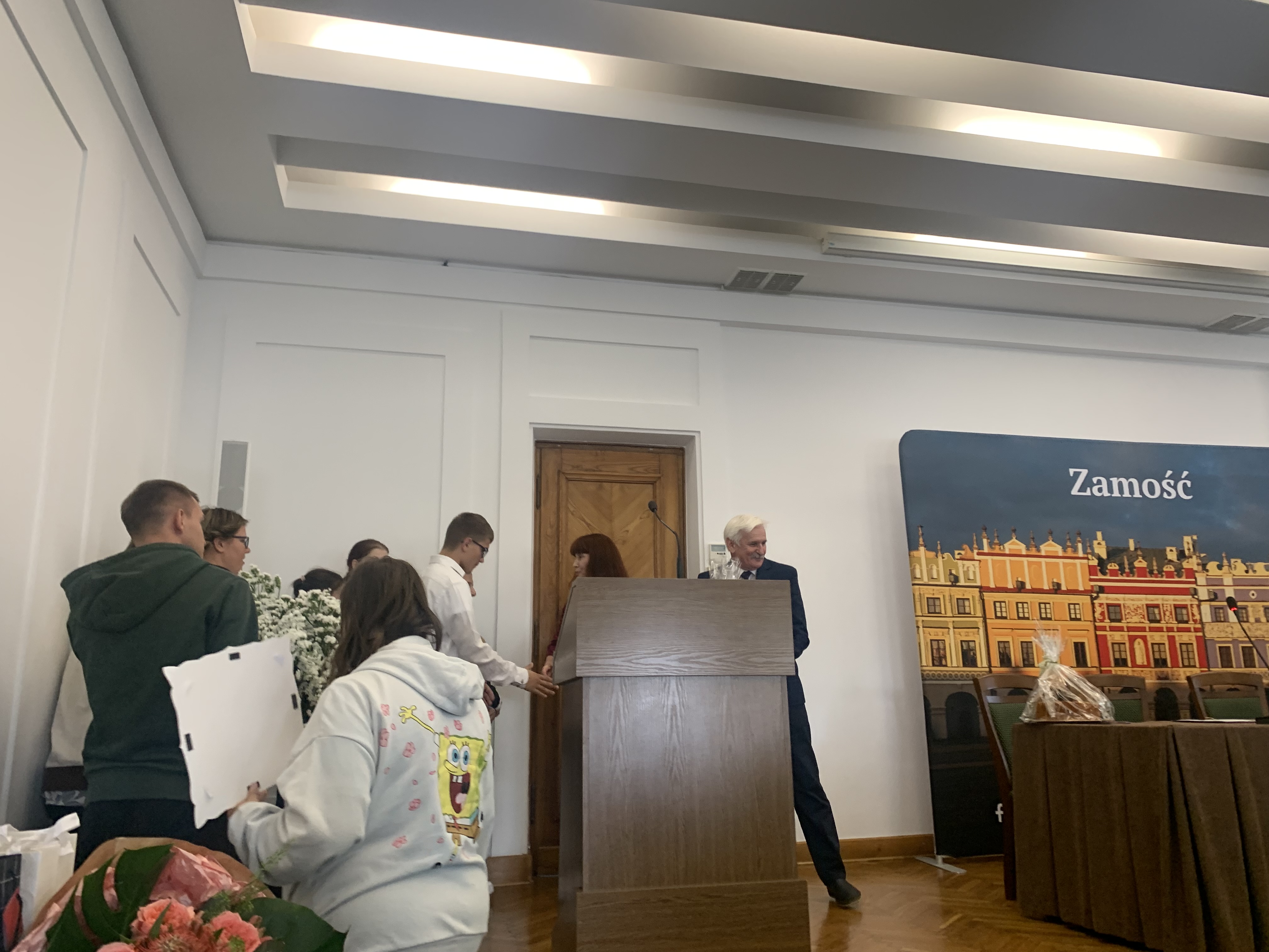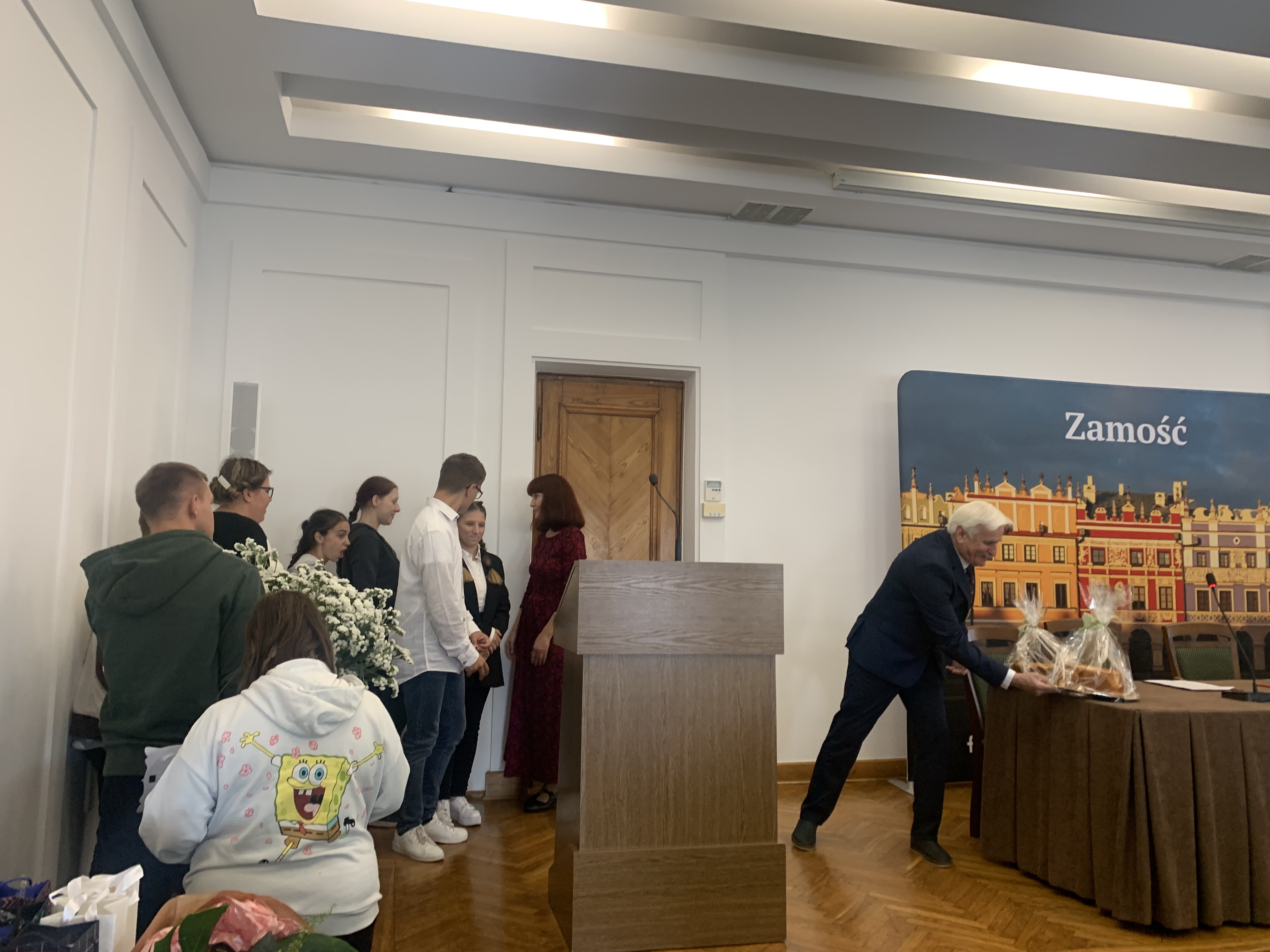 W ramach współpracy z Fundacją Tworzywo Nie Sztuczne, uczniowie klas SPdP 2As, 3As pod kierunkiem nauczycieli (M. Droździel, M. Gontarz, E. Grechuta), przygotowali słodkie upominki dla seniorów, które zostały wręczone podczas jubileuszowej Zamojskiej Rady Seniorów w dniu 18.09.2025r. w Sali Consulatus Zamojskiego Ratusza.