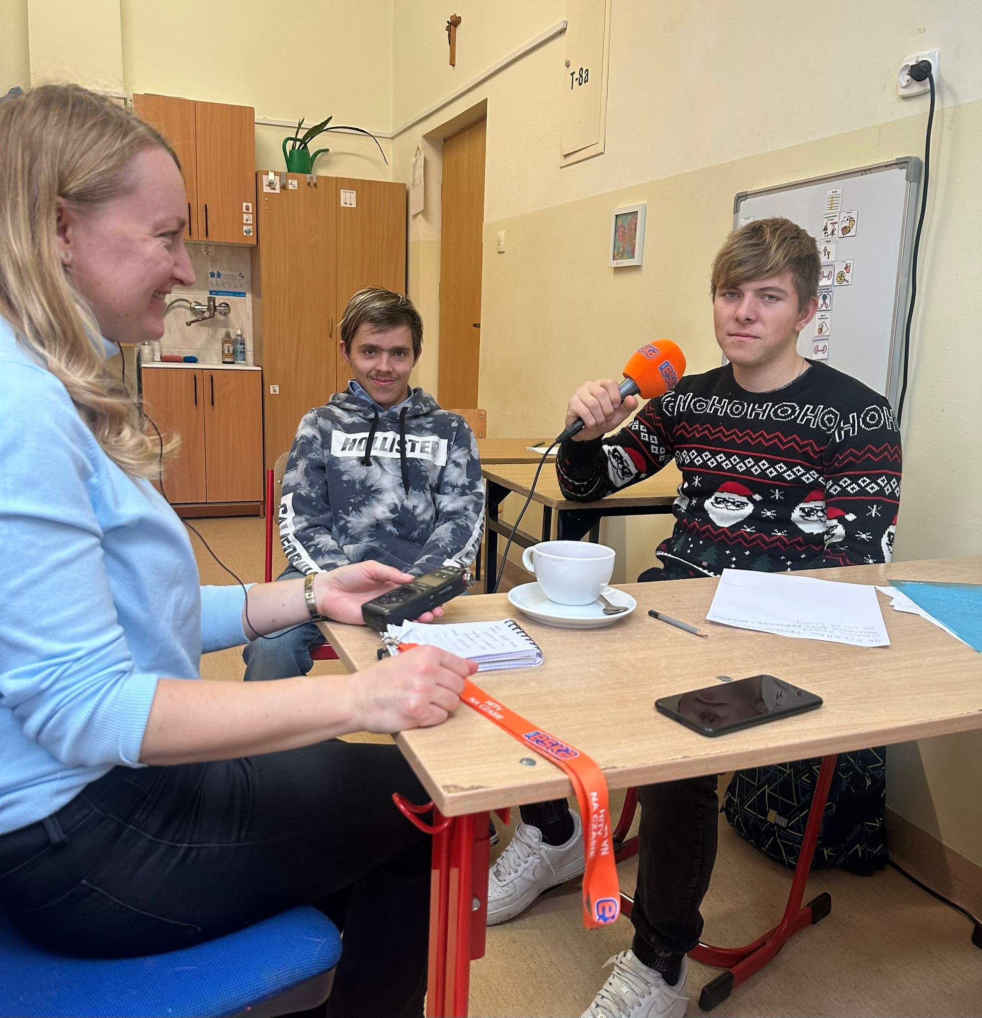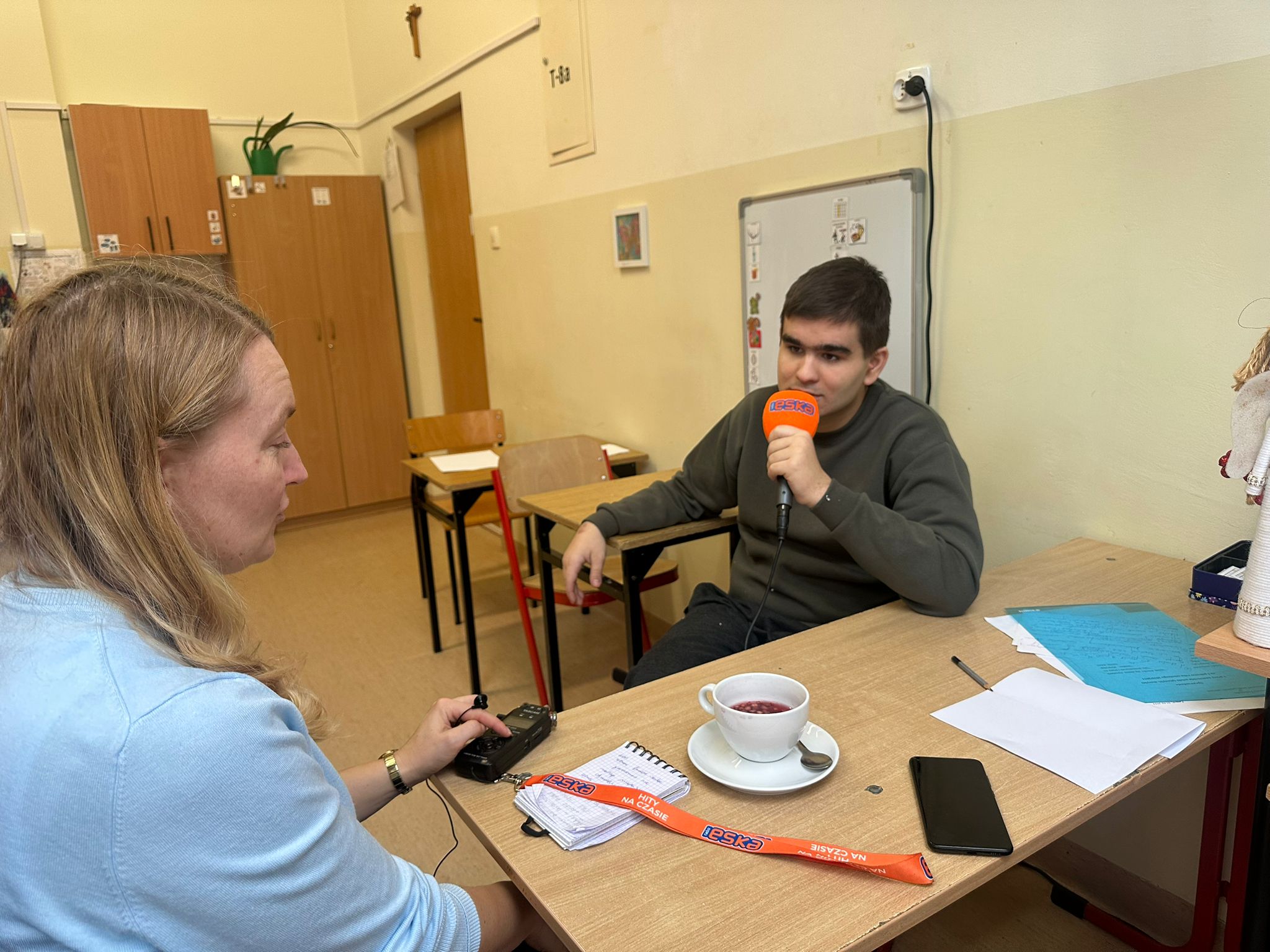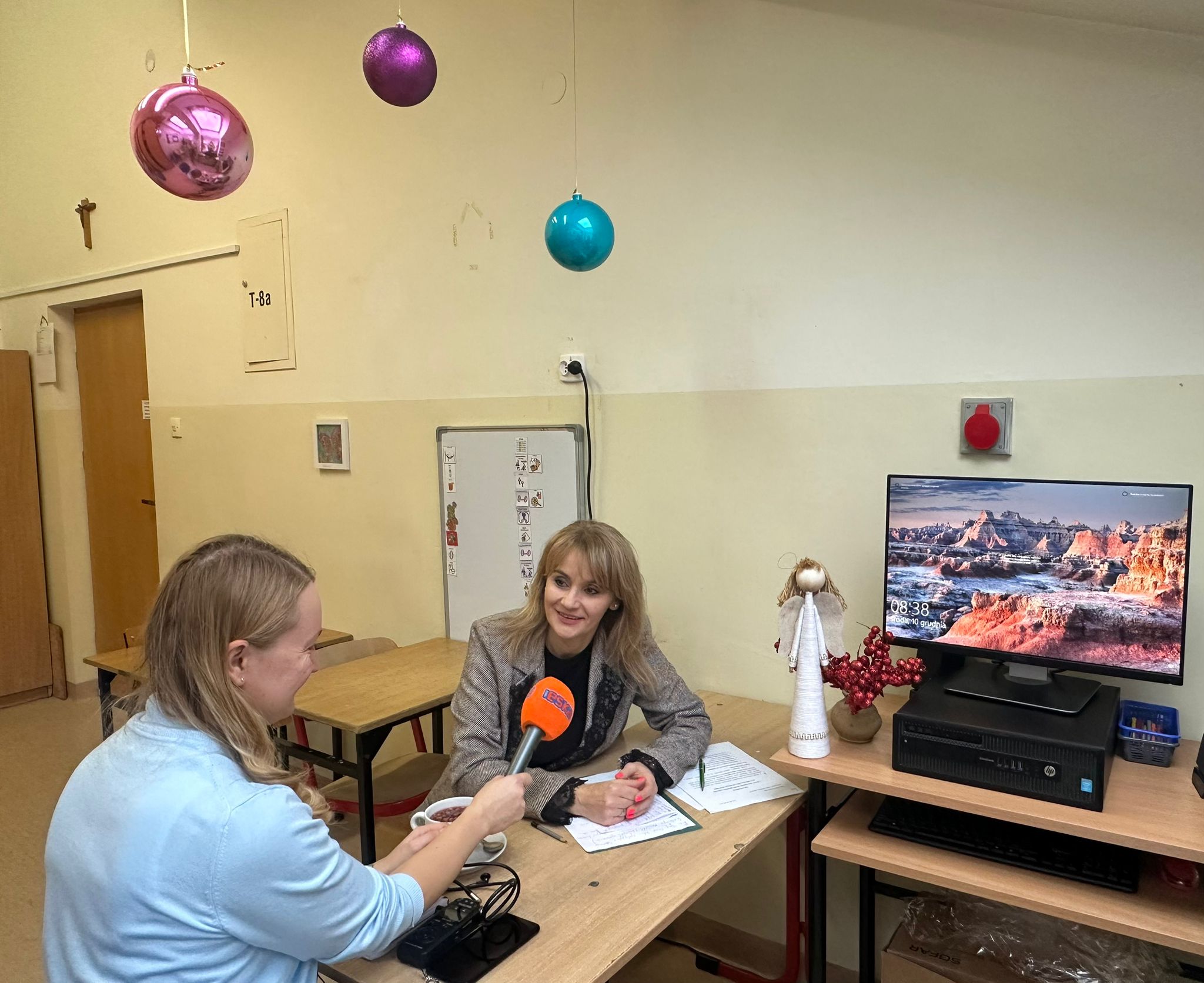 W dniu 10 grudnia 2025 r uczniowie klas 1Bs oraz 2Bs SPdP wzięli udział w nagraniu radiowym, promującym zbliżający się w naszym Ośrodku kiermasz bożonarodzeniowy „Gwiazdka Dzieciom”. Przypatrując się pracy p.Wioletty Sawa - redaktor Radia Eska Zamość mieli możliwość poznania pracy radiowca. Uczniowie wzięli udział w wywiadzie i nagraniu wstępnym. Spotkanie było okazją do zrozumienia jak ważną rolę pełni głos w radiu.