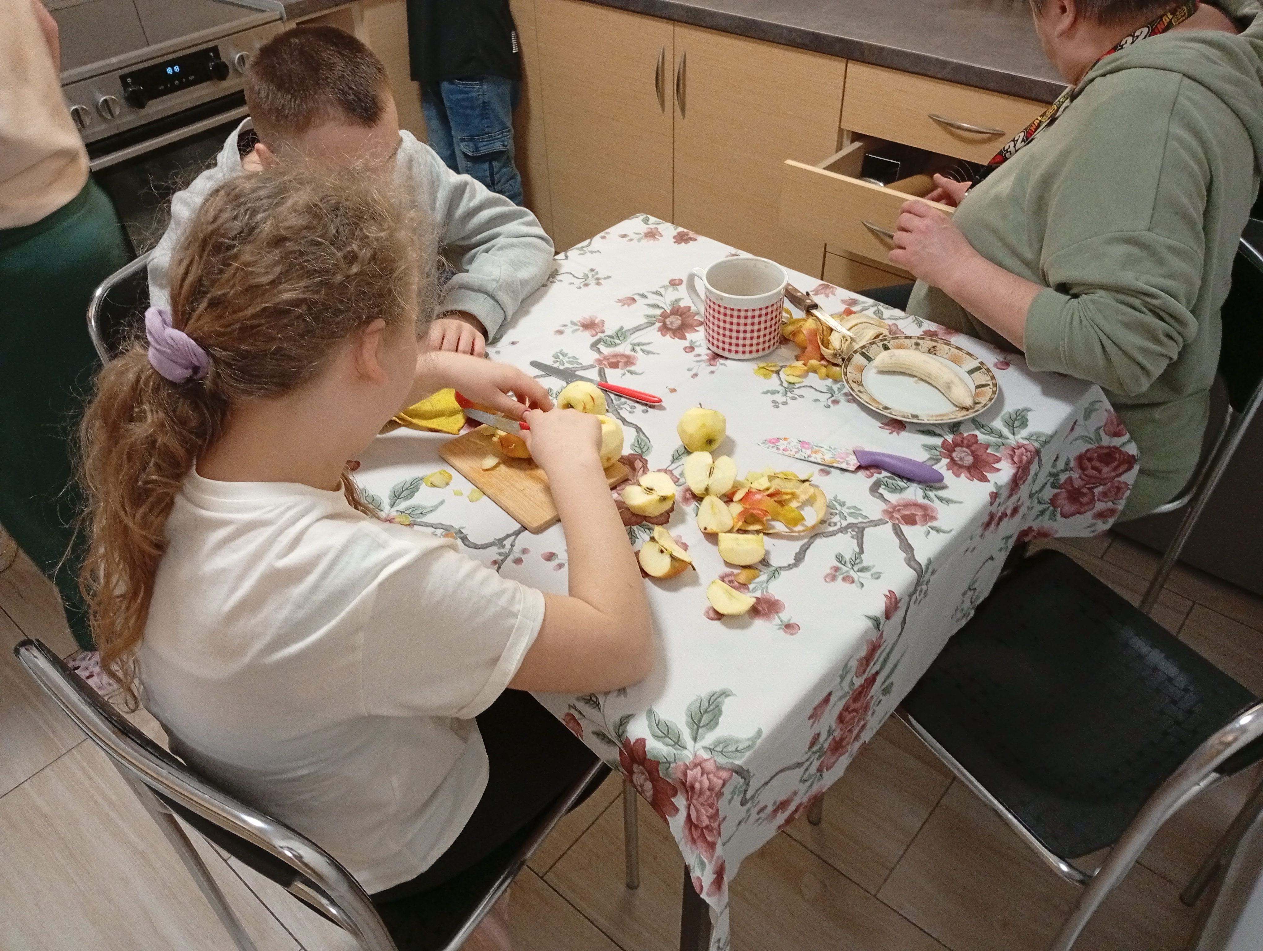 Zajęcia były doskonałą okazją do nauki podstaw gotowania, rozwijania samodzielności oraz współpracy w grupie. Wychowankowie z zaangażowaniem wykonywali kolejne etapy przygotowań, dbając o estetykę i smak swoich wypieków.