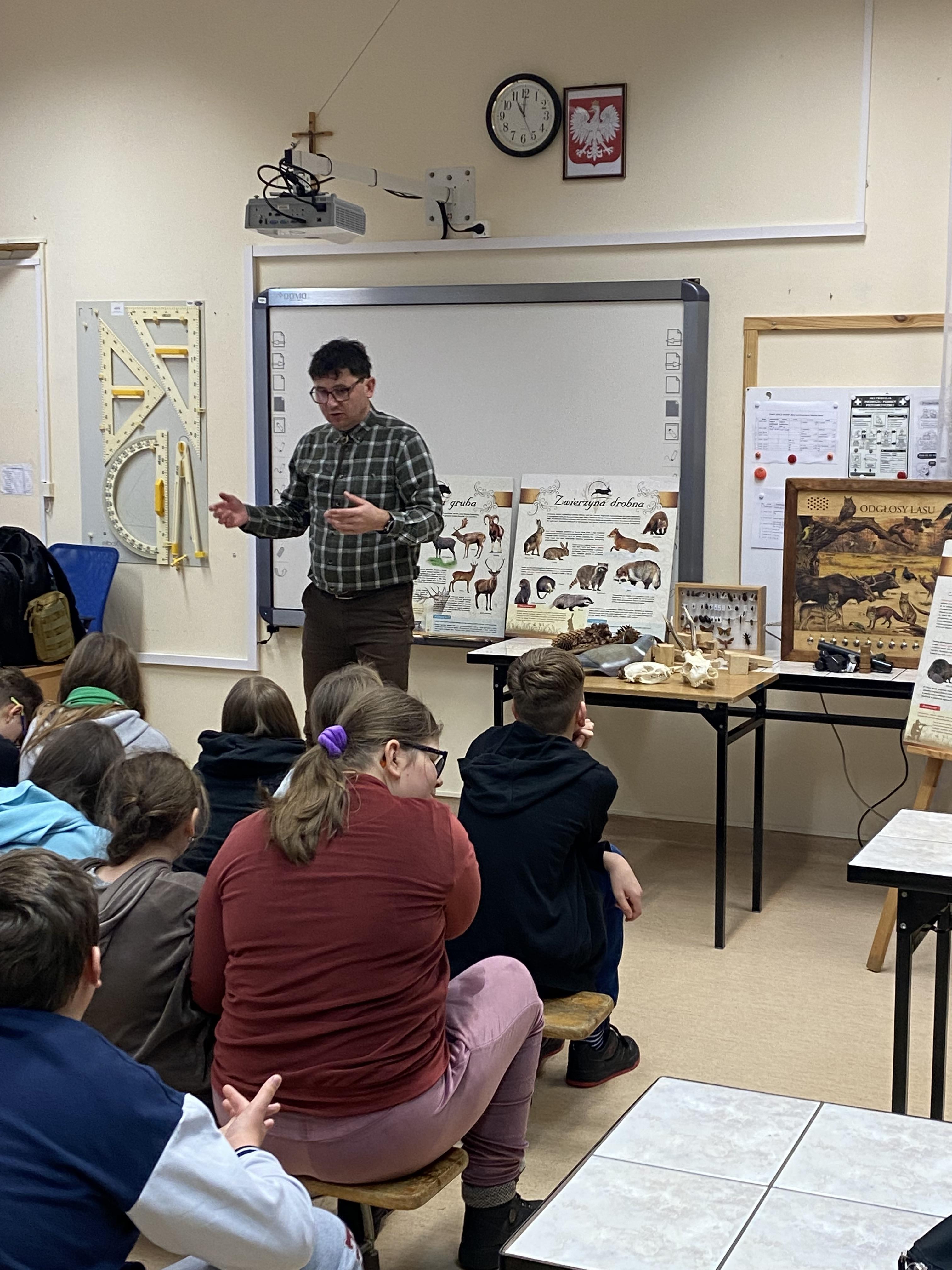 W dniu 09.12.2025r. dla uczniów w naszym Ośrodku odbyło się spotkanie edukacyjne pt. "Zwierzęta lasu" poprowadzone przez edukatora z Polskiego Związku Łowieckiego, myśliwego o pseudonimie „Drzewiasty".