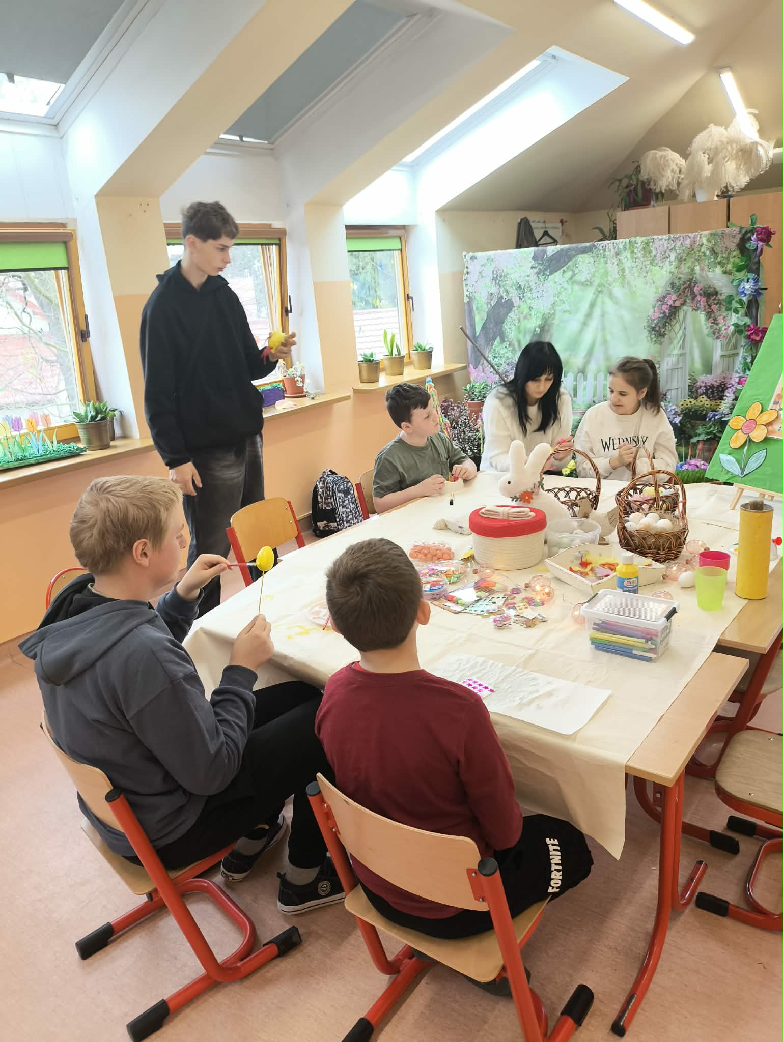 Warsztaty były doskonałą okazją do rozwijania kreatywności i wyobraźni, a także do integracji z rówieśnikami. Wspólna praca sprzyjała budowaniu relacji oraz wzajemnemu inspirowaniu się pomysłami. Dodatkowo uczestnicy mieli możliwość poznania i utrwalenia tradycji związanych ze Świętami Wielkanocnymi.