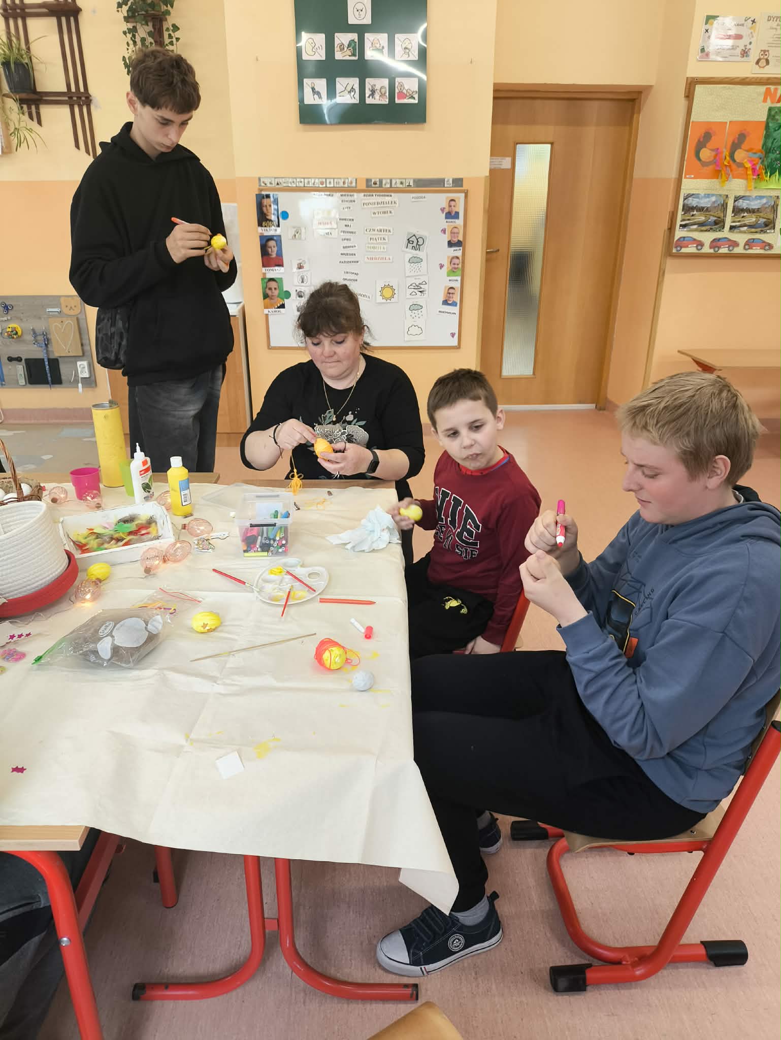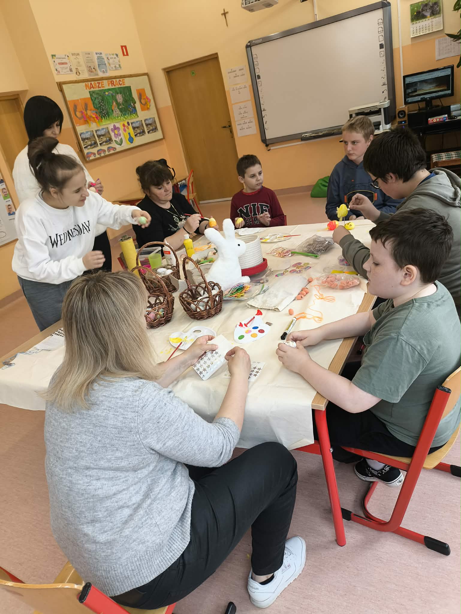 W przedświątecznej, radosnej atmosferze uczniowie klasy 1A, 7D oraz 8D wzięli udział w wielkanocnych warsztatach plastycznych. Podczas zajęć uczniowie mieli okazję wykonać pisanki różnorodnymi technikami, wykorzystując bogaty wachlarz materiałów.