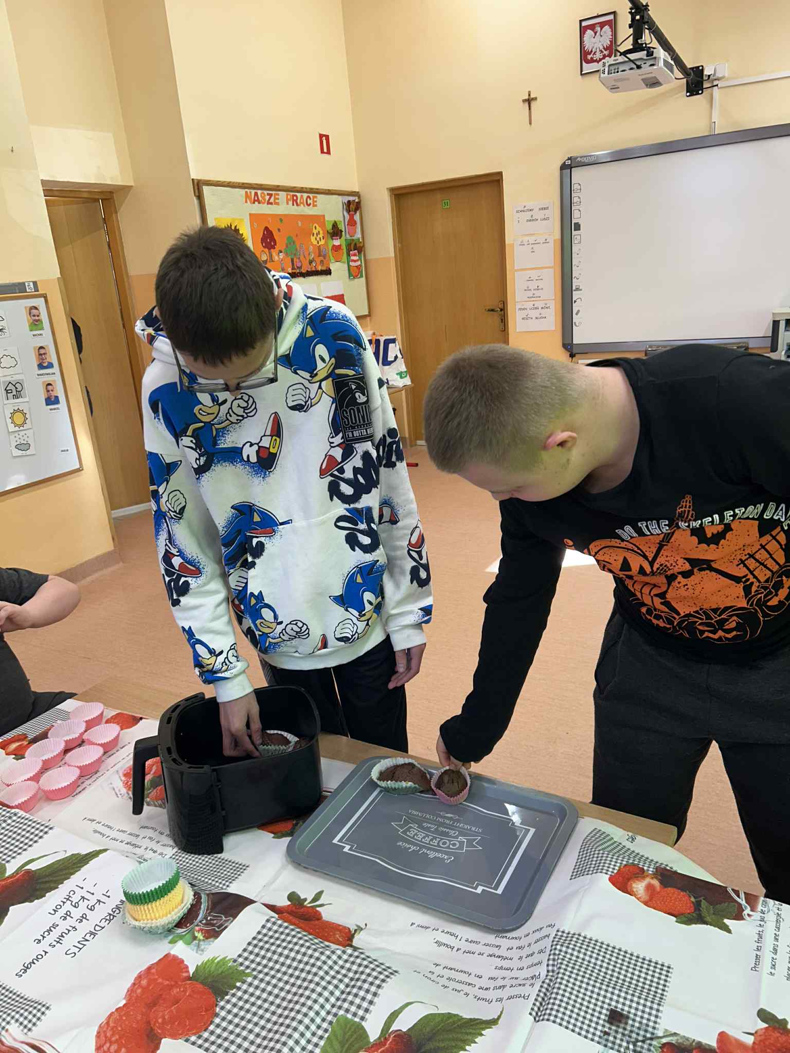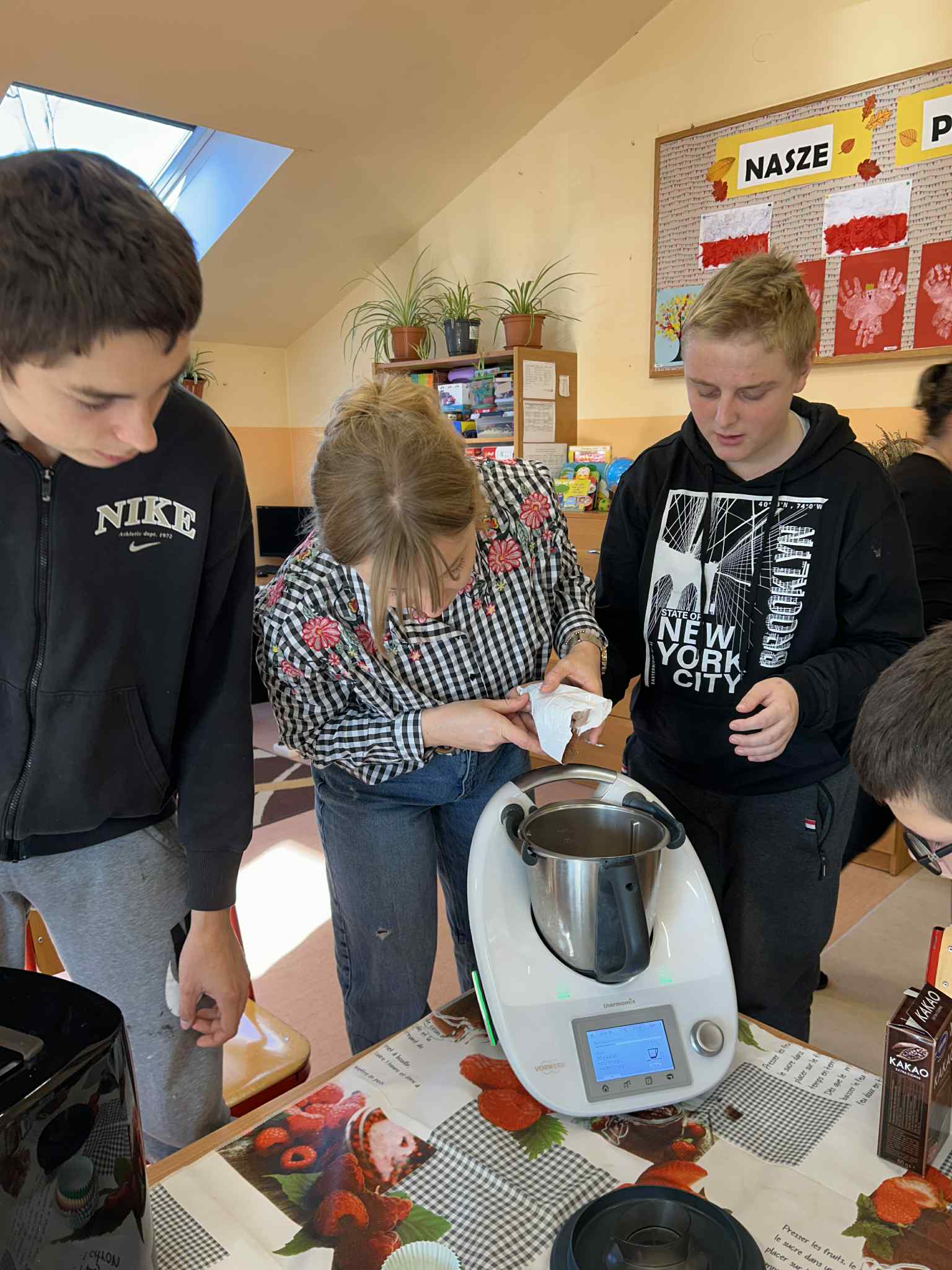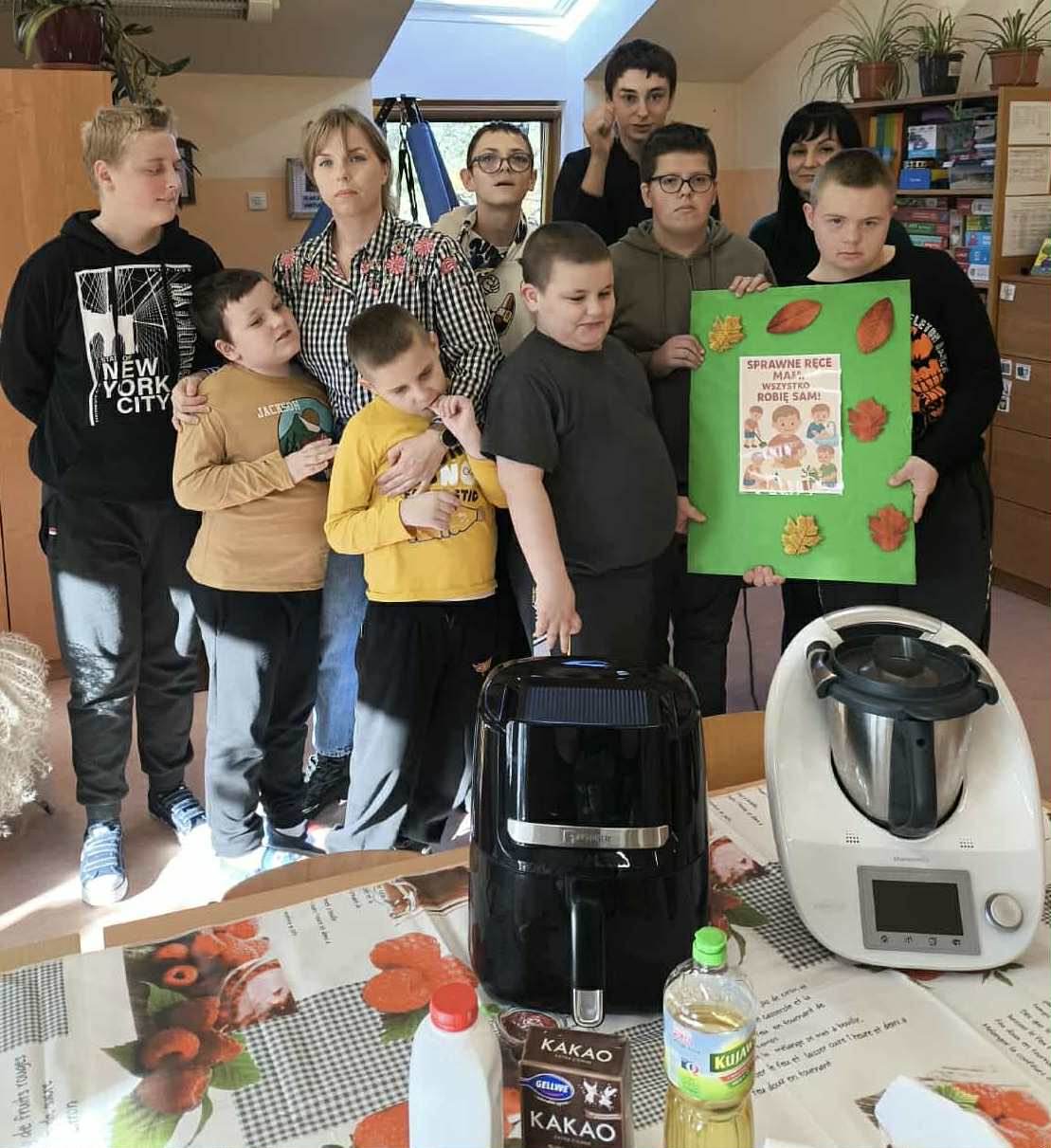W naszej placówce odbyły się kolejne zajęcia w ramach realizacji programu własnego „Sprawne ręce mam, wszystko robię sam”. Tym razem uczniowie wcielili się w rolę młodych kucharzy i z ogromnym zaangażowaniem przygotowali korzenne muffinki, ucząc się przy tym samodzielności oraz współpracy. Podczas zajęć mieli także okazję poznać działanie nowoczesnych urządzeń AGD – Thermomixa oraz Airfryera. Z zainteresowaniem obserwowali ich funkcje, a następnie wykorzystywali je w praktyce, rozwijając swoje umiejętności kulinarne i techniczne.