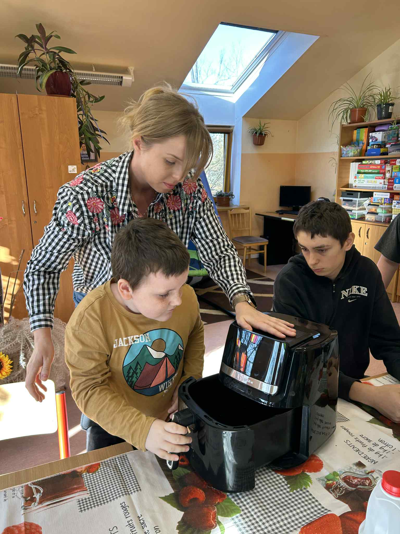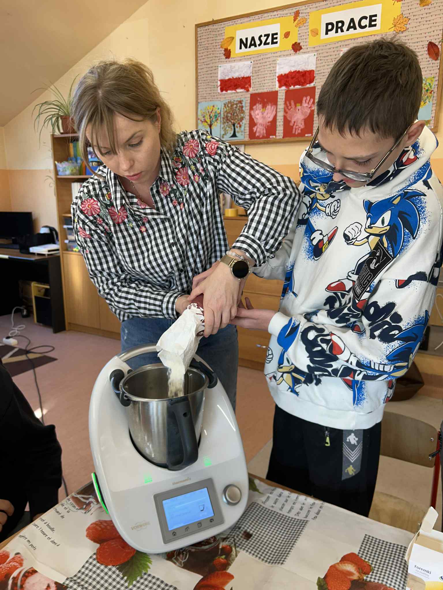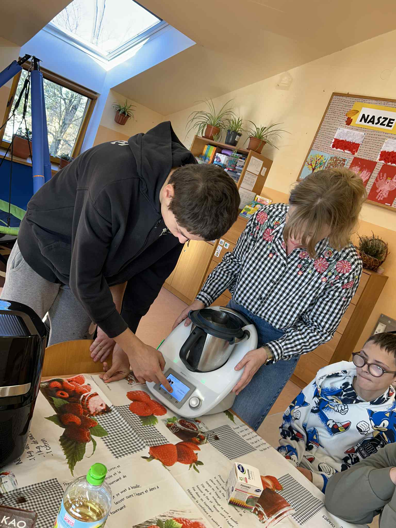 W naszej placówce odbyły się kolejne zajęcia w ramach realizacji programu własnego „Sprawne ręce mam, wszystko robię sam”. Tym razem uczniowie wcielili się w rolę młodych kucharzy i z ogromnym zaangażowaniem przygotowali korzenne muffinki, ucząc się przy tym samodzielności oraz współpracy. Podczas zajęć mieli także okazję poznać działanie nowoczesnych urządzeń AGD – Thermomixa oraz Airfryera. Z zainteresowaniem obserwowali ich funkcje, a następnie wykorzystywali je w praktyce, rozwijając swoje umiejętności kulinarne i techniczne.
