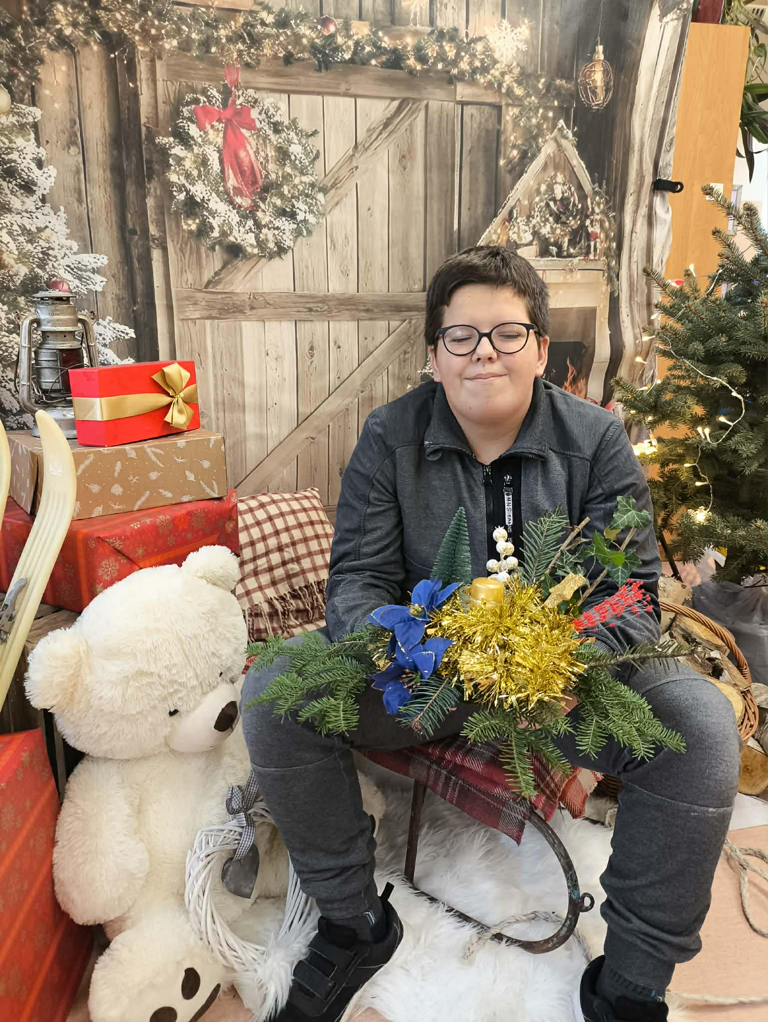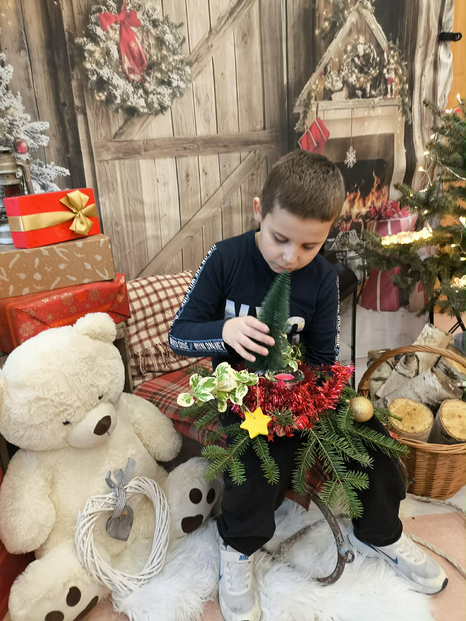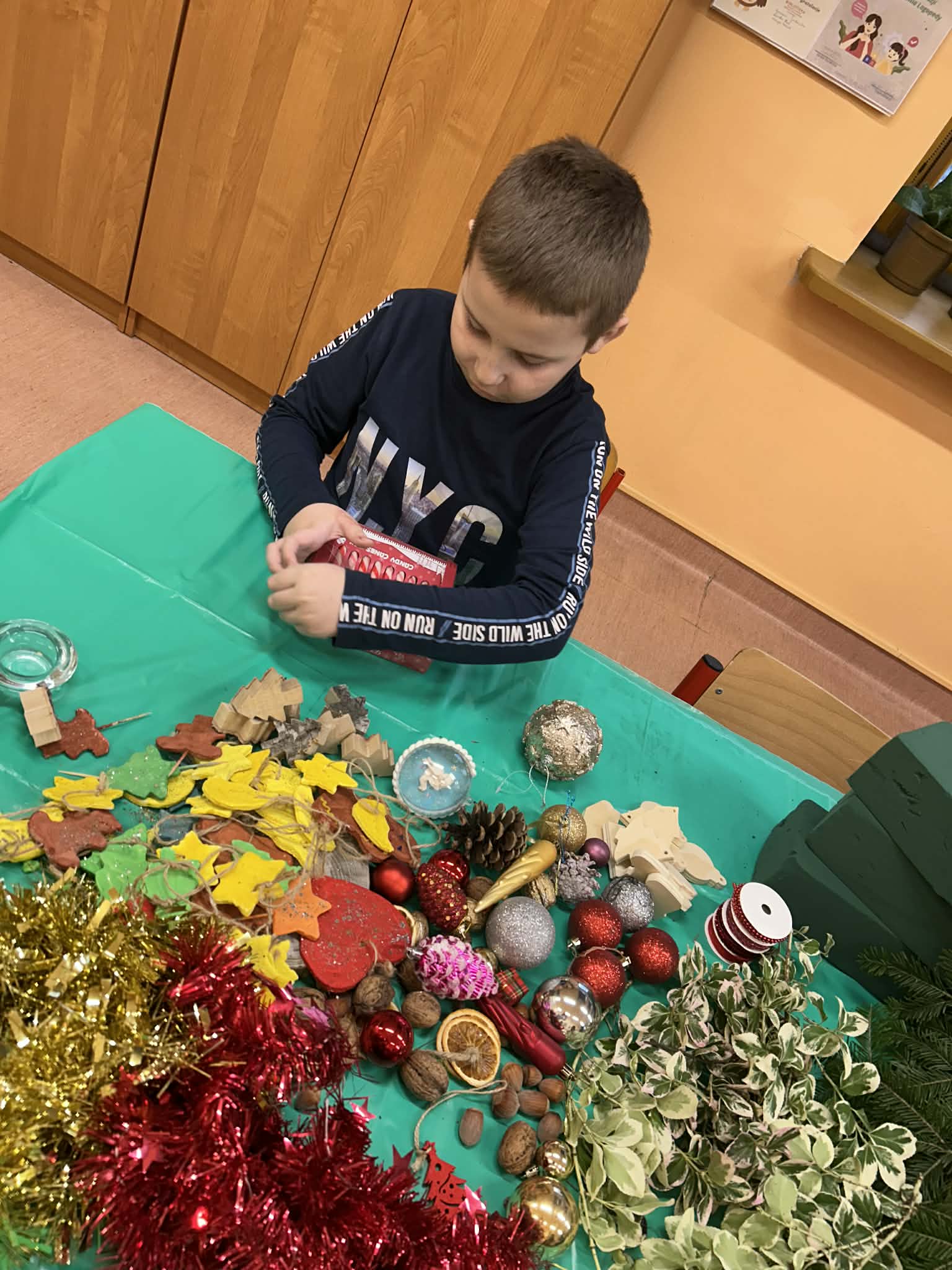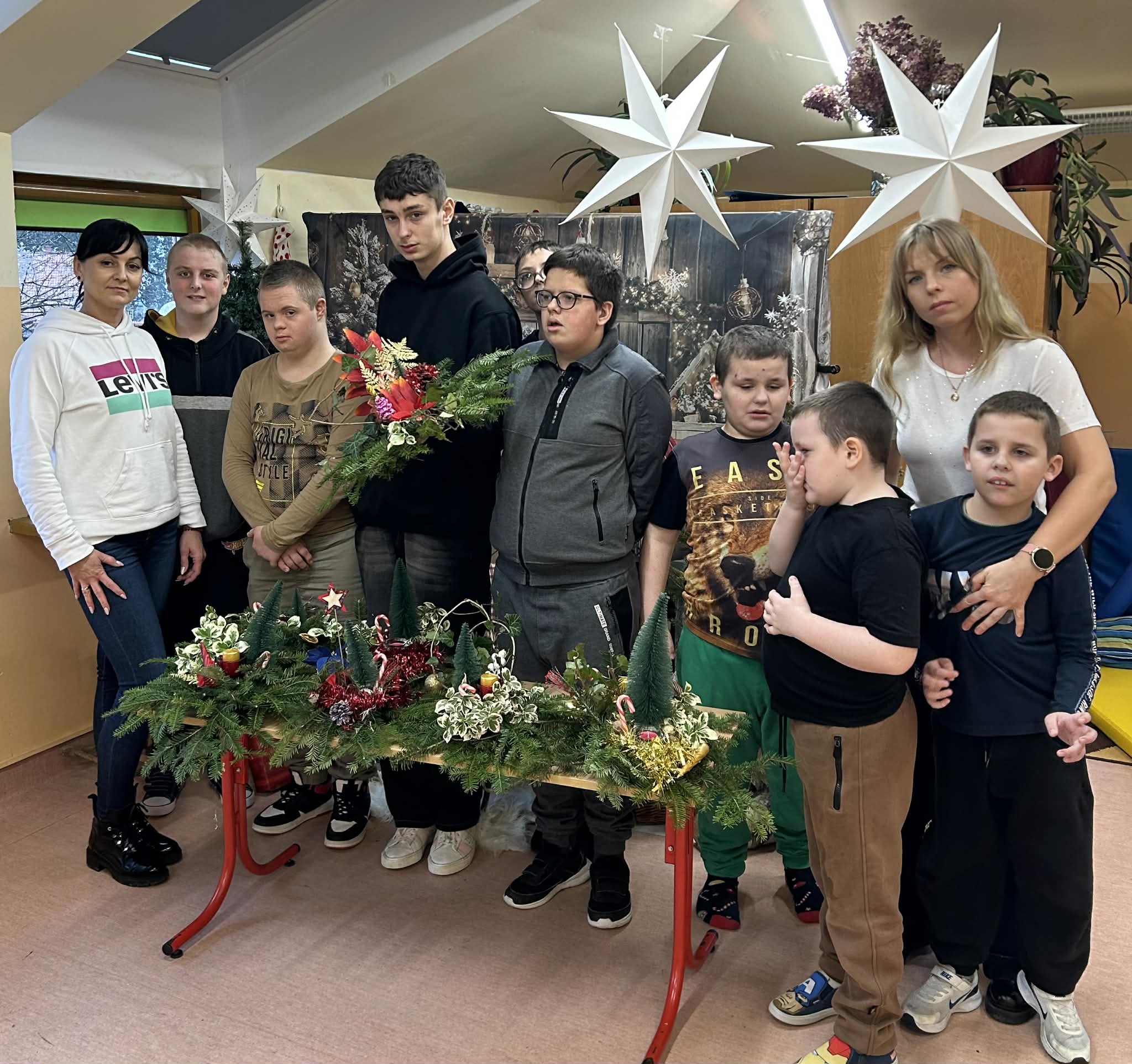 W naszej placówce odbyły się kolejne zajęcia w ramach programu własnego „Sprawne ręce mam, wszystko zrobię sam”. Tym razem uczniowie przenieśli się w świąteczny nastrój, tworząc własnoręcznie bożonarodzeniowe stroiki. Z ogromnym zapałem dobierali gałązki, ozdoby i aromatyczne dodatki, rozwijając swoją kreatywność, precyzję oraz poczucie estetyki.