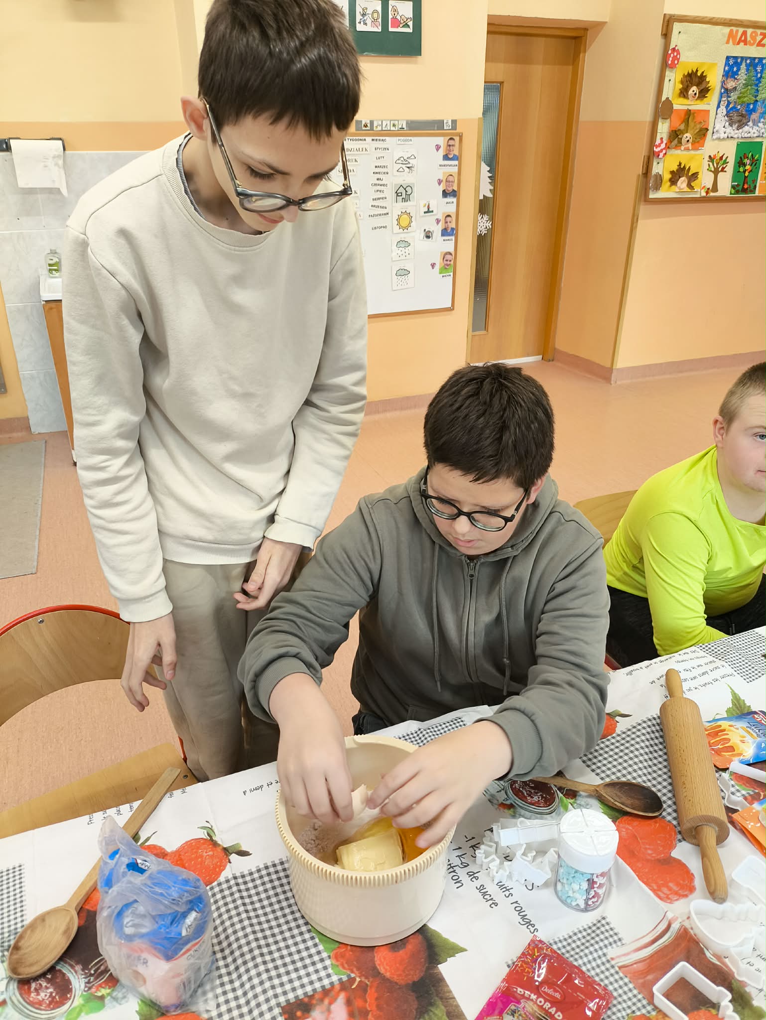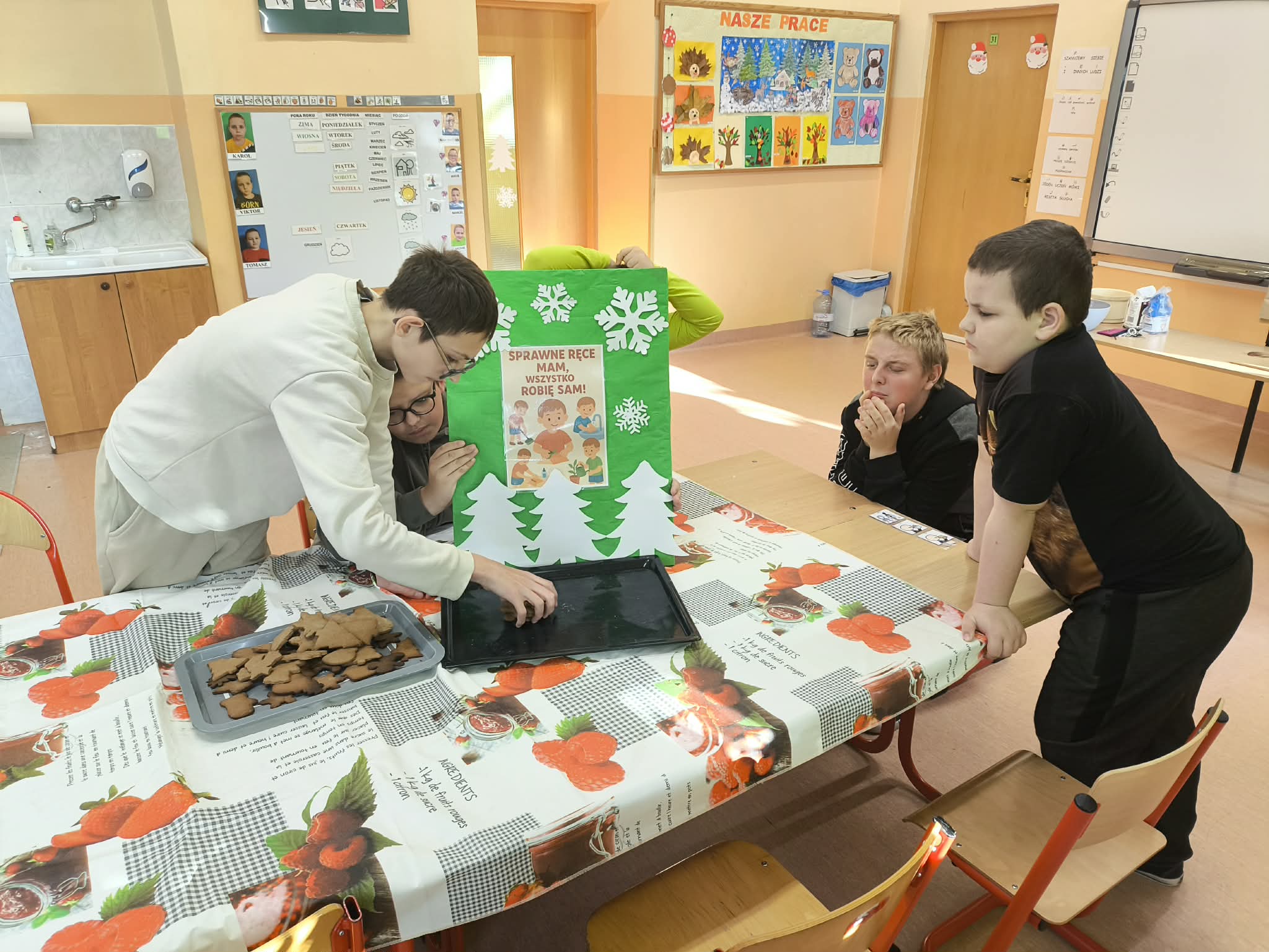 Podczas zajęć uczniowie samodzielnie przygotowali i upiekli świąteczne pierniczki, wkładając w swoją pracę nie tylko zdobytą wiedzę i umiejętności manualne, ale przede wszystkim serce i chęć niesienia pomocy innym. Wypieki te trafiły do najuboższych osób oraz seniorów, stanowiąc słodki, świąteczny dodatek do paczek bożonarodzeniowych.