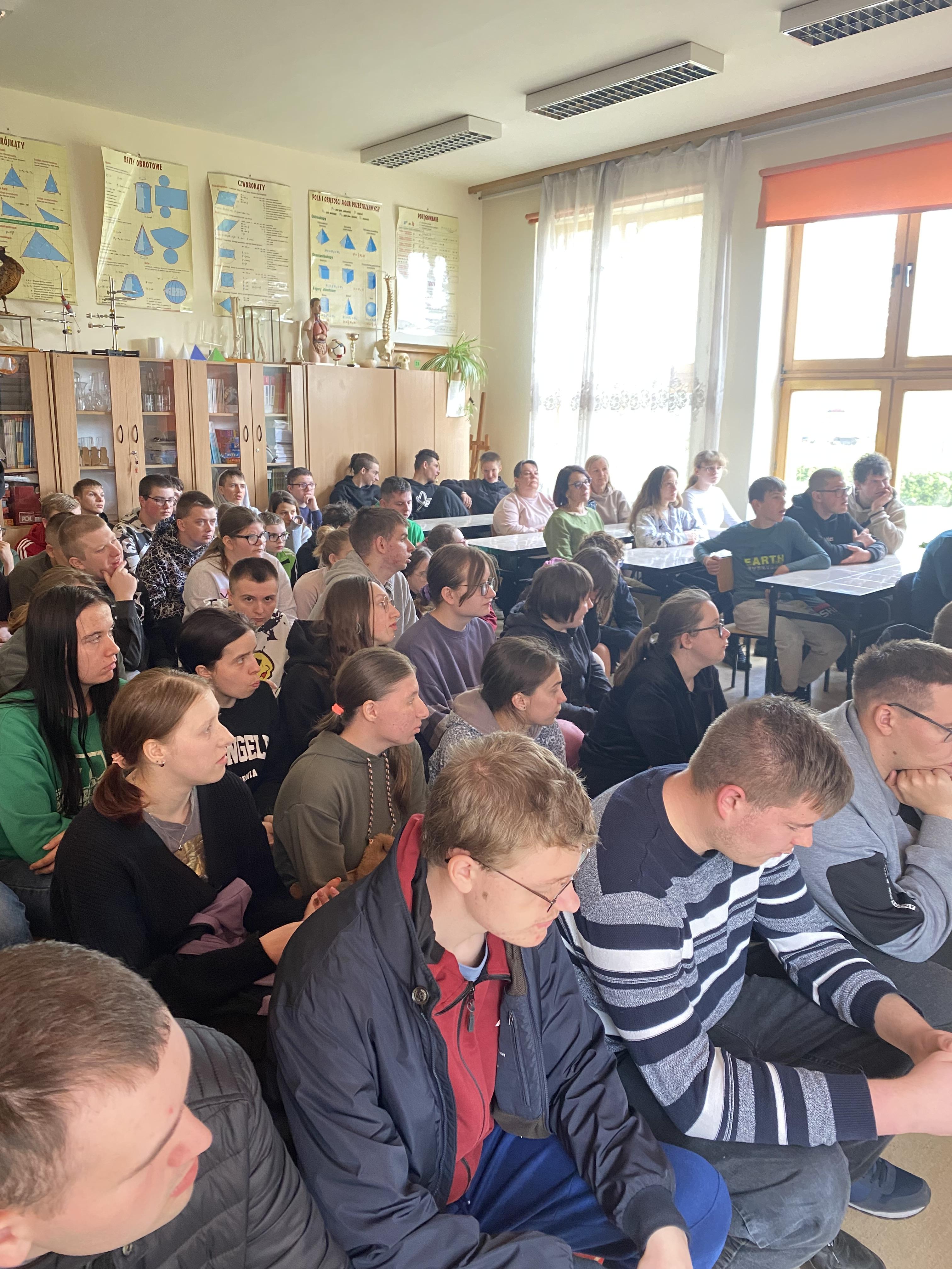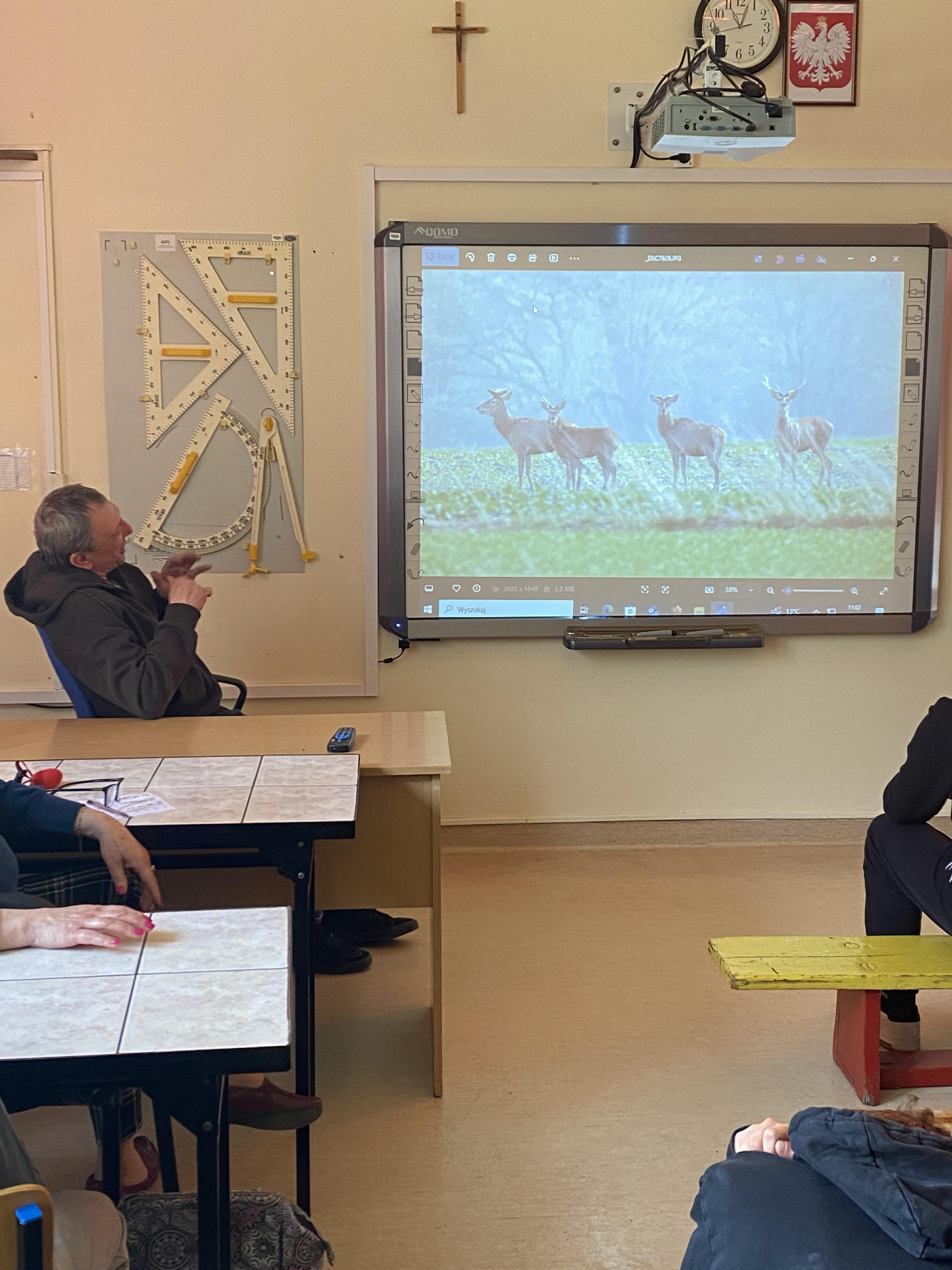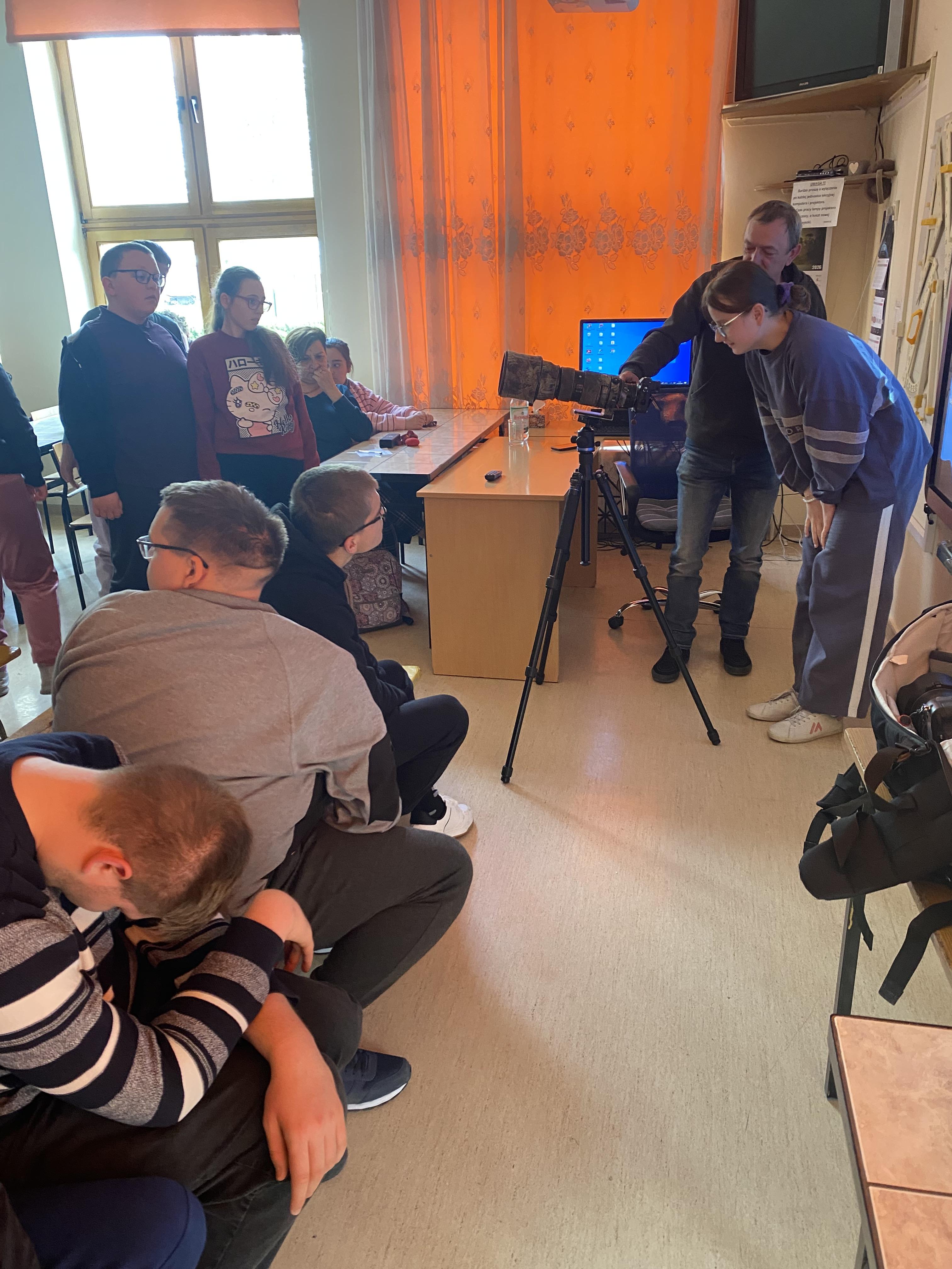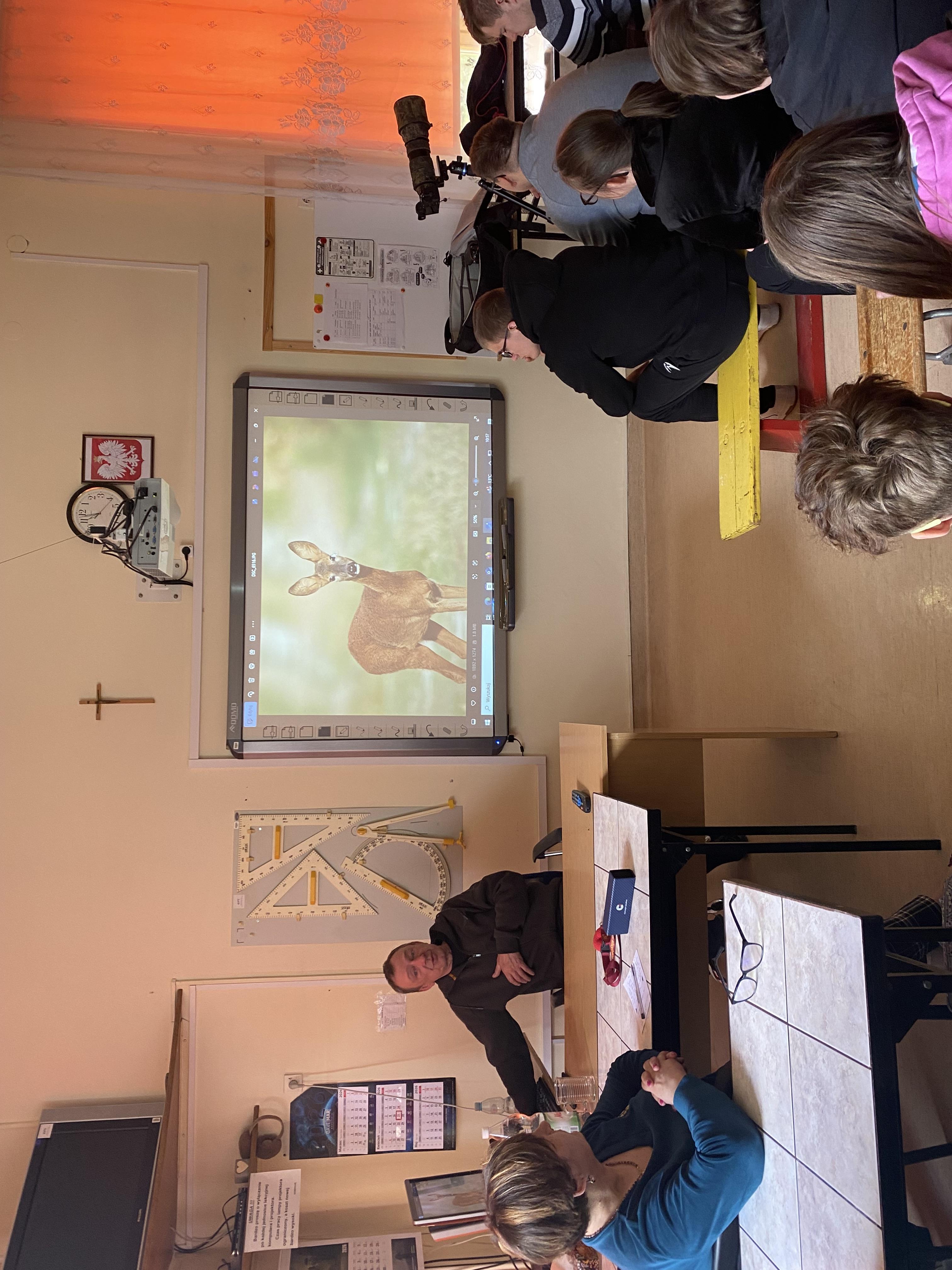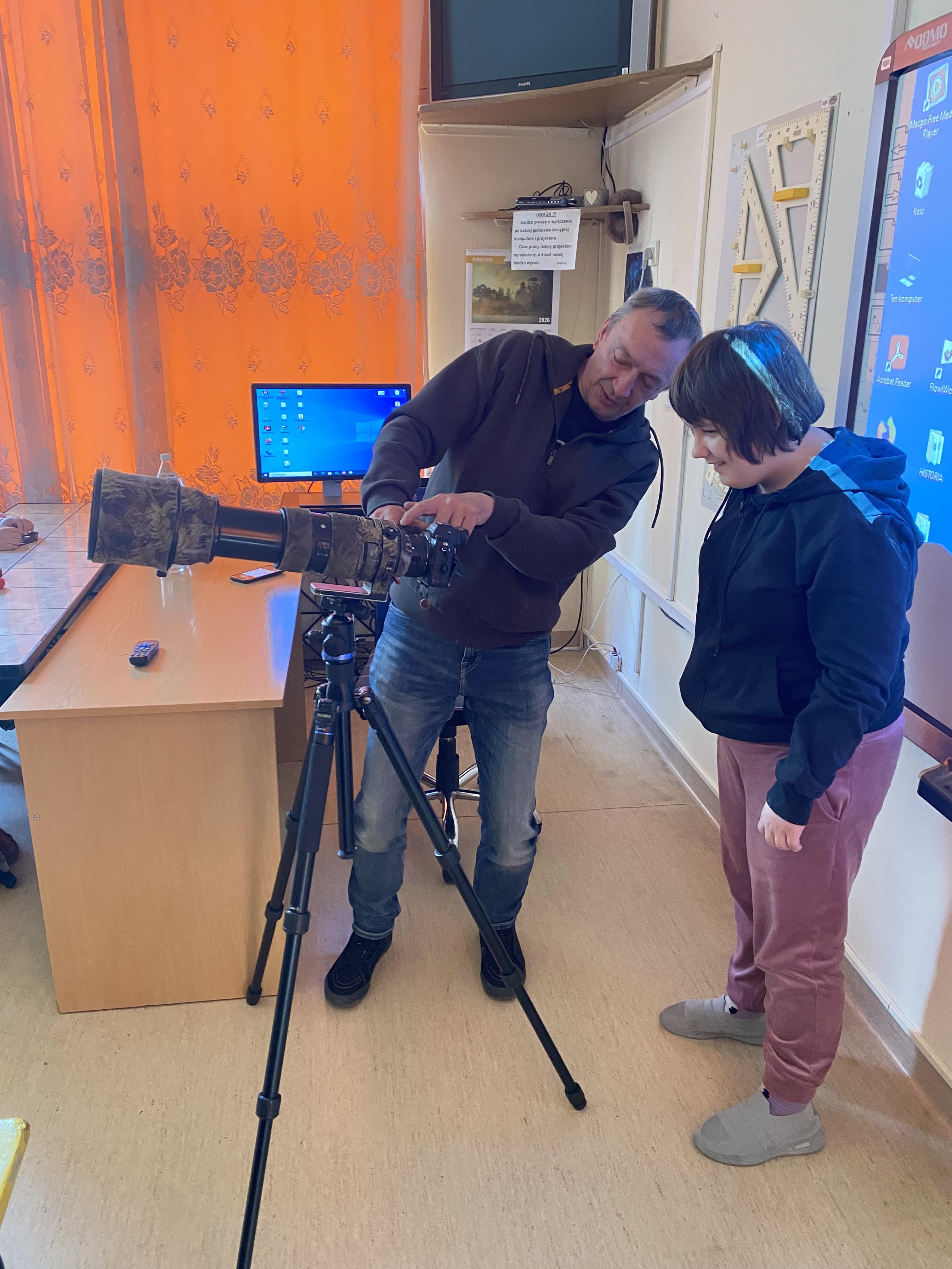 W dniu 23.04.2026 r. nasi uczniowie uczestniczyli w spotkaniu z fotografem przyrody, które zostało zorganizowane w naszym Ośrodku. Gość zaprezentował świat zwierząt i ptaków uchwycony w obiektywie, a następnie przedstawił profesjonalny sprzęt wykorzystywany do fotografowania przyrody.