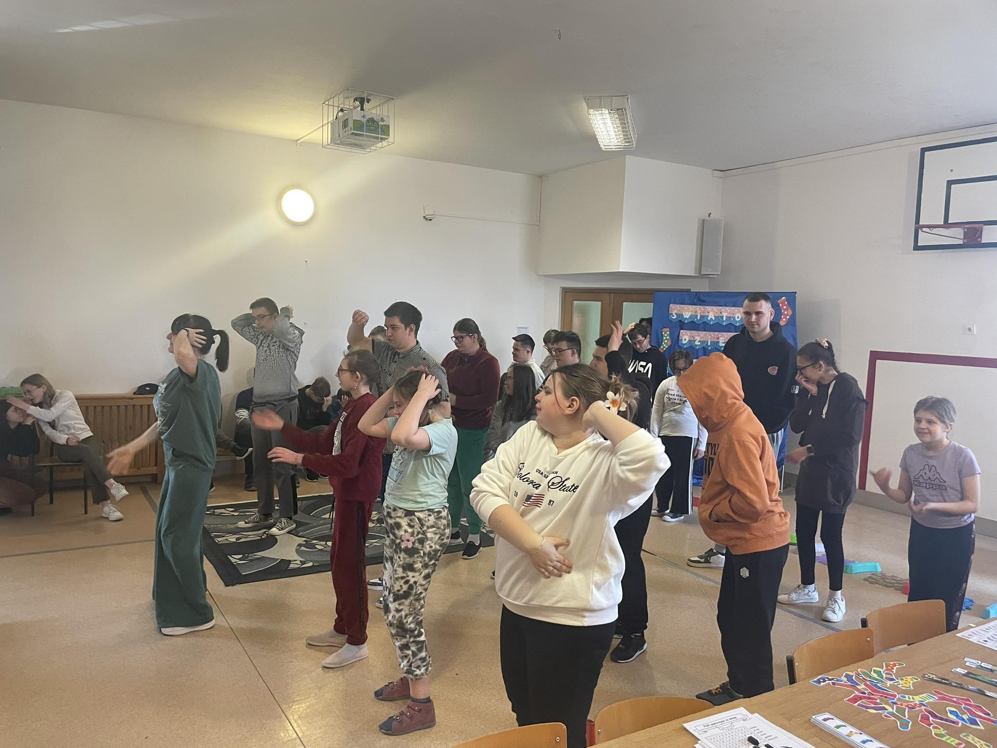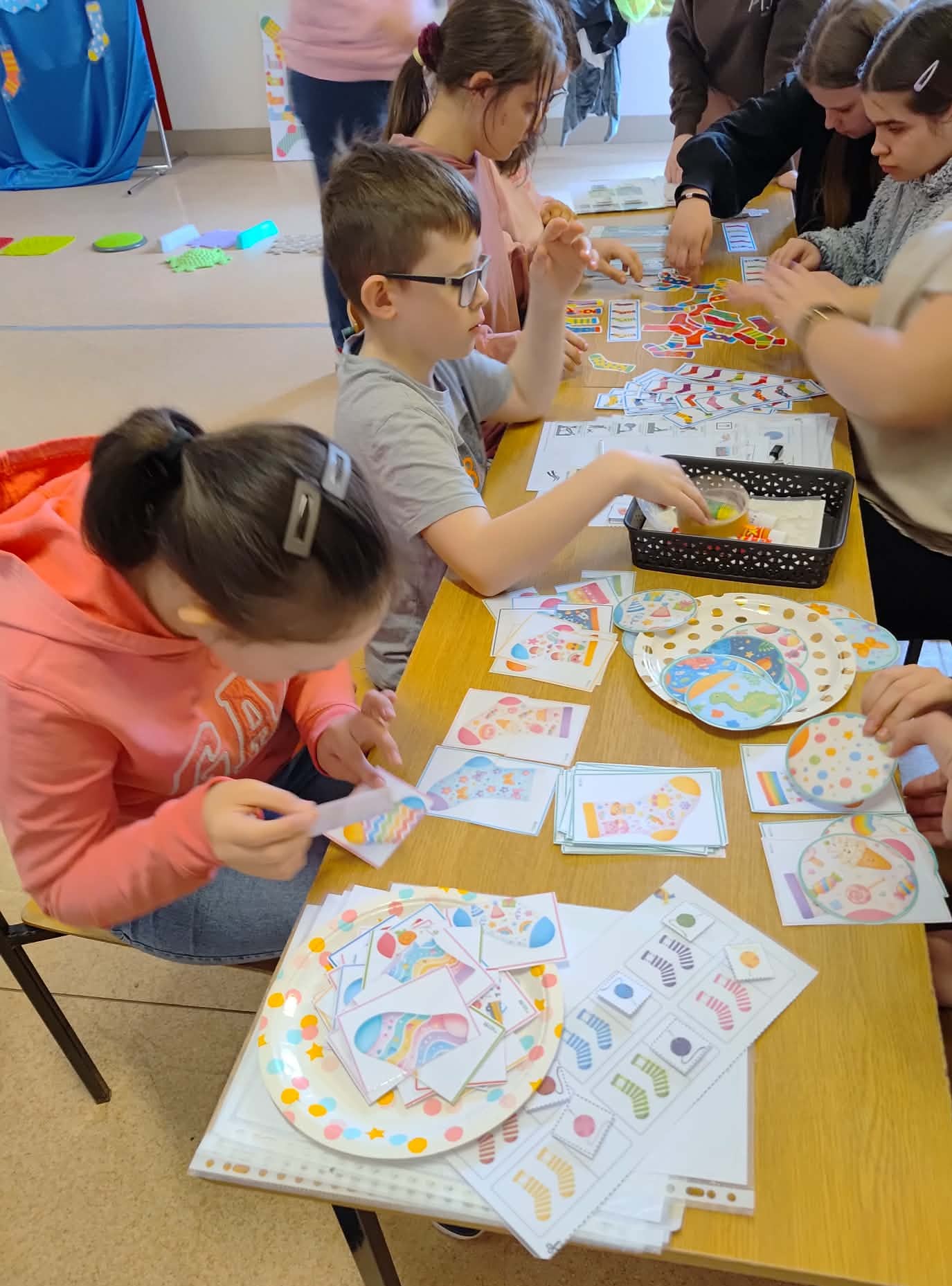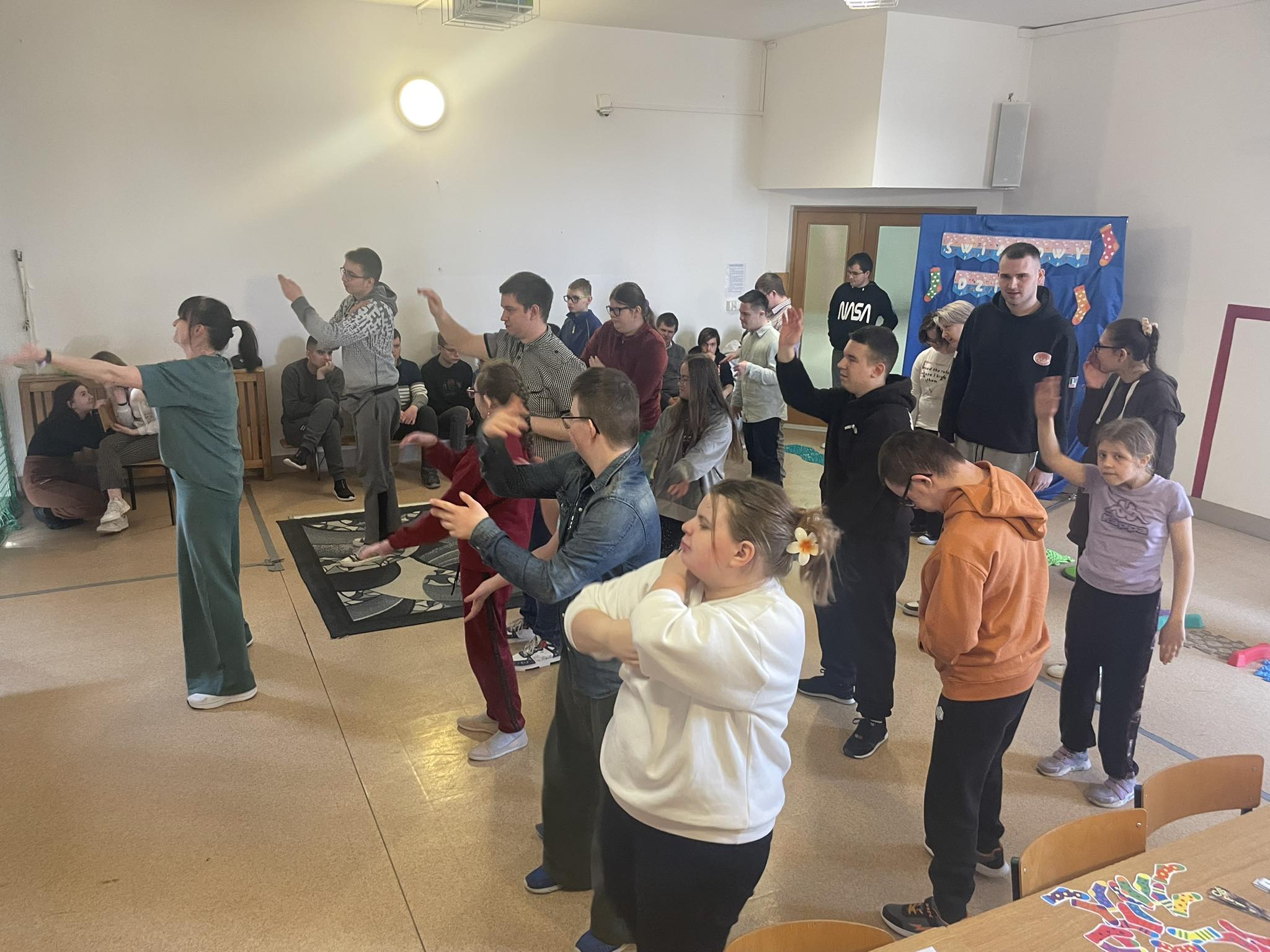 25 marca odbyły się kreatywne warsztaty zorganizowane z okazji Światowego Dnia Osób z Zespołem Downa. Dla uczestników przygotowano wiele zadań i atrakcji. Nasza bibliotekarka pani Basia Grabowska, aby przybliżyć uczniom temat warsztatów, przeczytała opowiadania pt. „Elmer” (młodsza grupa) oraz „Ula jest inna” (starsza grupa). Następnie pani Iwona Winiarczyk-Hadło przeprowadziła zabawy muzyczno-ruchowe, które cieszyły się dużym zainteresowaniem.