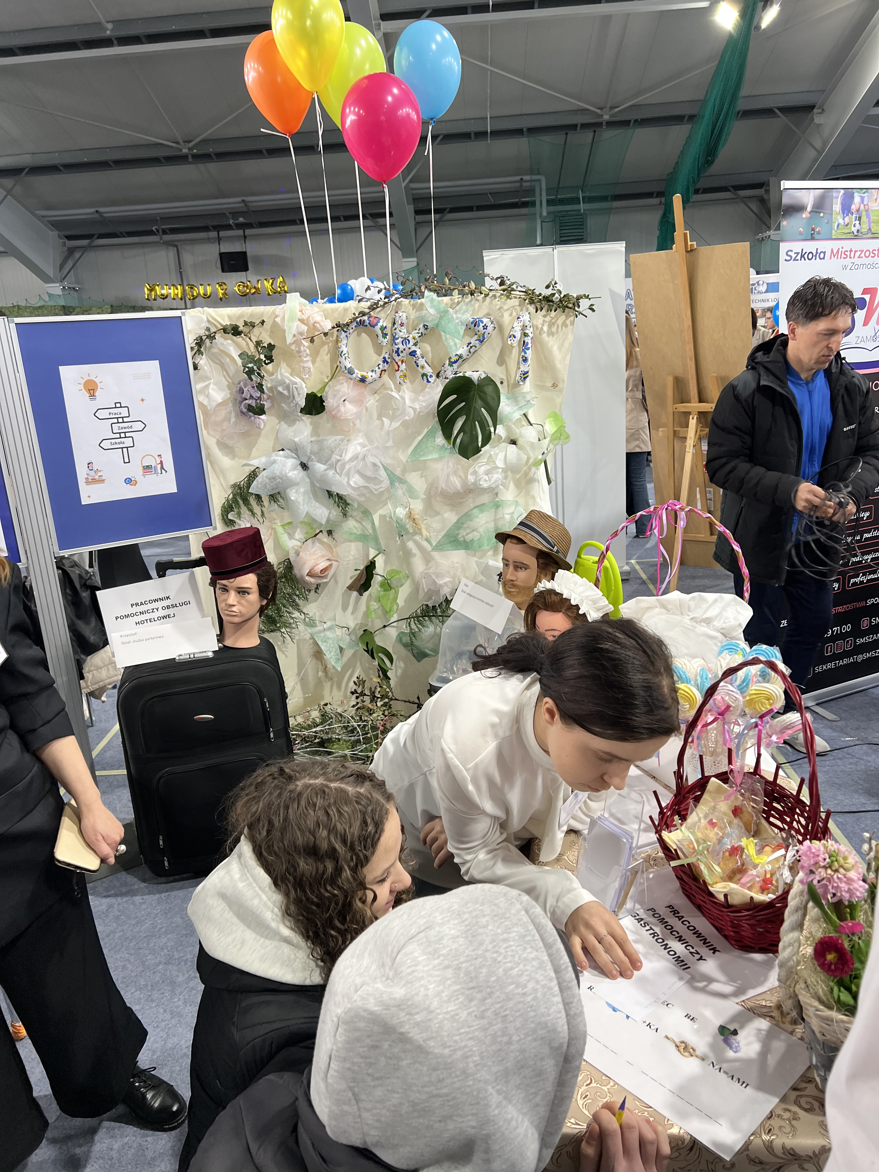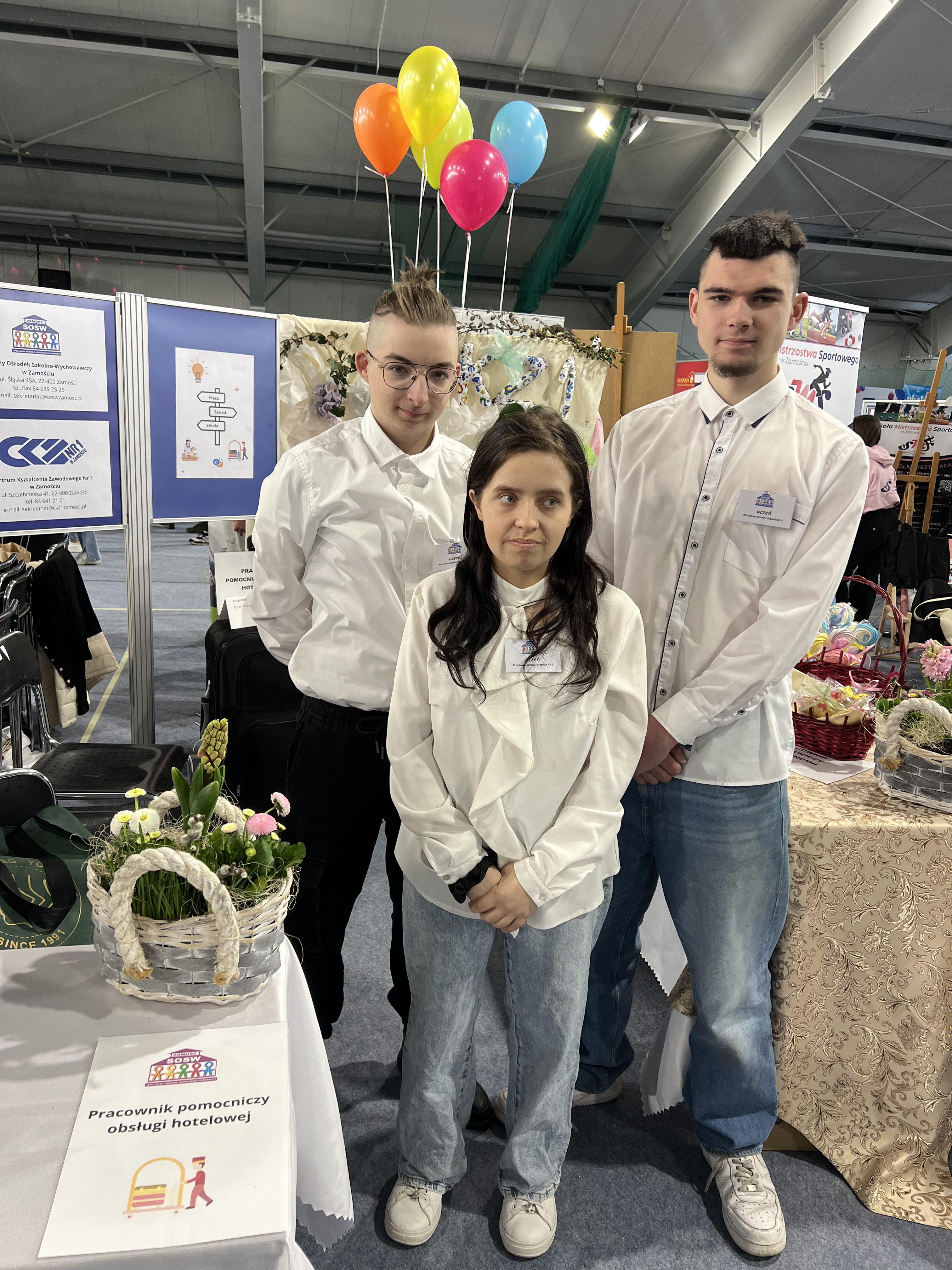 Stoisko Branżowej Szkoły I Stopnia Nr 1 Specjalnej było przygotowane przez uczniów klas 2az i 3az oraz szkolnych doradców zawodowych, we współpracy z panią Joanną Kornicką – nauczycielem zajęć praktycznych z Centrum Kształcenia Zawodowego Nr 1 w Zamościu.