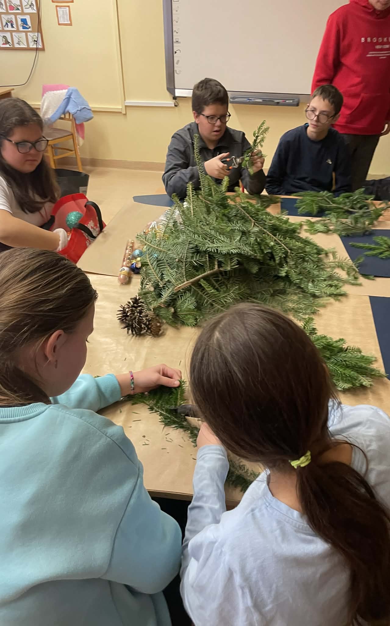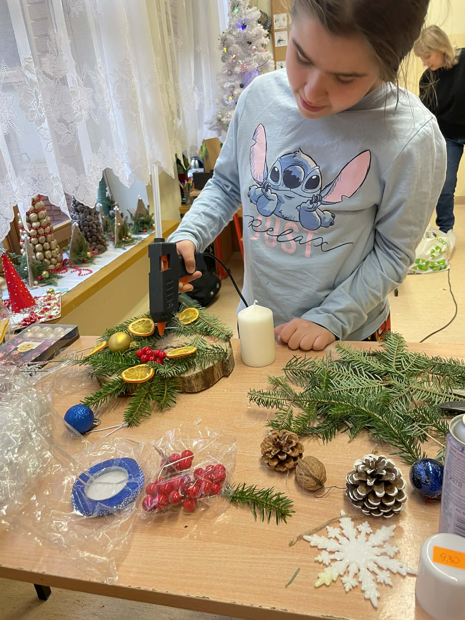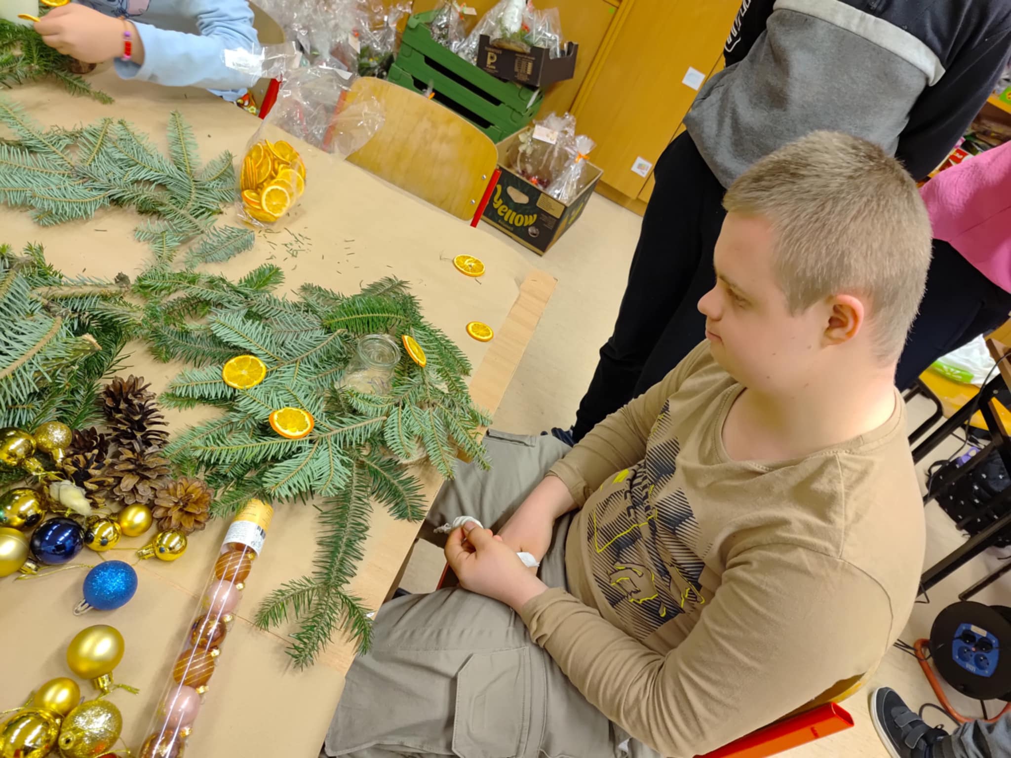 W grudniu uczniowie klas 8B oraz 7D-8D wzięli udział w kreatywnych warsztatach. Podczas zajęć przygotowali piękne stroiki na stół wigilijny oraz upiekli pyszne pierniki. Uczestniczyli także w świątecznym kiermaszu pt. „Gwiazdka dzieciom”, podczas którego dokonywali zakupów i sprzedaży.