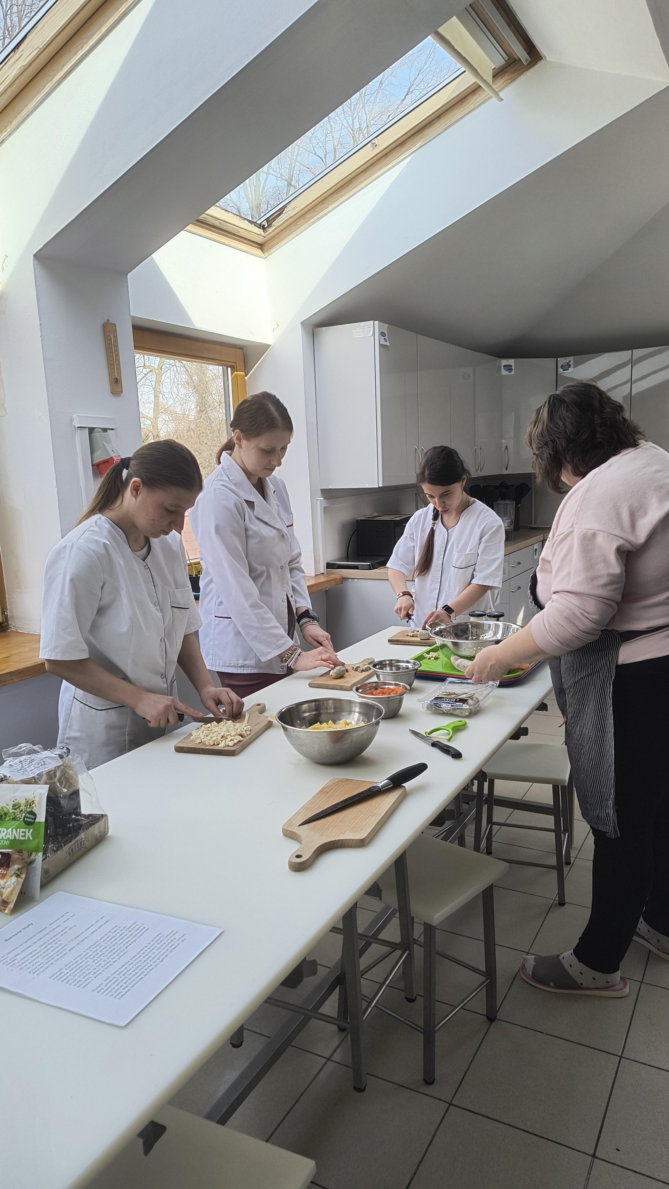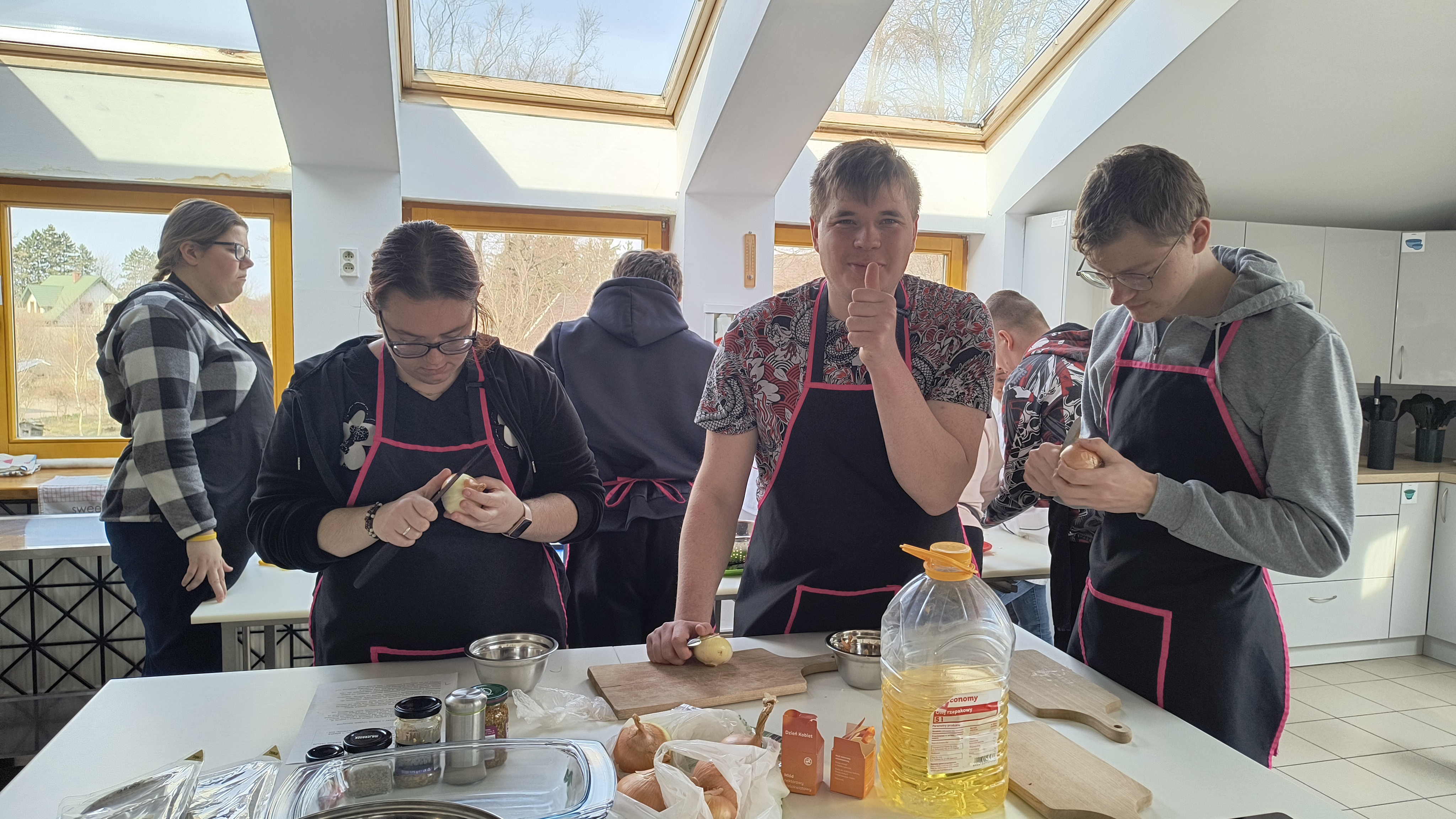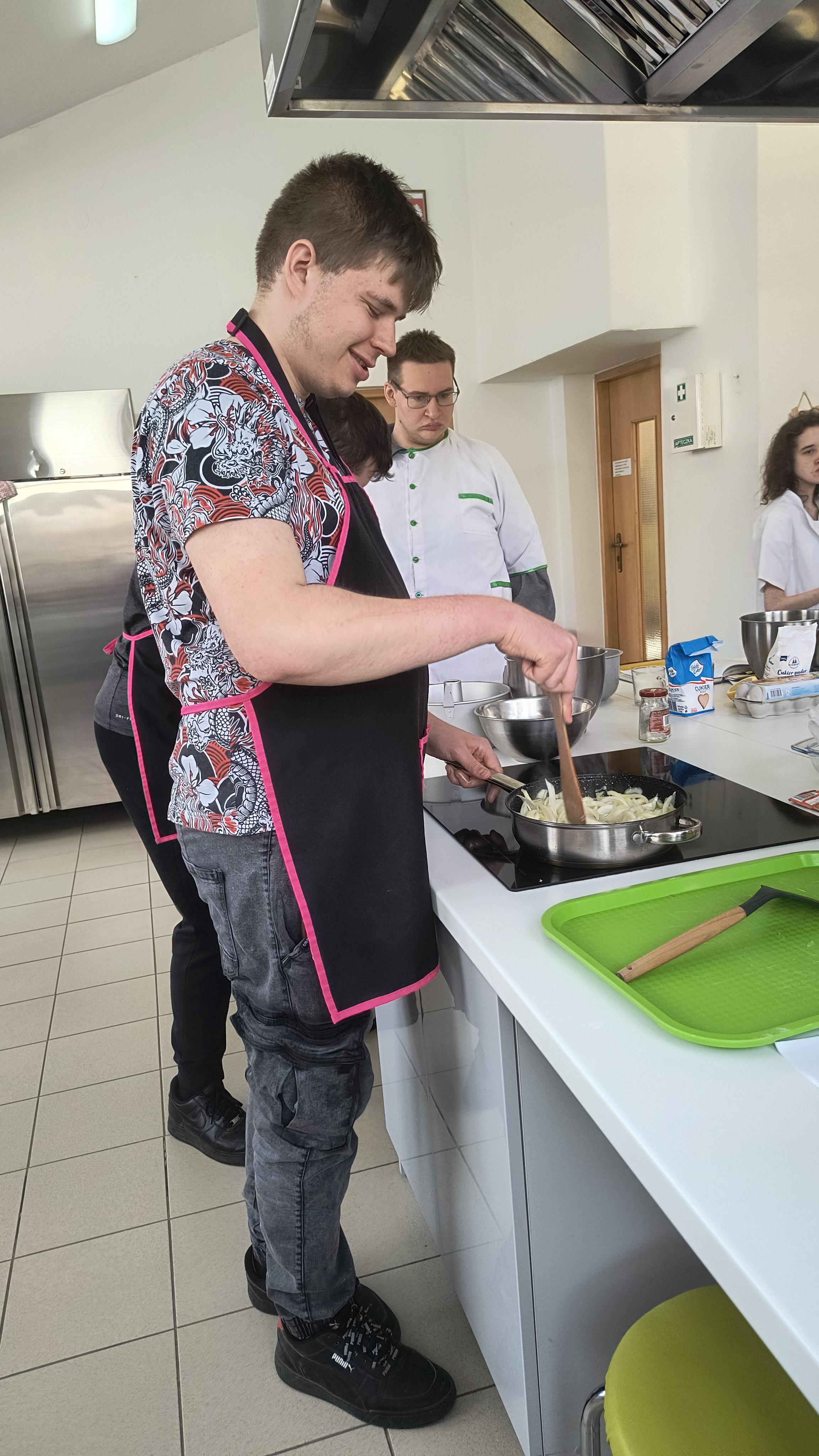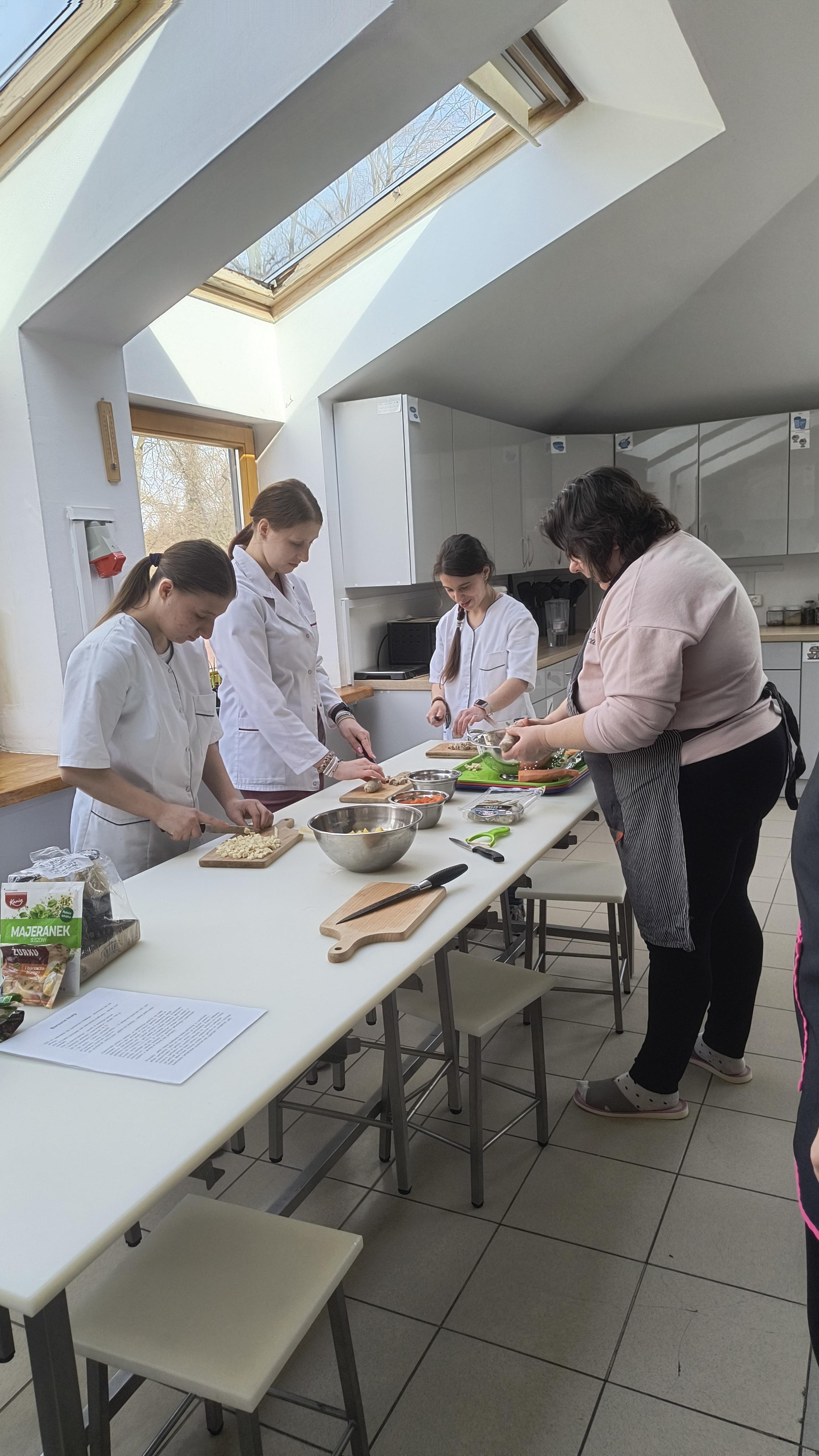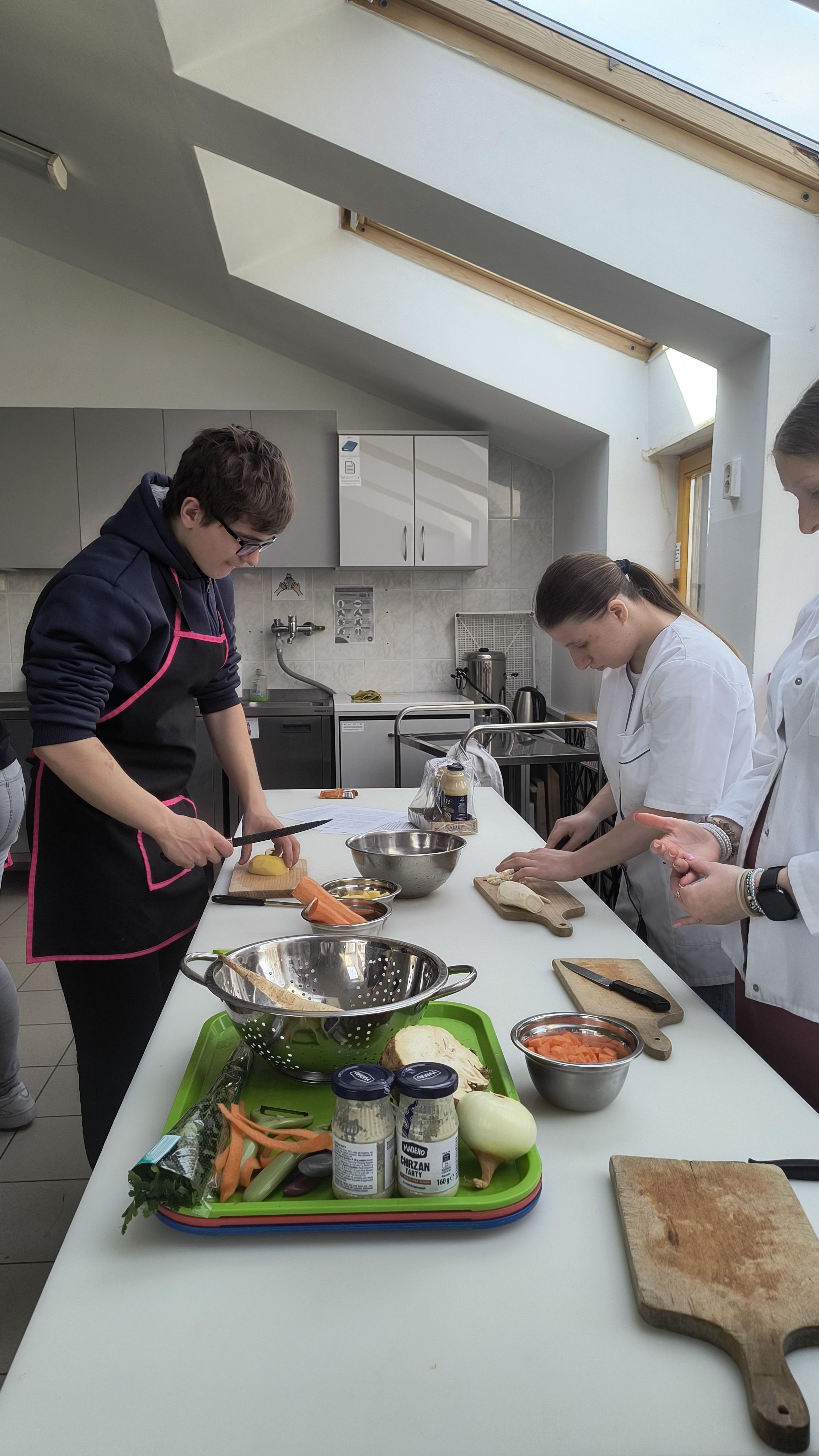 Za nami ostatnie działanie w ramach projektu uczniowskiego „Od kuchni do sukcesu”. Uczniowie klas 1C-3C oraz 3A Szkoły Przysposabiającej do Pracy wzięli udział w warsztatach kulinarnych. Tym razem młodzież zmierzyła się z tradycyjnymi potrawami wielkanocnymi. Pod czujnym okiem profesjonalnego kucharza uczniowie wspólnie przygotowali: aromatyczny, domowy żurek, pieczoną białą kiełbasę z cebulką oraz pyszną, puszystą babkę cytrynową.
