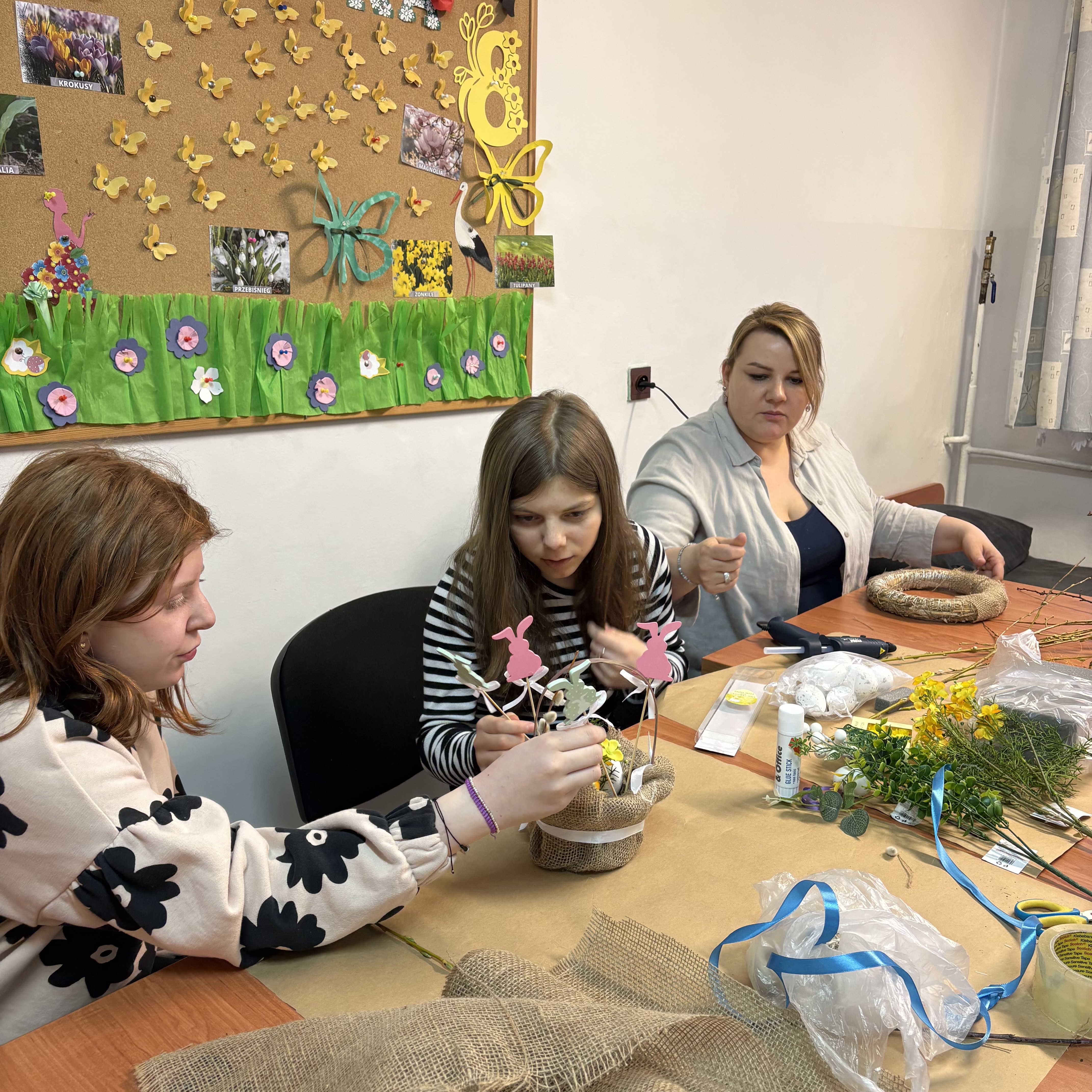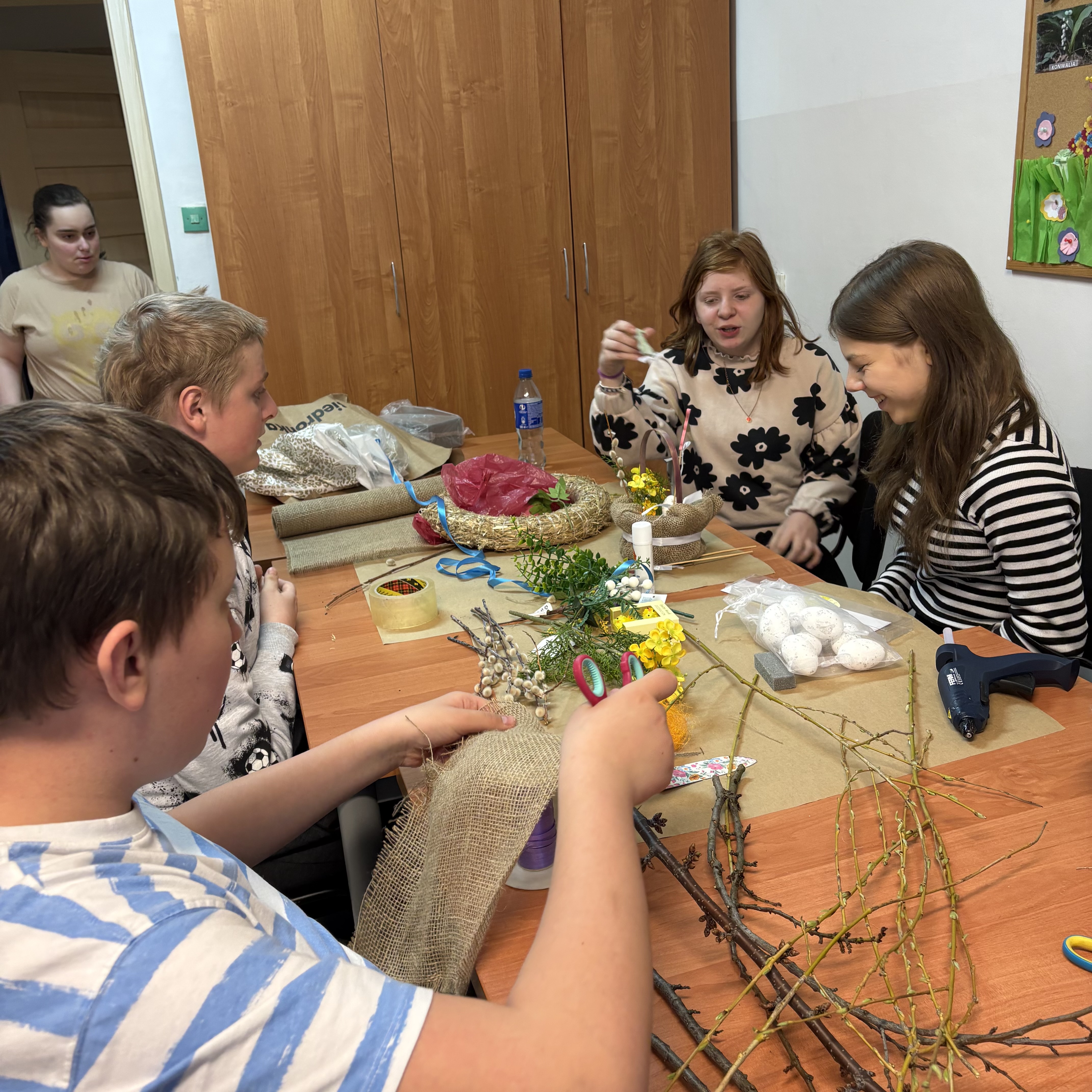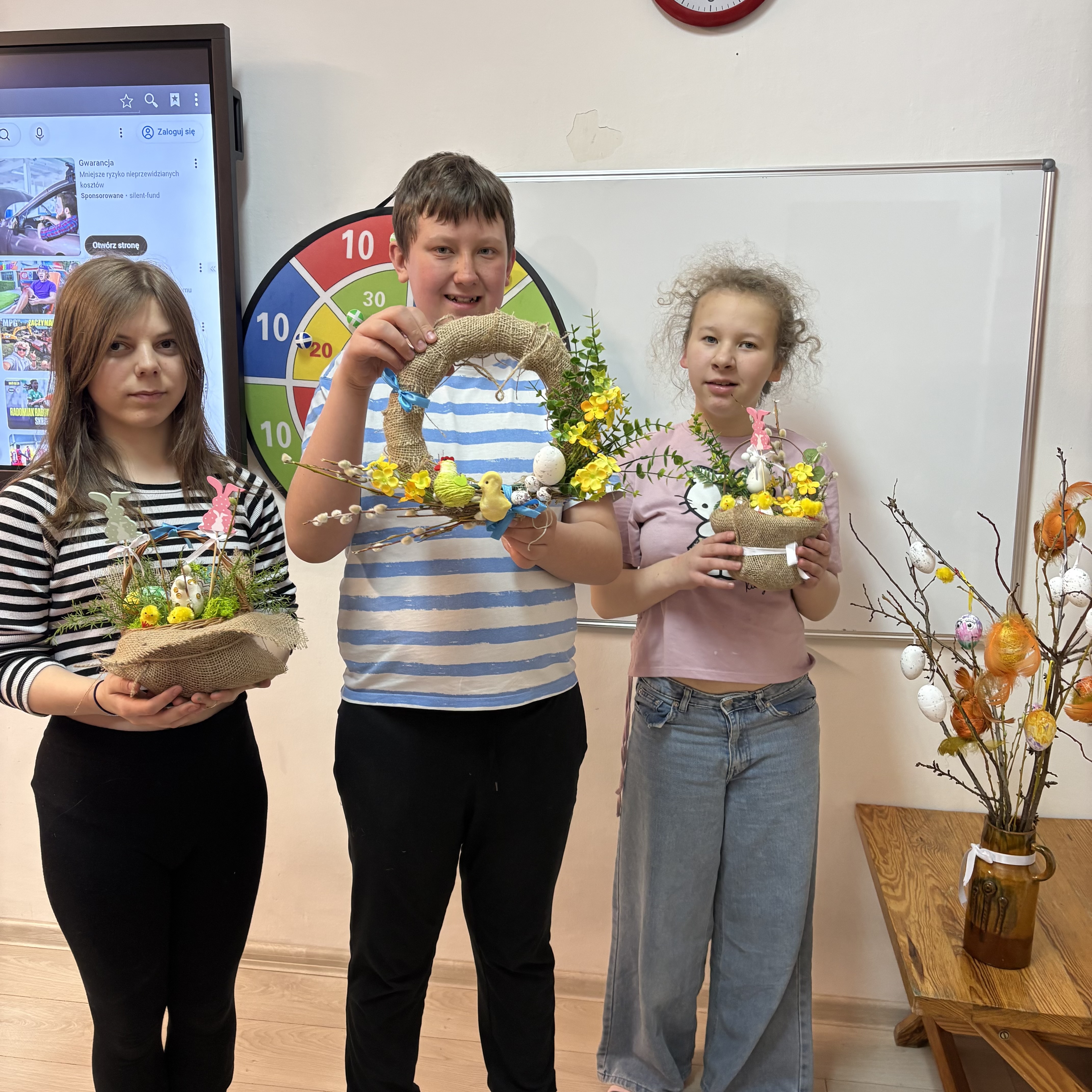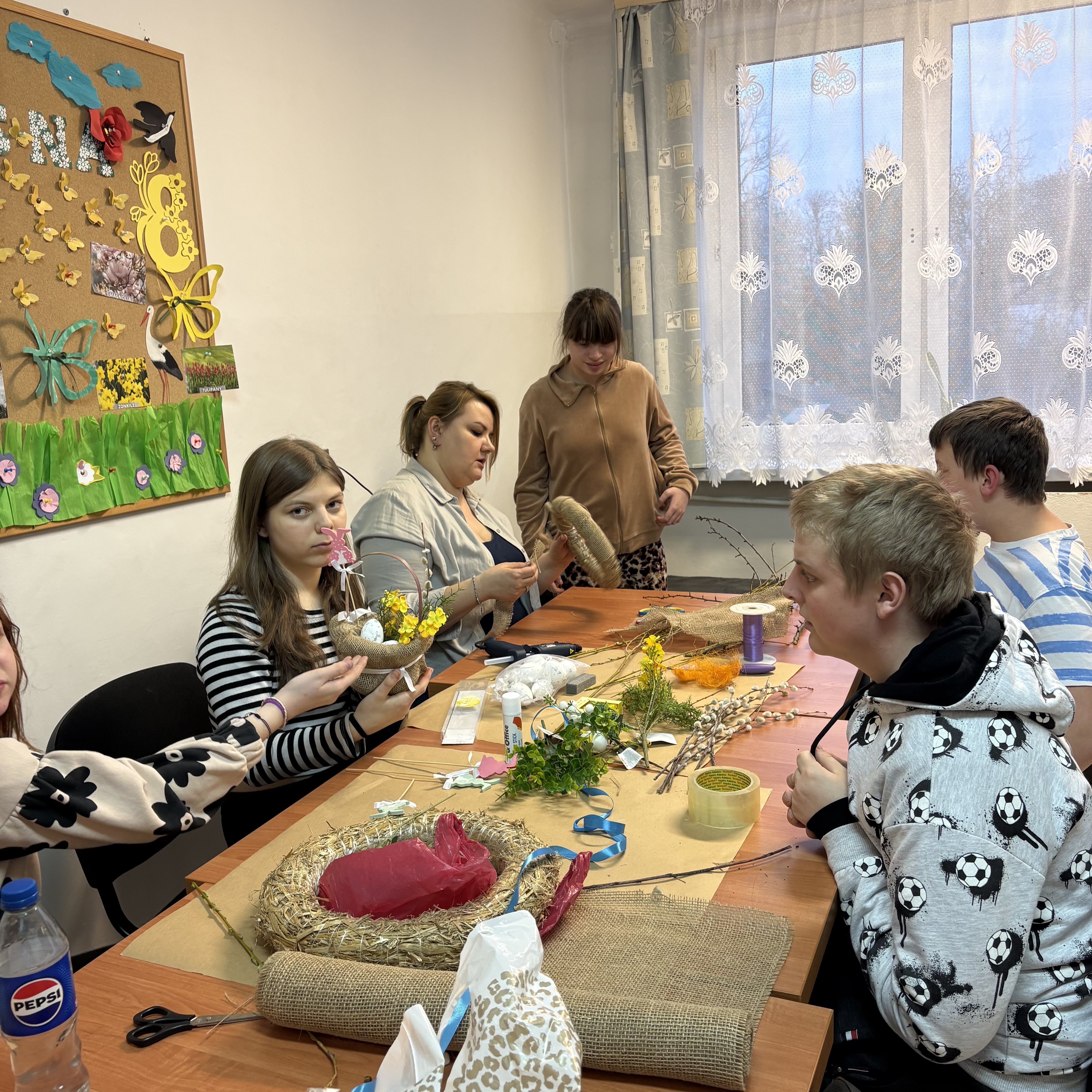 Warsztaty zgromadziły grupę kreatywnych wychowanków, którzy zamienili świetlicę internatu w pracownię artystyczną. Celem spotkania było samodzielne wykonanie ozdób, które udekorują nasze pokoje oraz stoły wielkanocne.