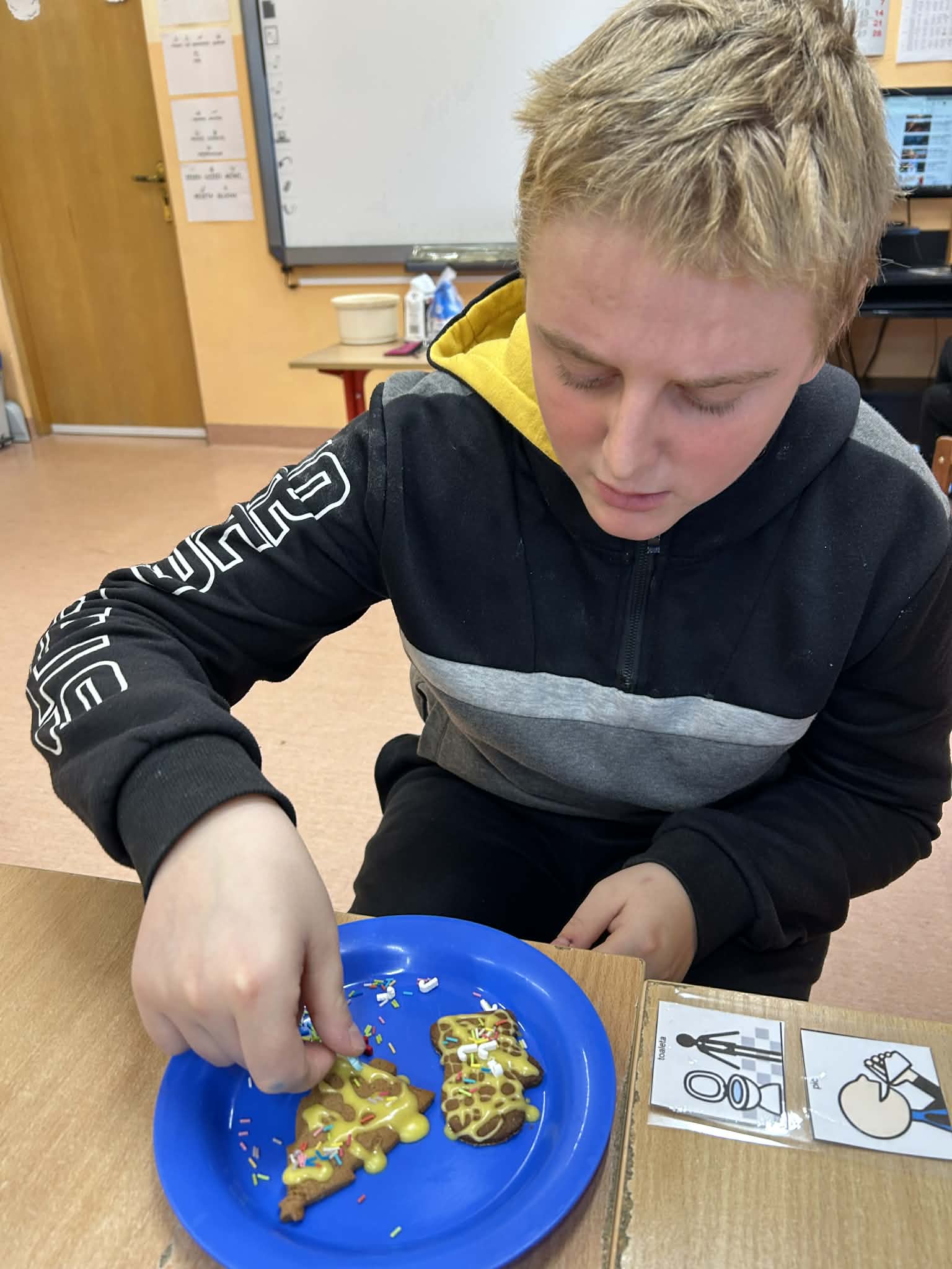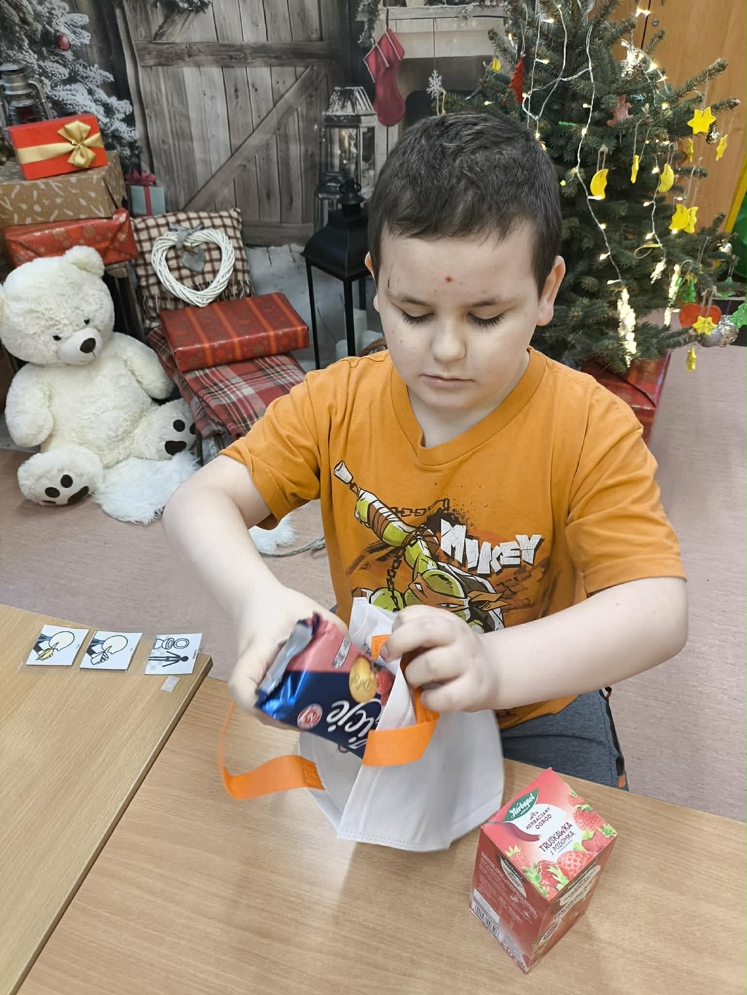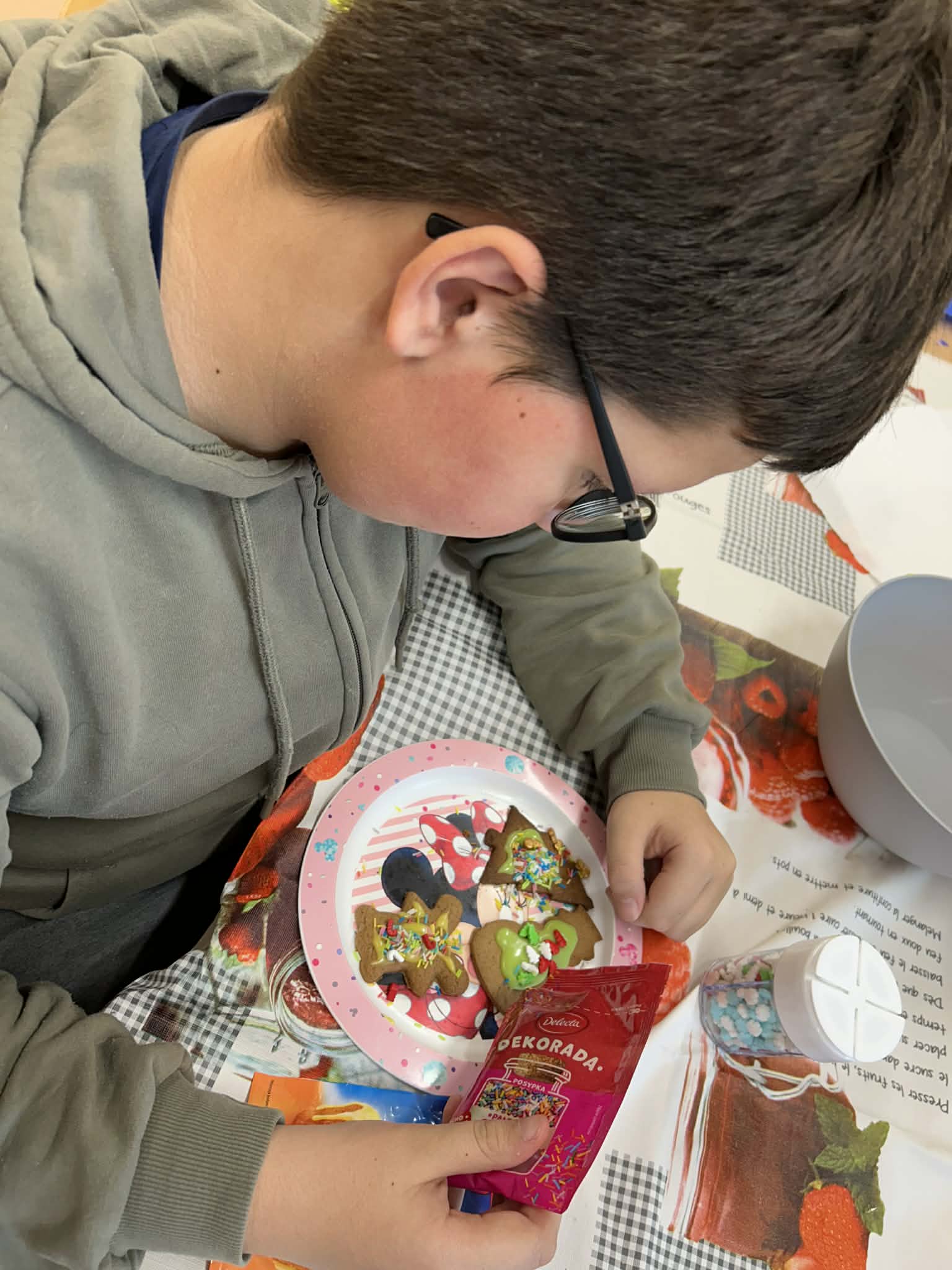Z ogromnym zaangażowaniem piekli pierniki, dekorowali je oraz przygotowywali kolorowe paczuszki, które zostały przekazane jako dary dla osób starszych. Każdy upominek był symbolem życzliwości, empatii i otwartości na potrzeby drugiego człowieka.